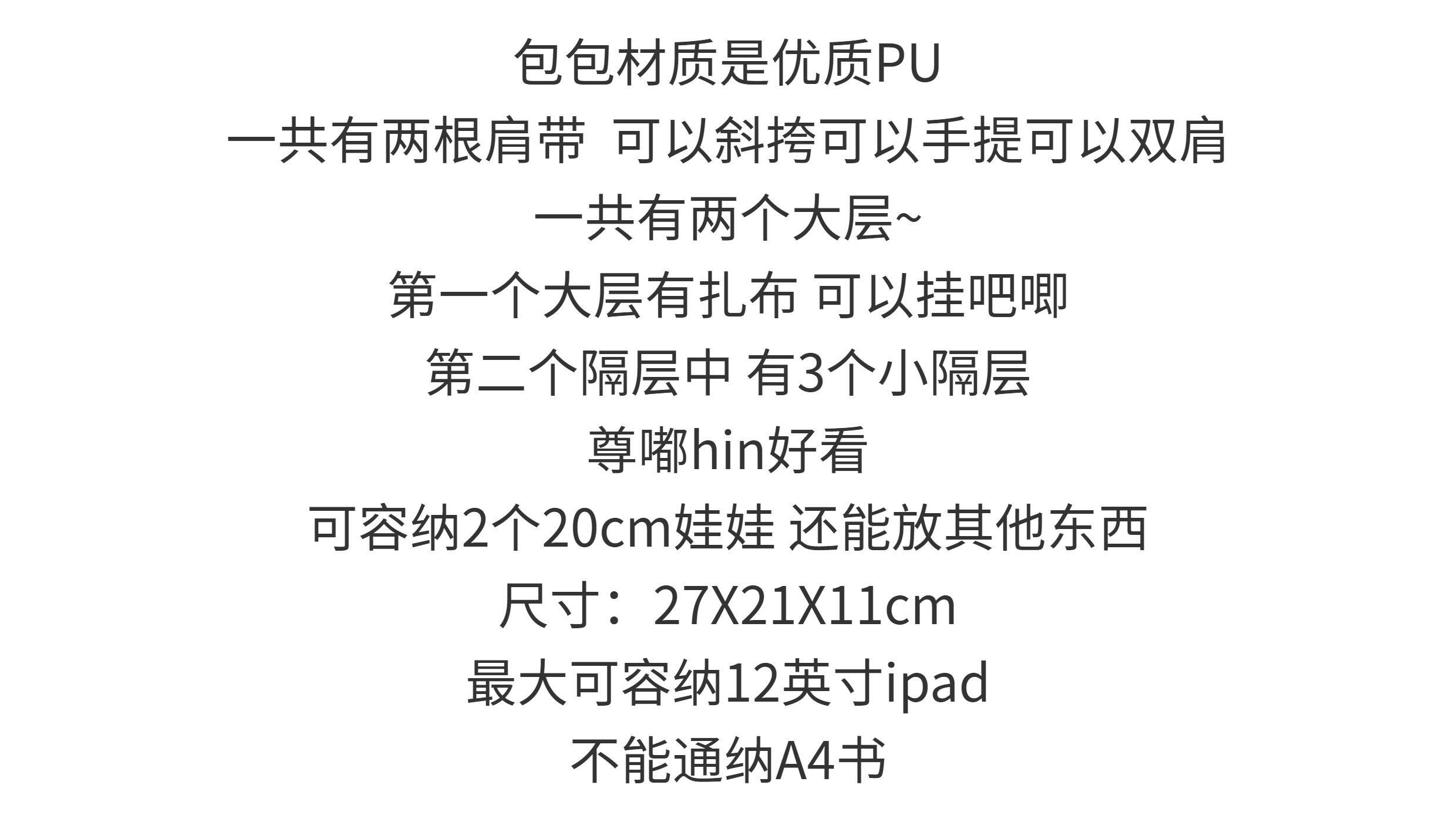 日系百搭3ways兩用20cm娃包少女JK雙肩單肩斜背PU大容量透明痛包