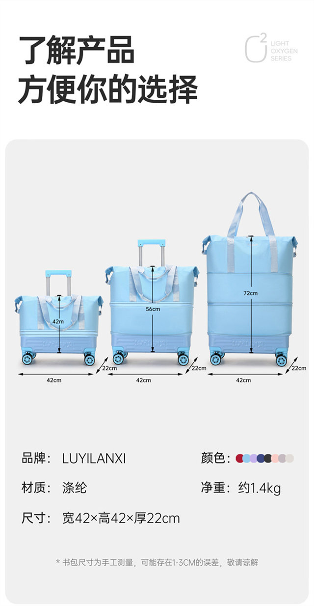 新款帶拉桿萬向輪旅行包耐用學生旅行袋可擴容收納包大容量行李包
