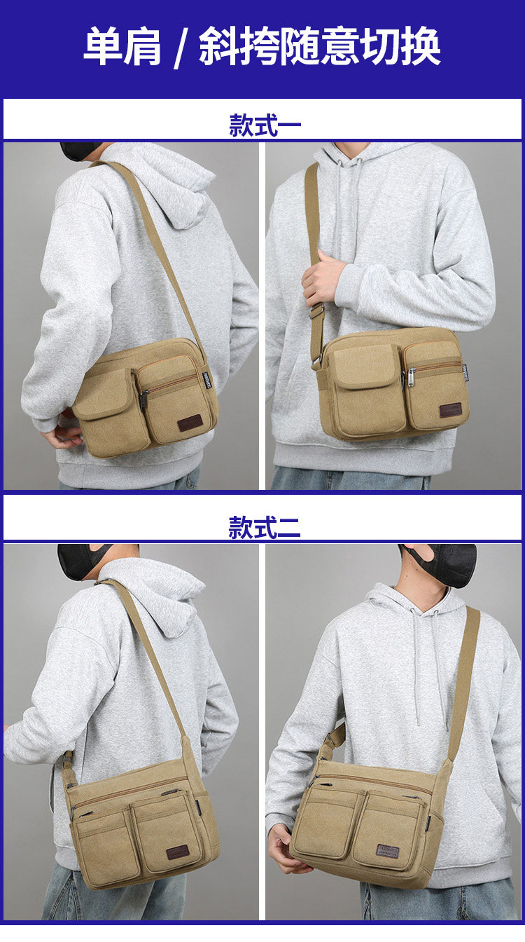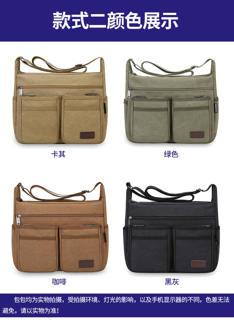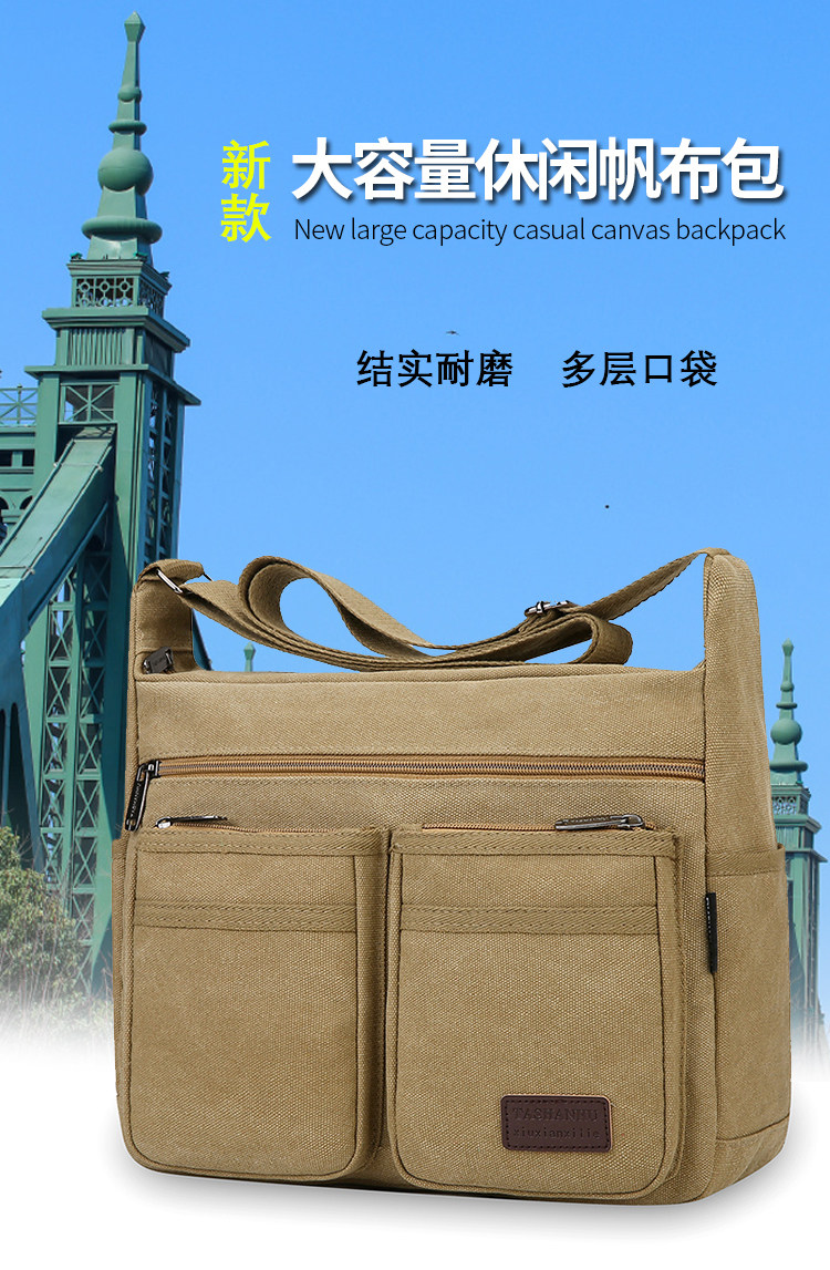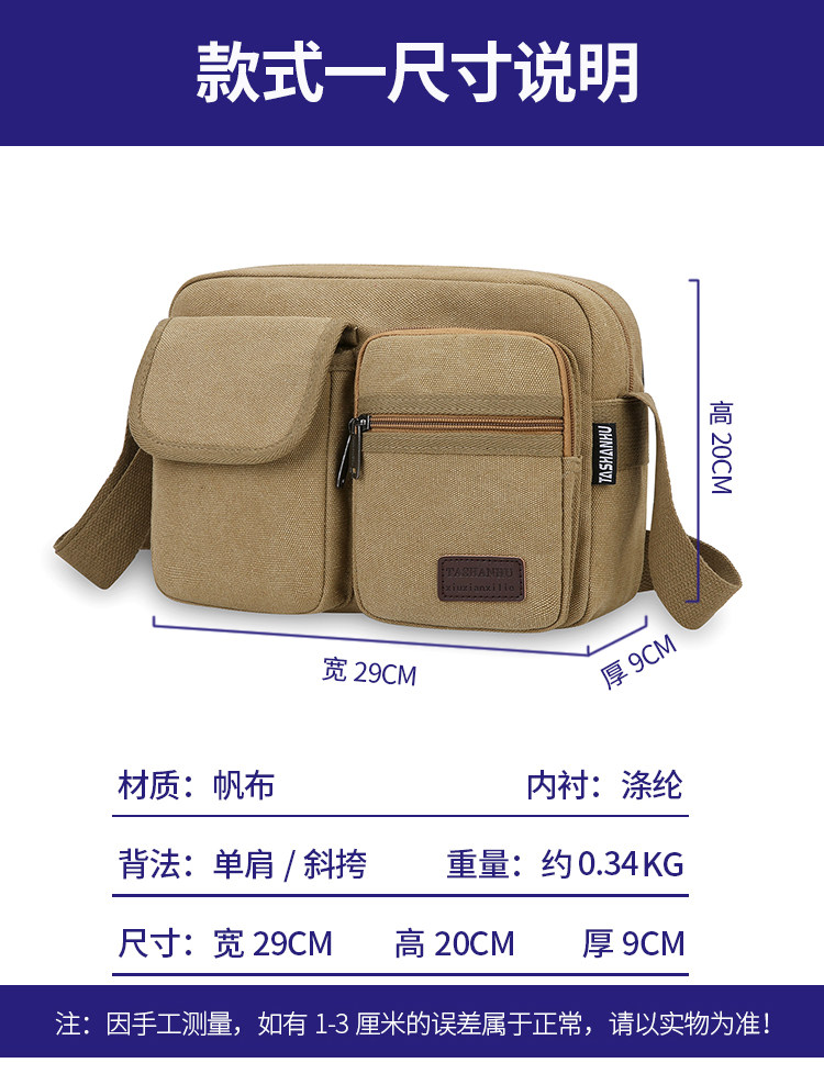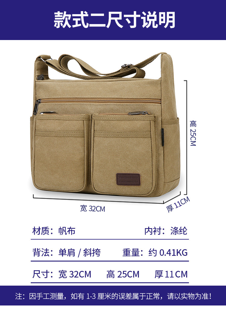 新款多層帆布包男包單肩包斜後後背包大容量後後背包旅遊休閒包耐磨工具包