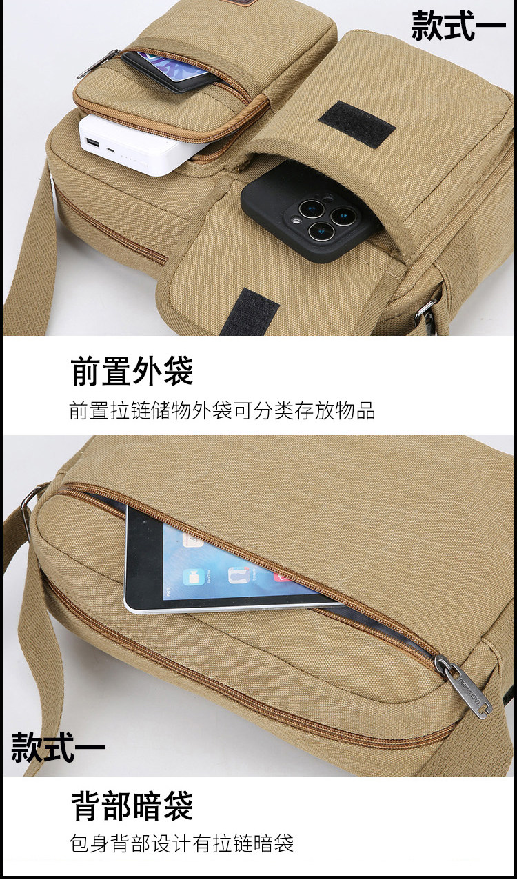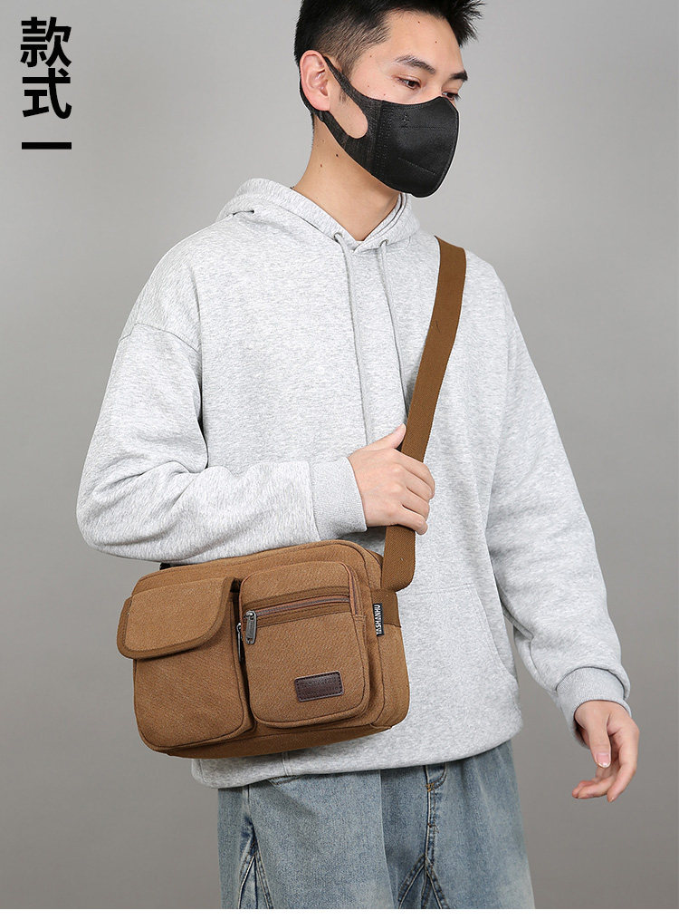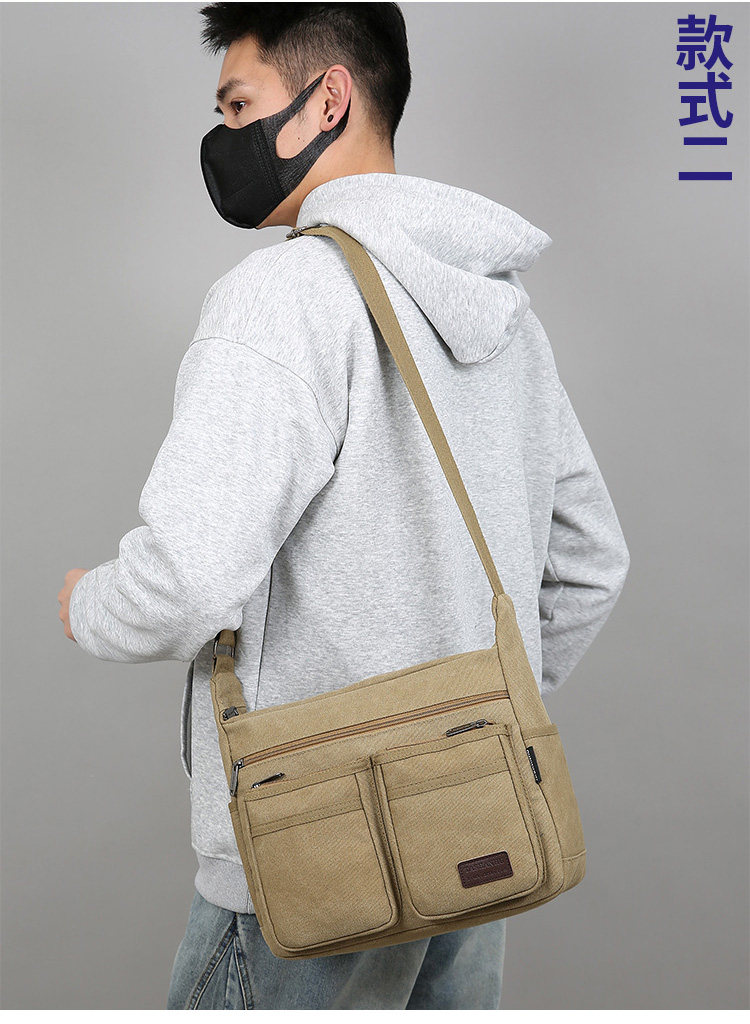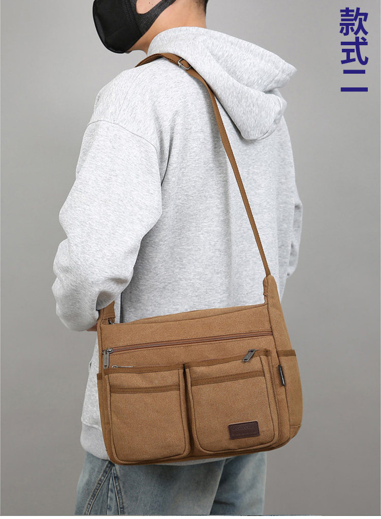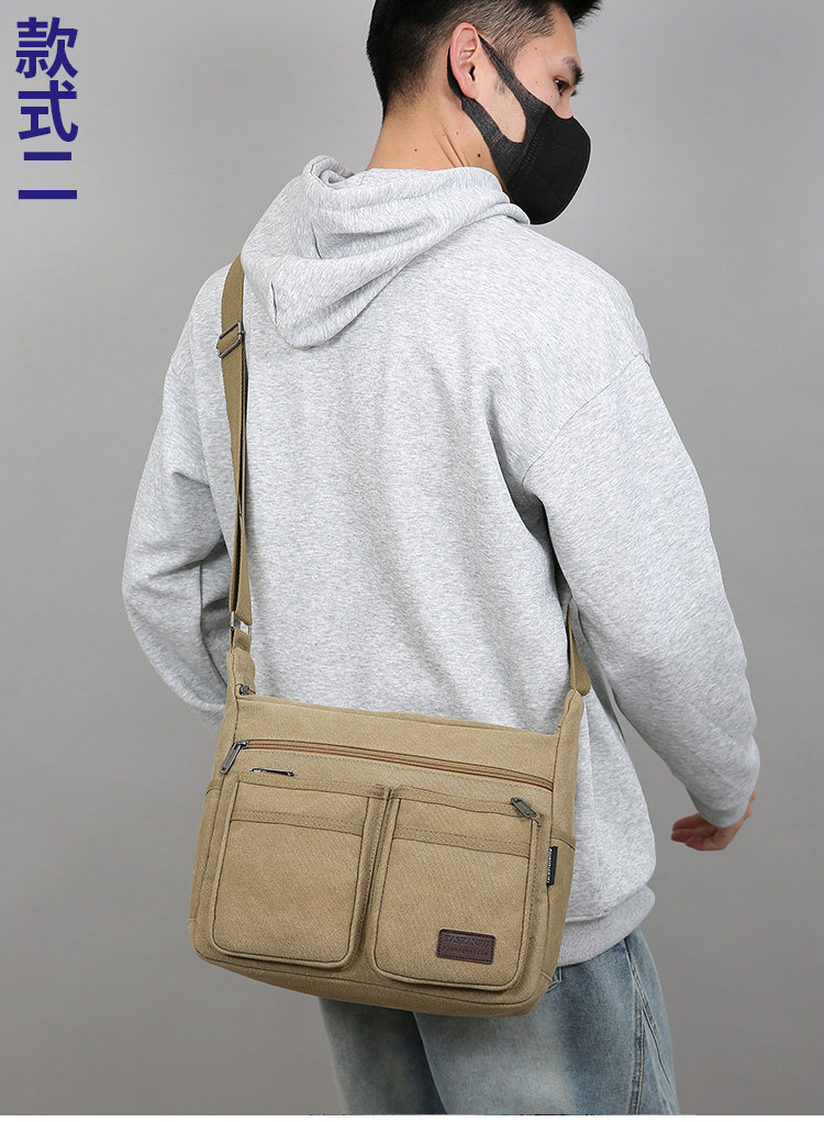 新款多層帆布包男包單肩包斜後後背包大容量後後背包旅遊休閒包耐磨工具包