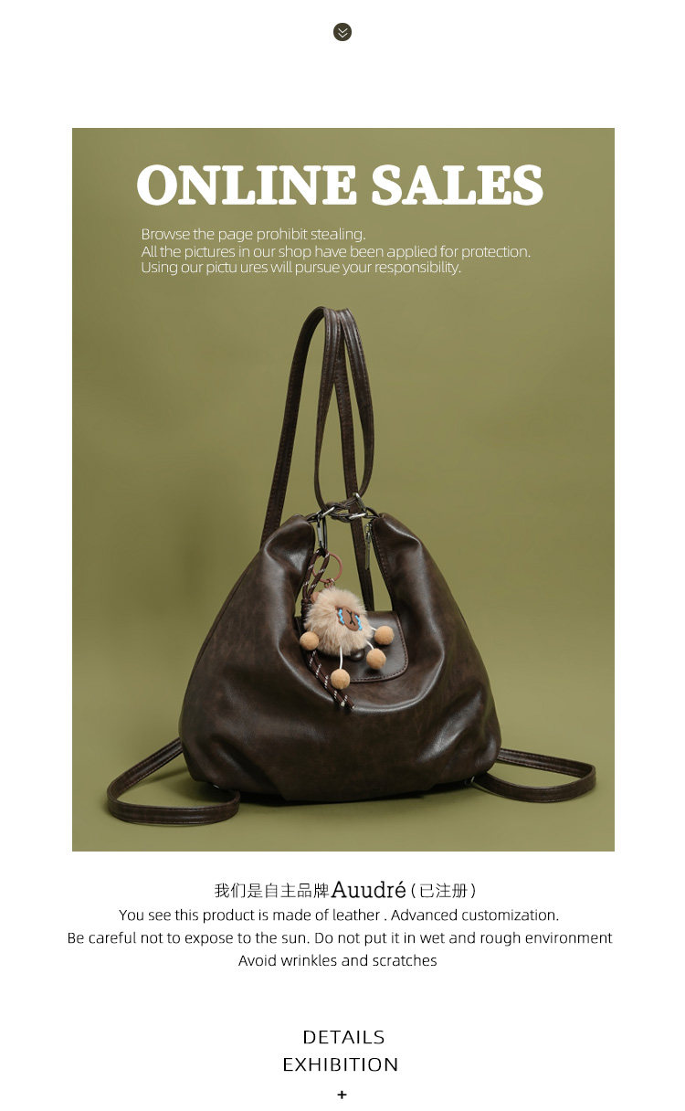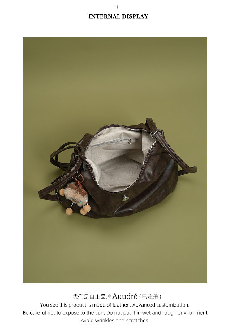 Auudre復古軟面大容量雙肩後後背包包女式2026新款春夏通勤單肩斜後後背包