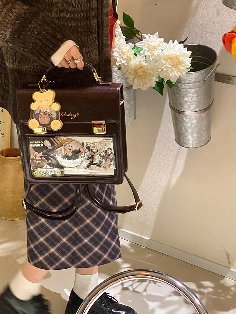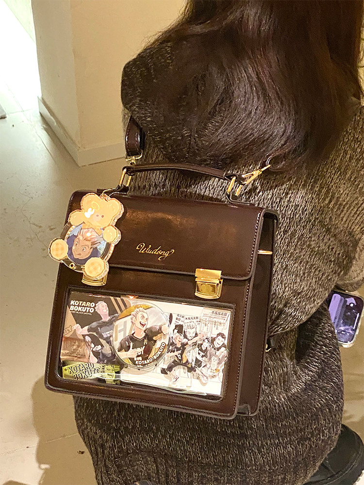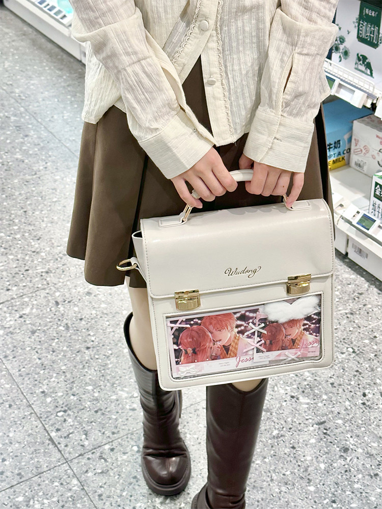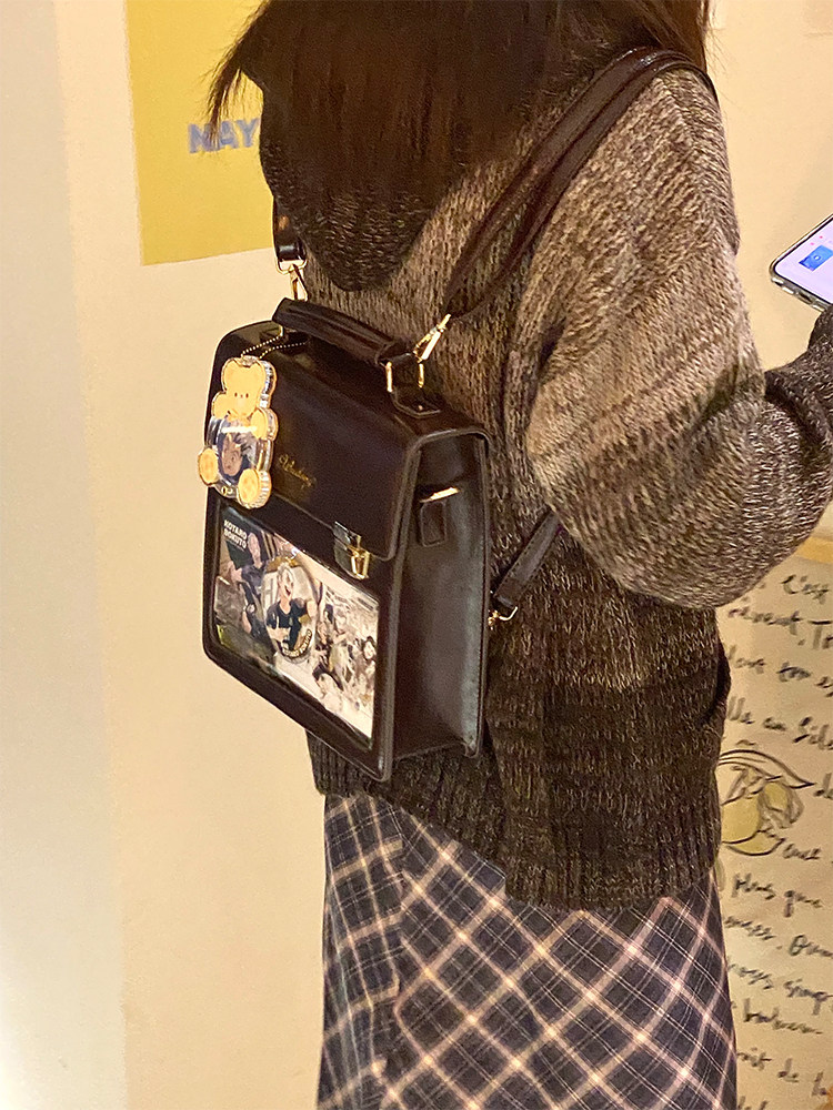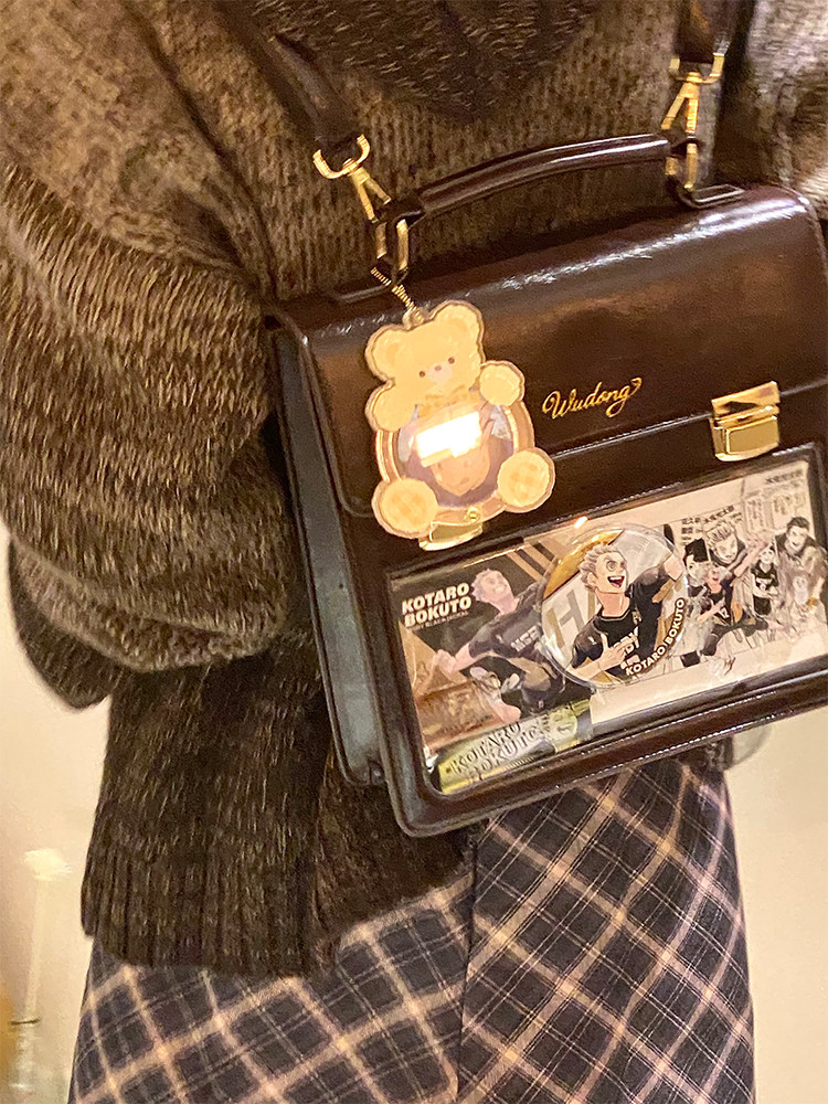 嗚咚小鋪原創日常百搭透明單肩斜背痛包吧唧包包女【 焦糖方巧】