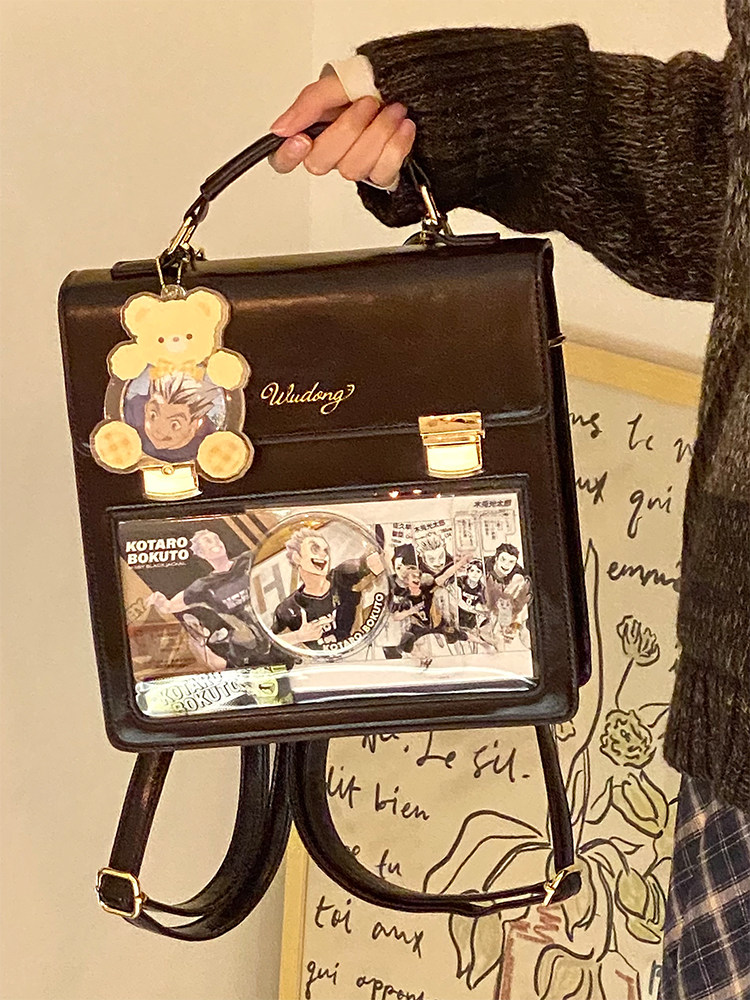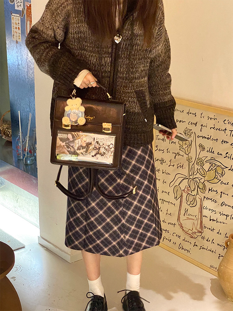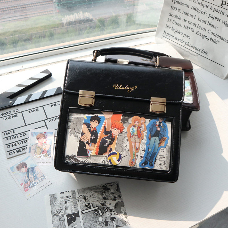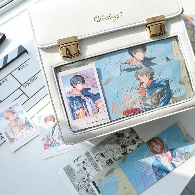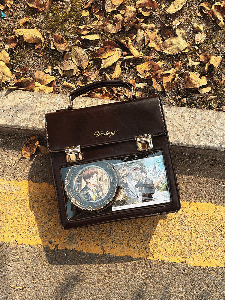 嗚咚小鋪原創日常百搭透明單肩斜背痛包吧唧包包女【 焦糖方巧】