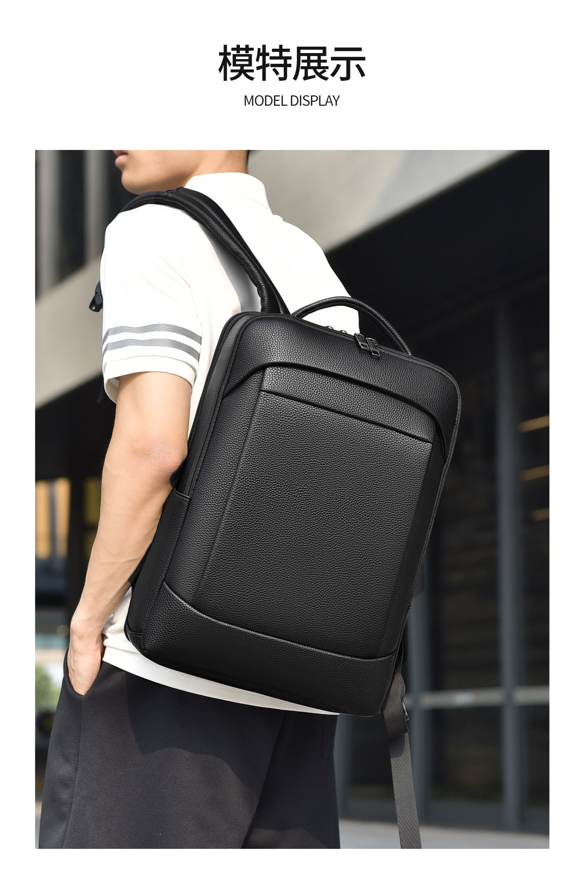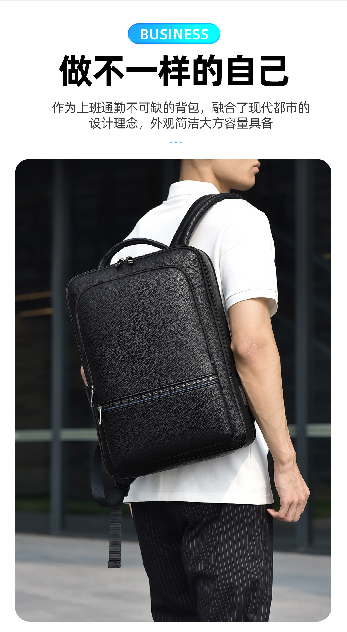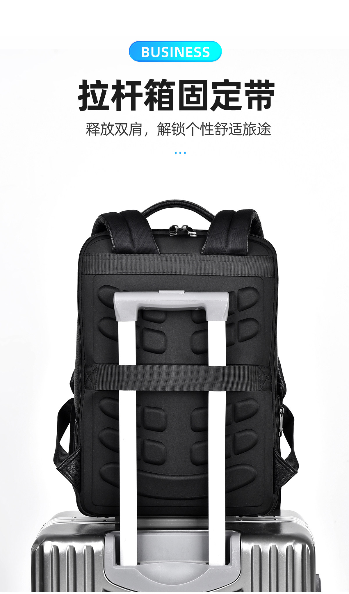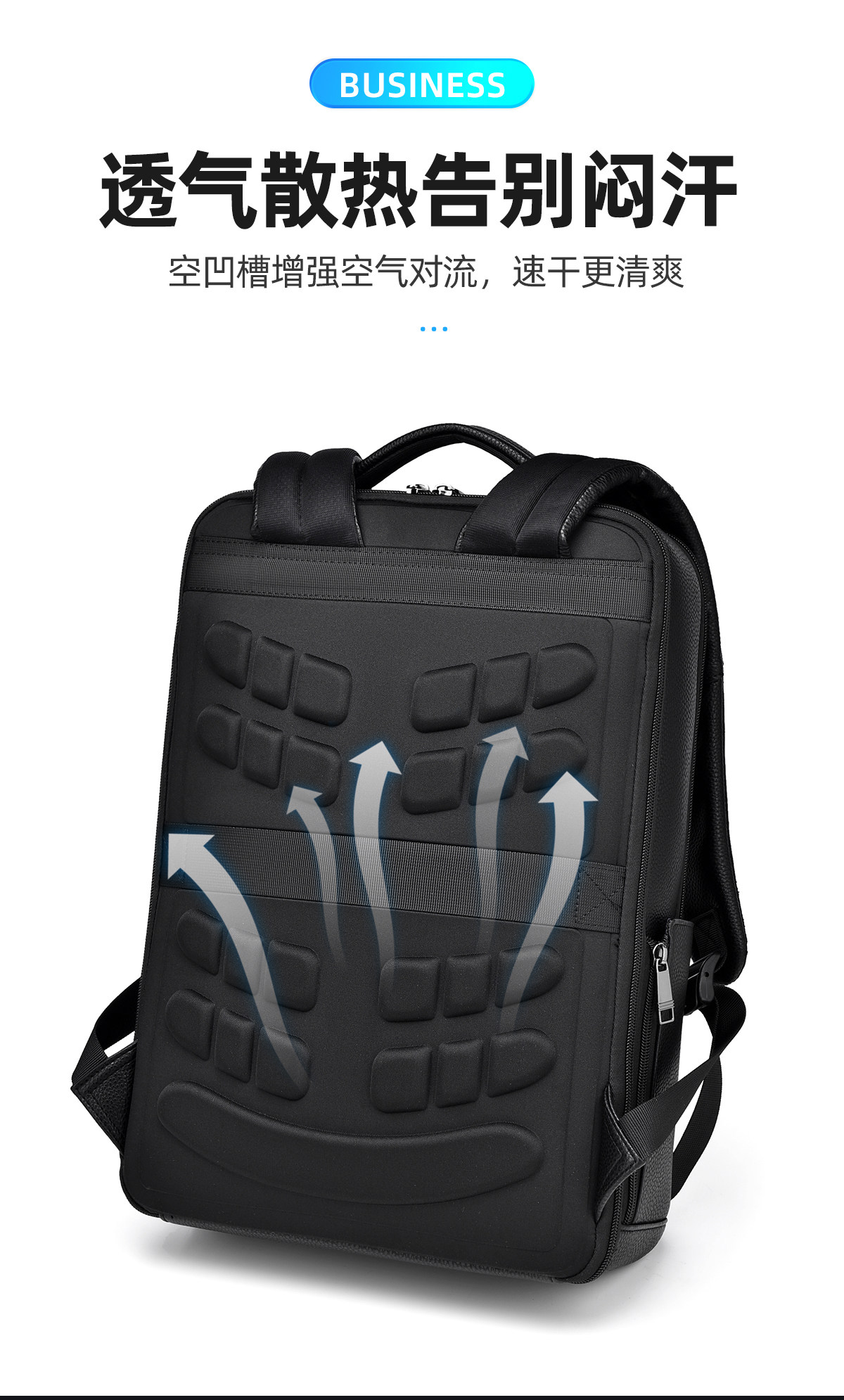 與鯊共舞大容量出差旅行男士後後背包真皮質感立體定型商務電腦雙肩包