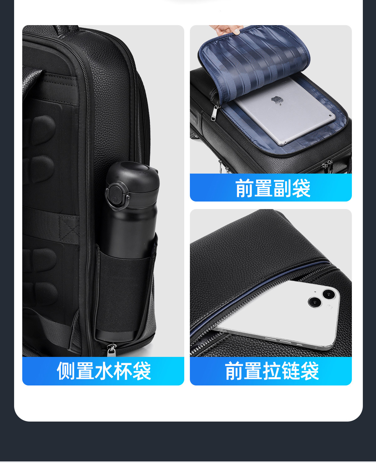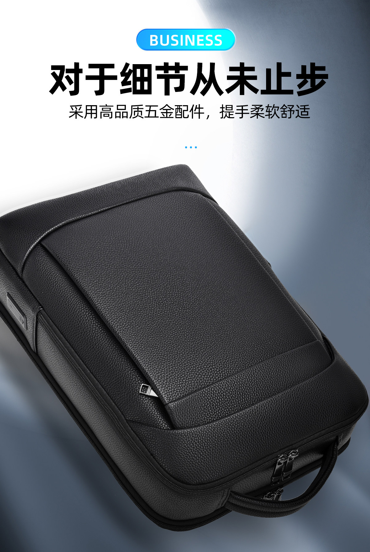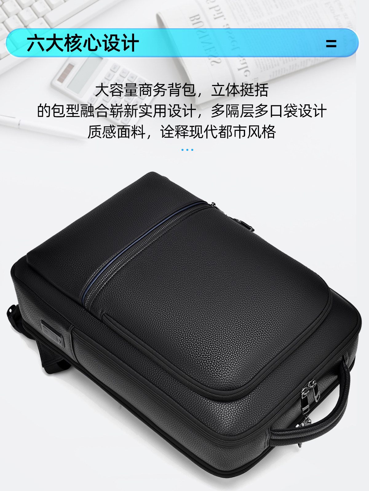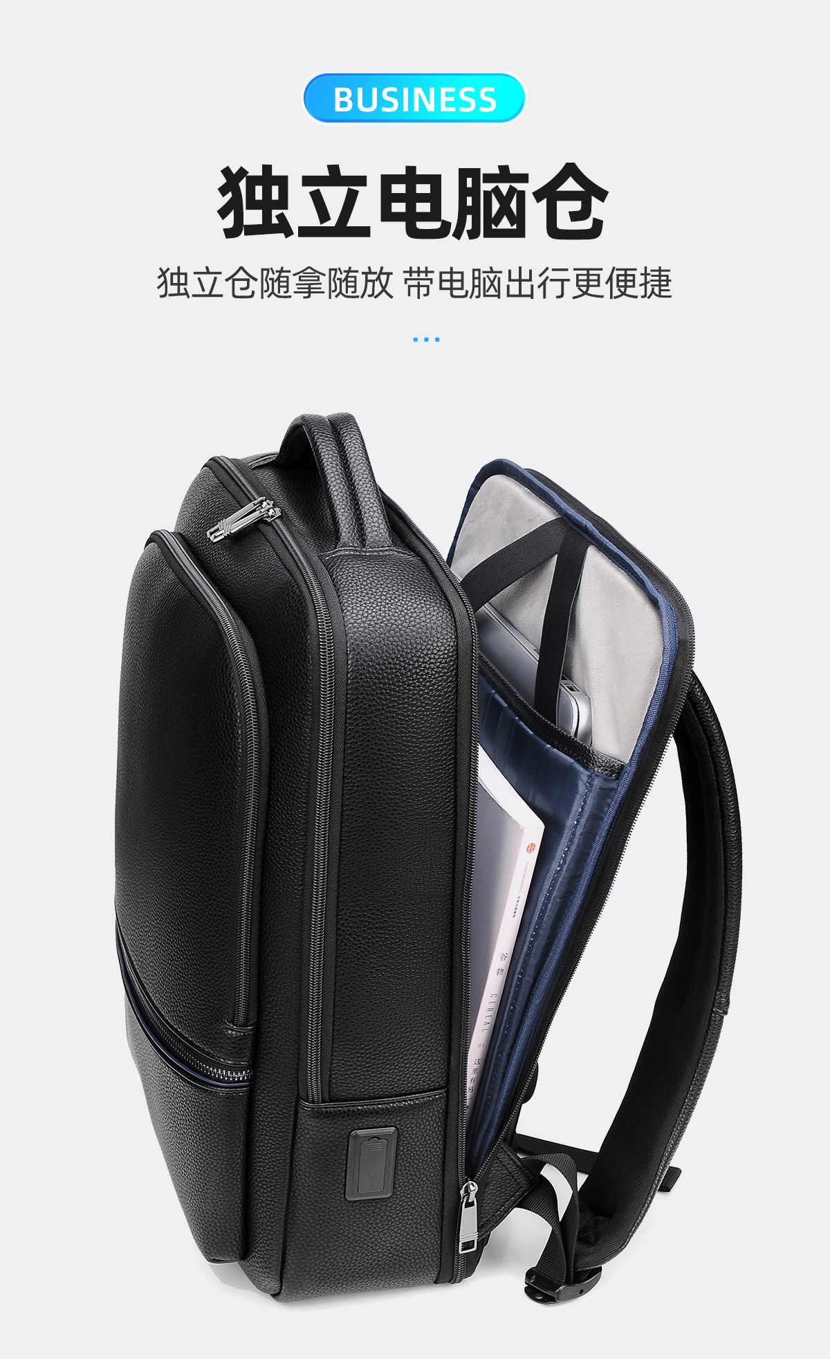 與鯊共舞大容量出差旅行男士後後背包真皮質感立體定型商務電腦雙肩包