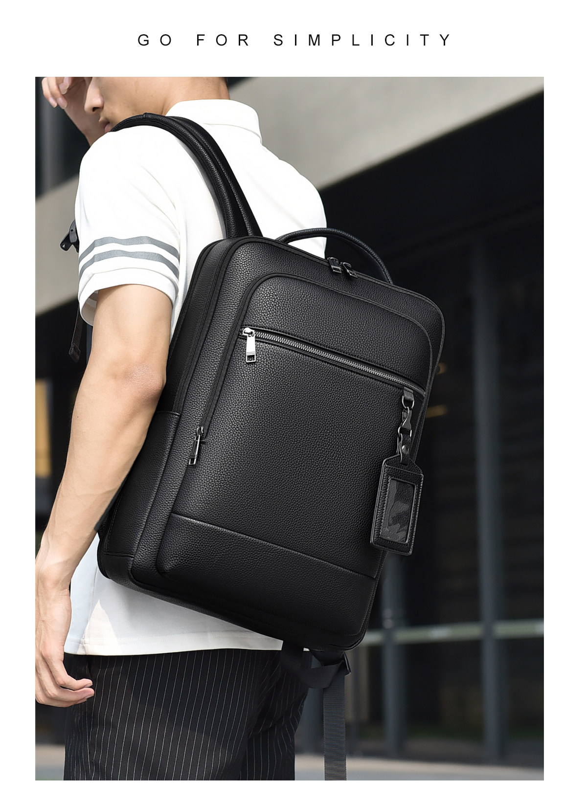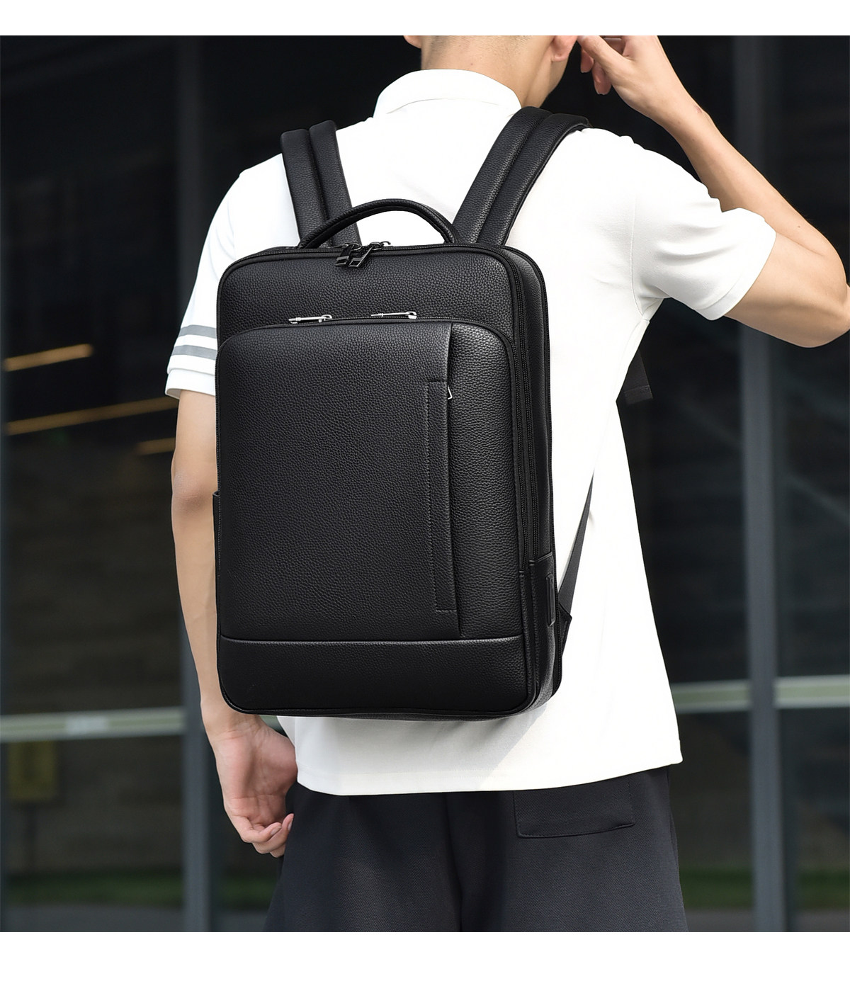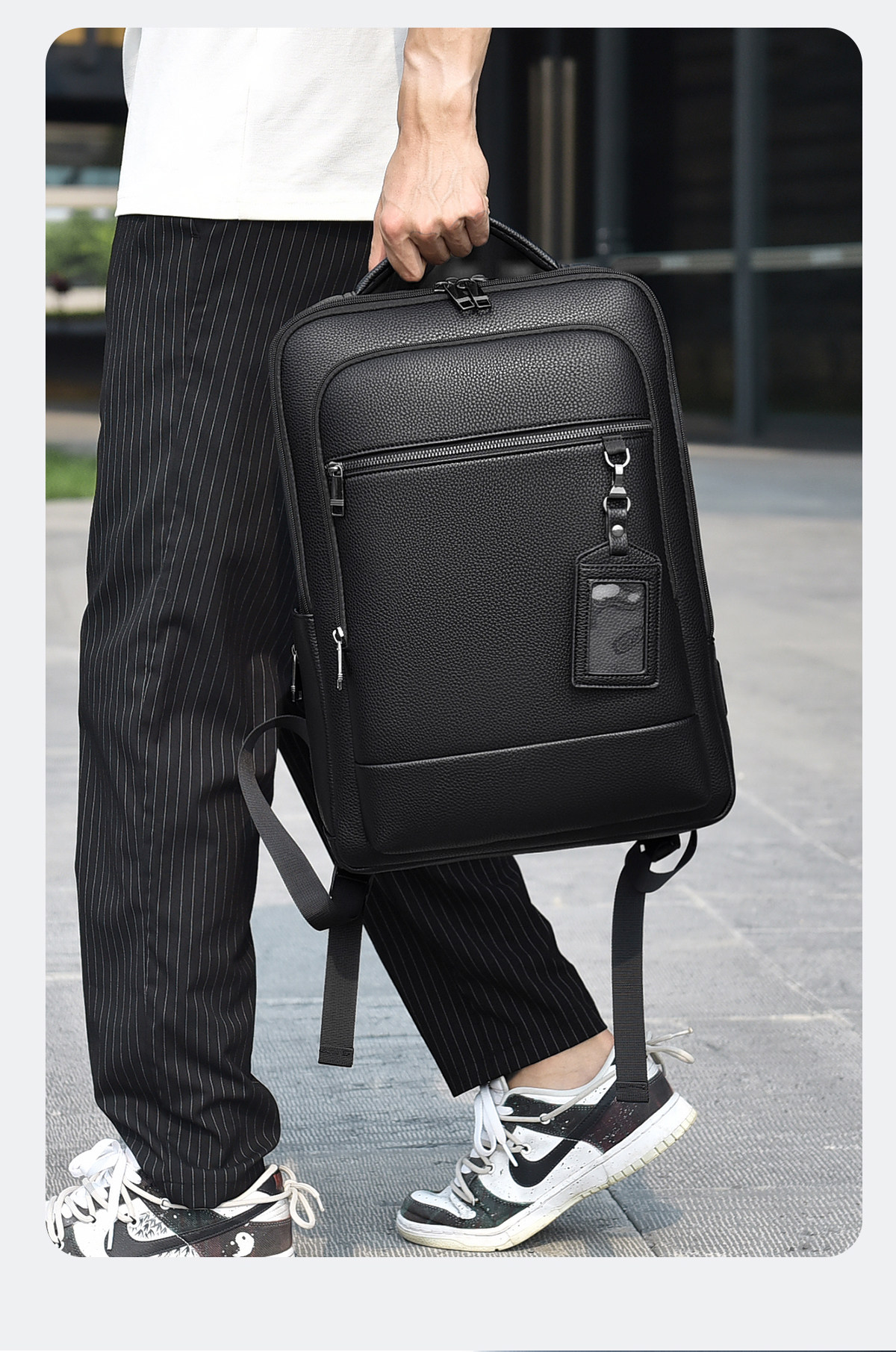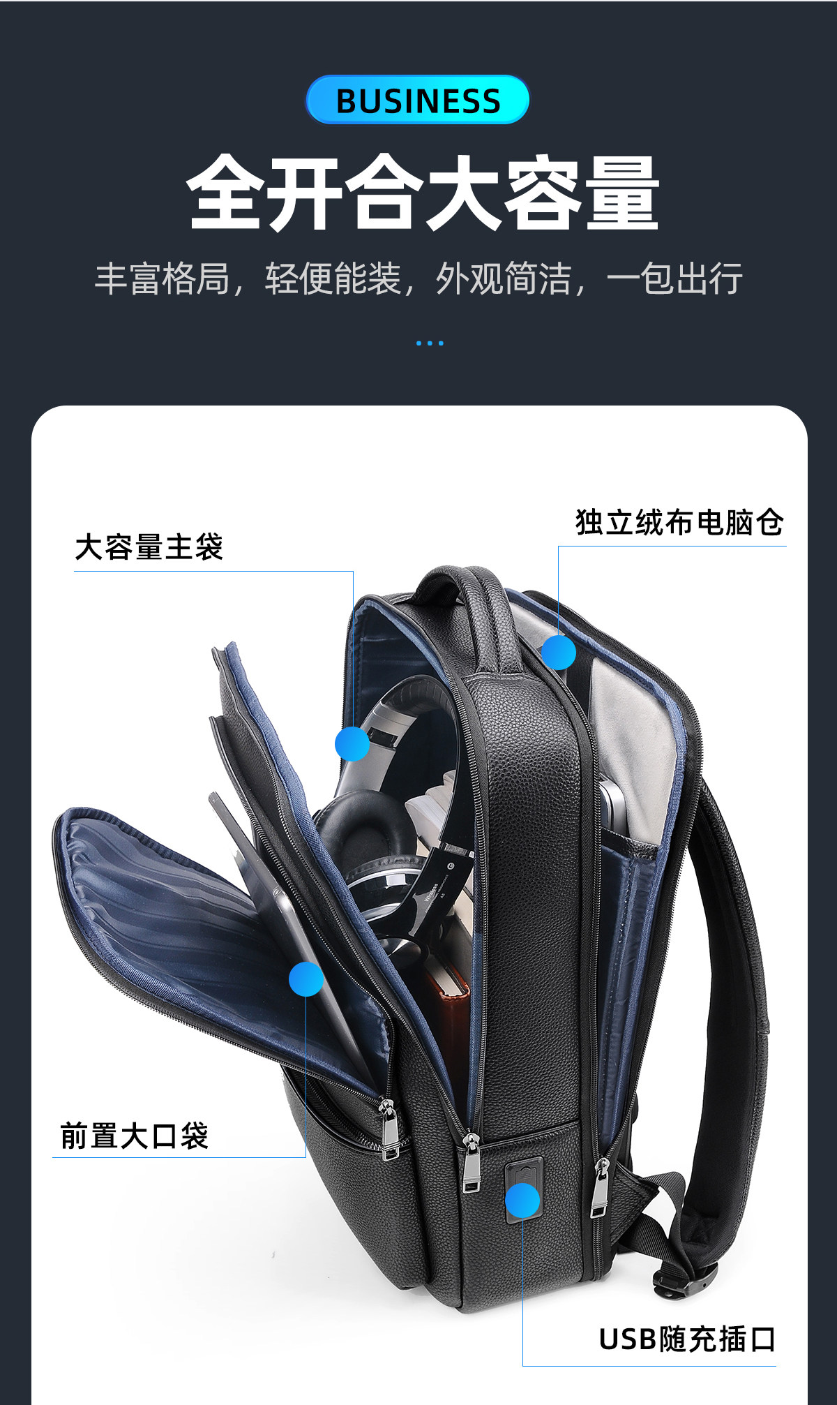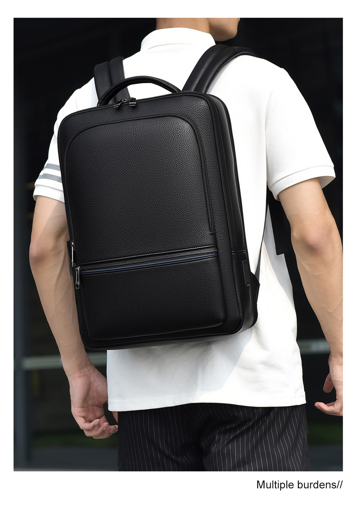 與鯊共舞大容量出差旅行男士後後背包真皮質感立體定型商務電腦雙肩包