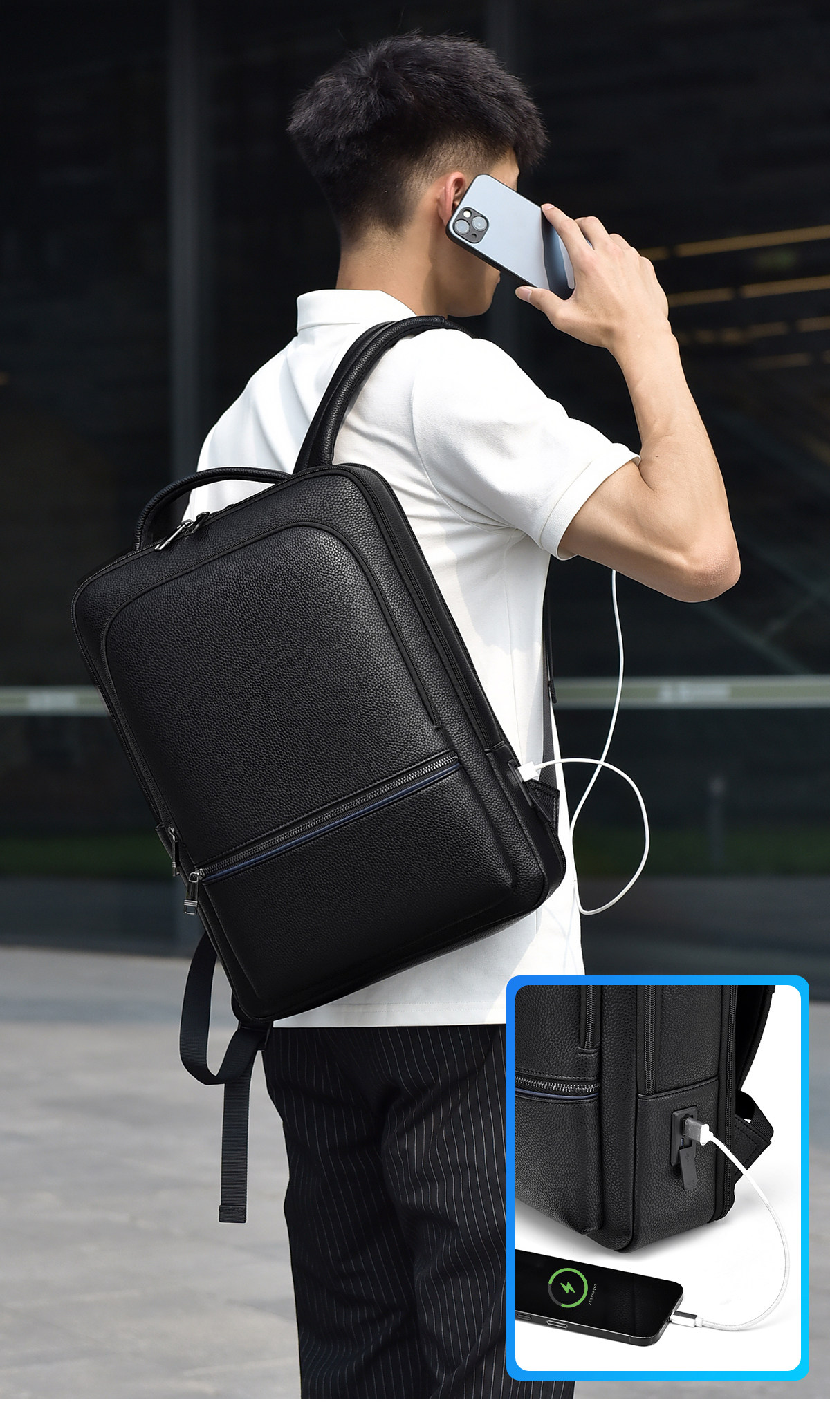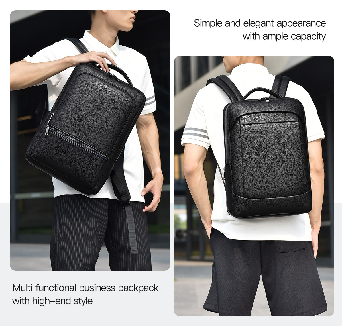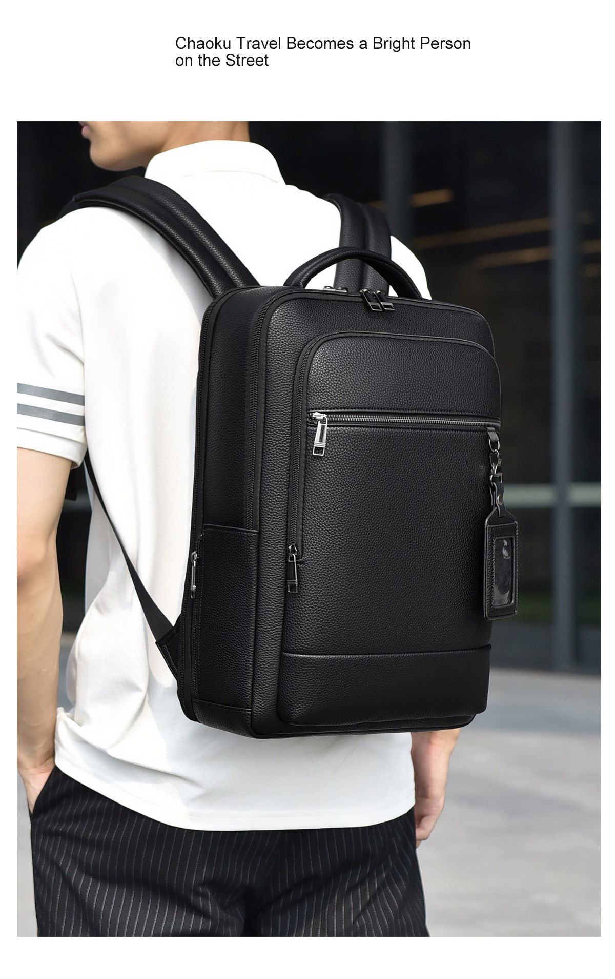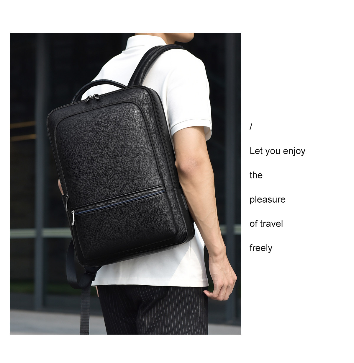 與鯊共舞大容量出差旅行男士後後背包真皮質感立體定型商務電腦雙肩包