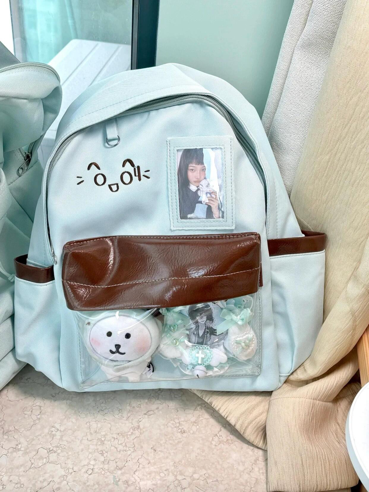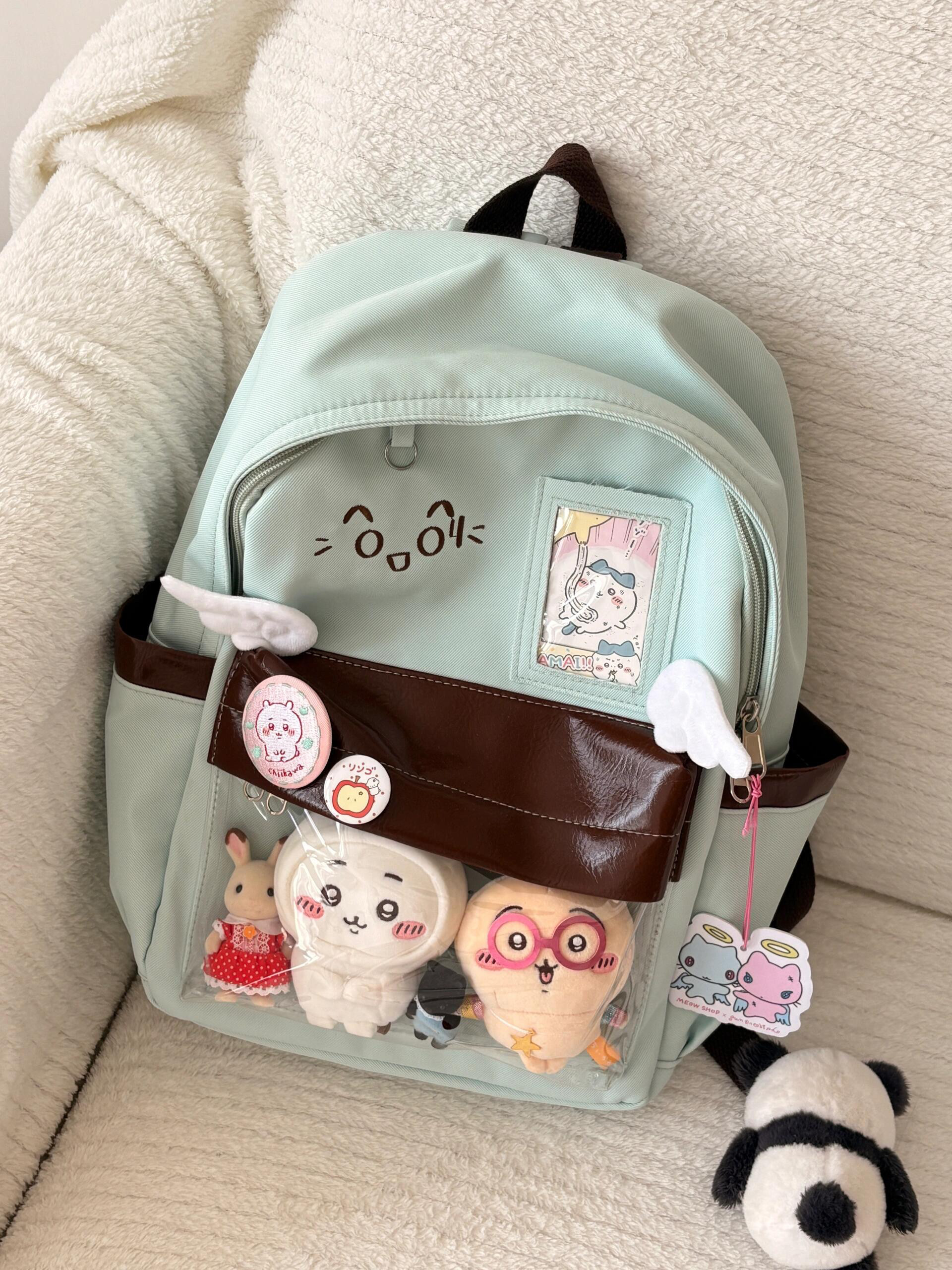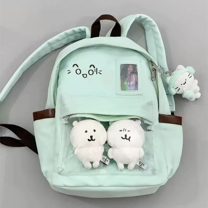 新款百搭透明大容量通勤雙肩包娃包書包大學生痛包吧唧學生後後背包