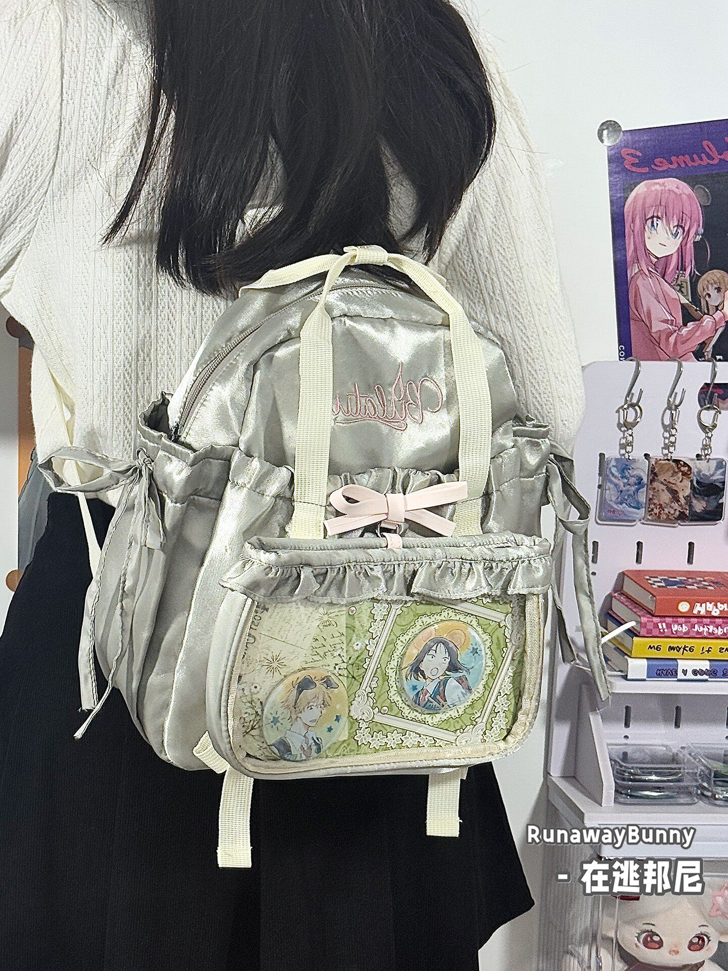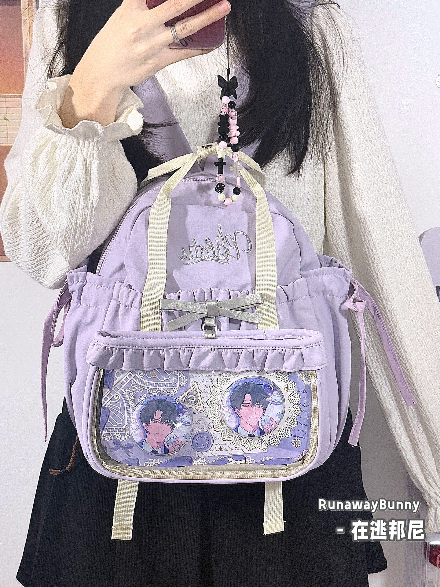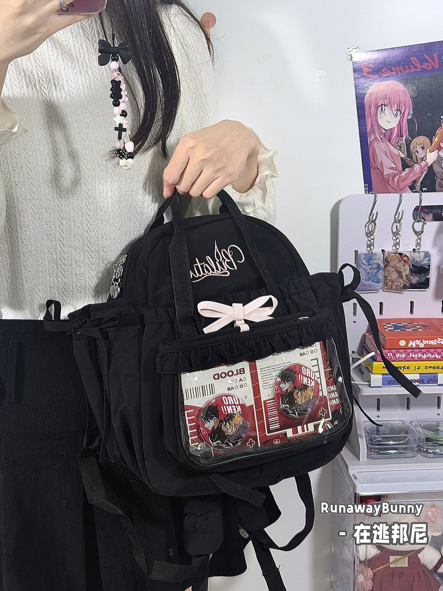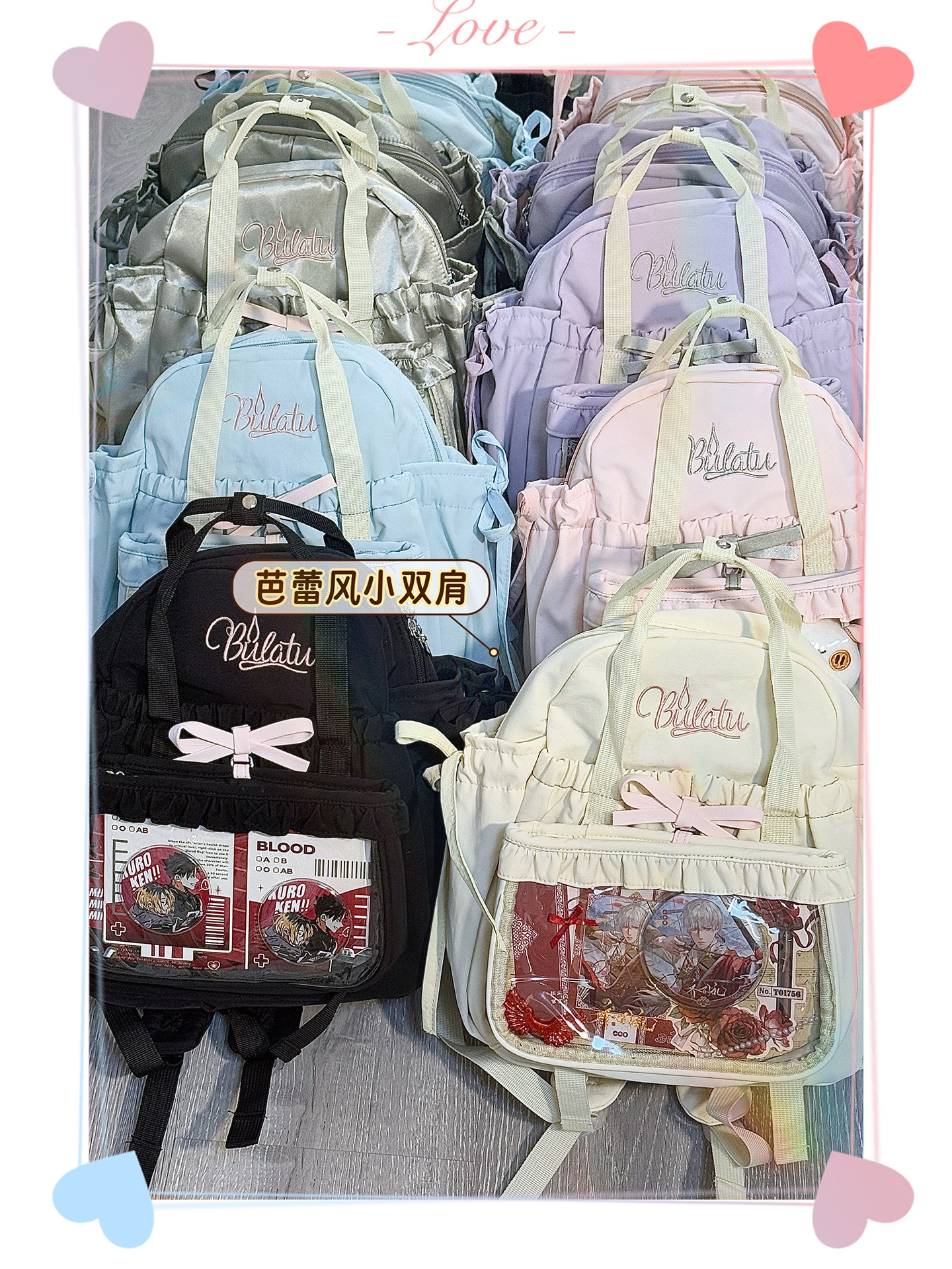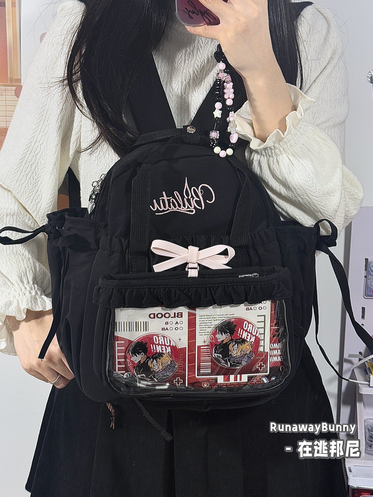日系二次元雙肩痛包女蝴蝶結可拆卸小後後背包甜美可愛學生書包小食量