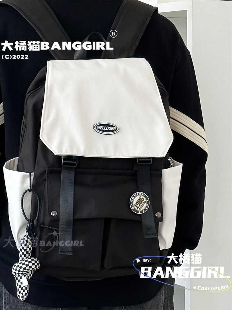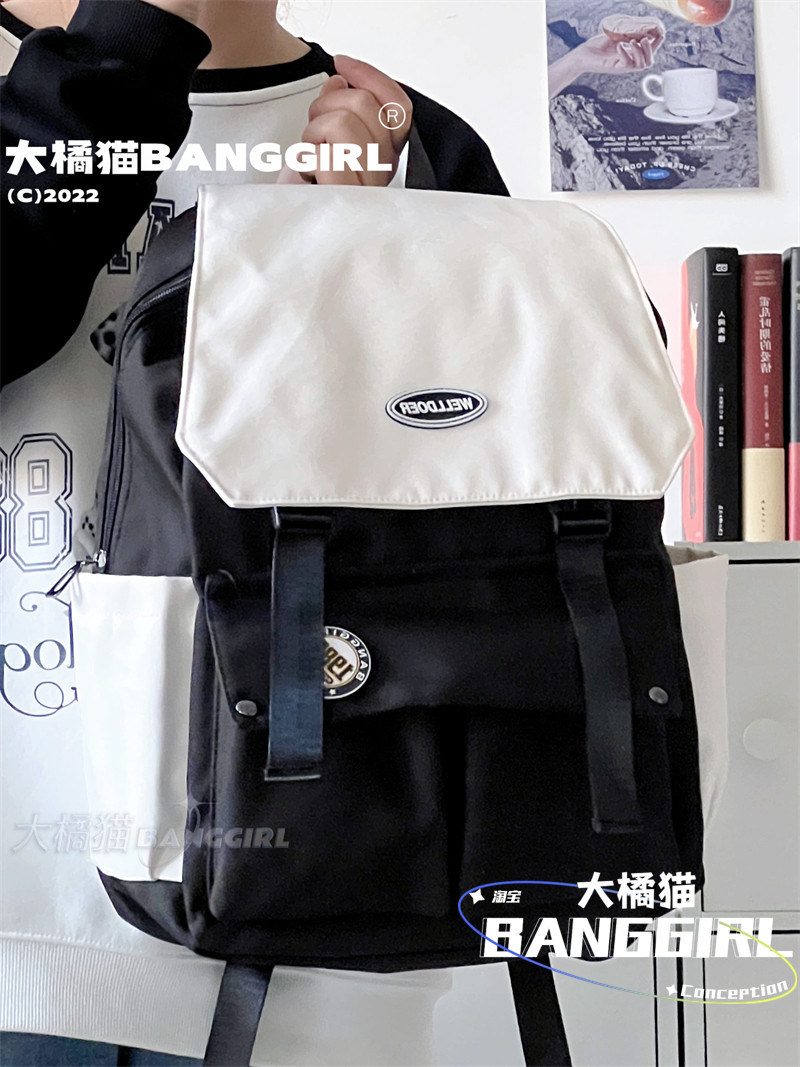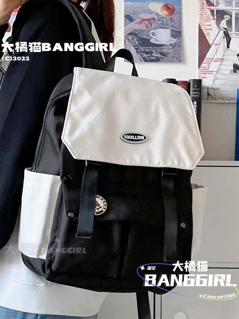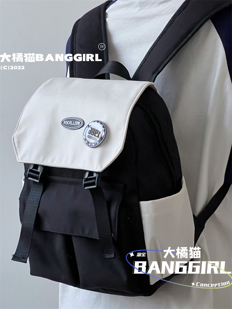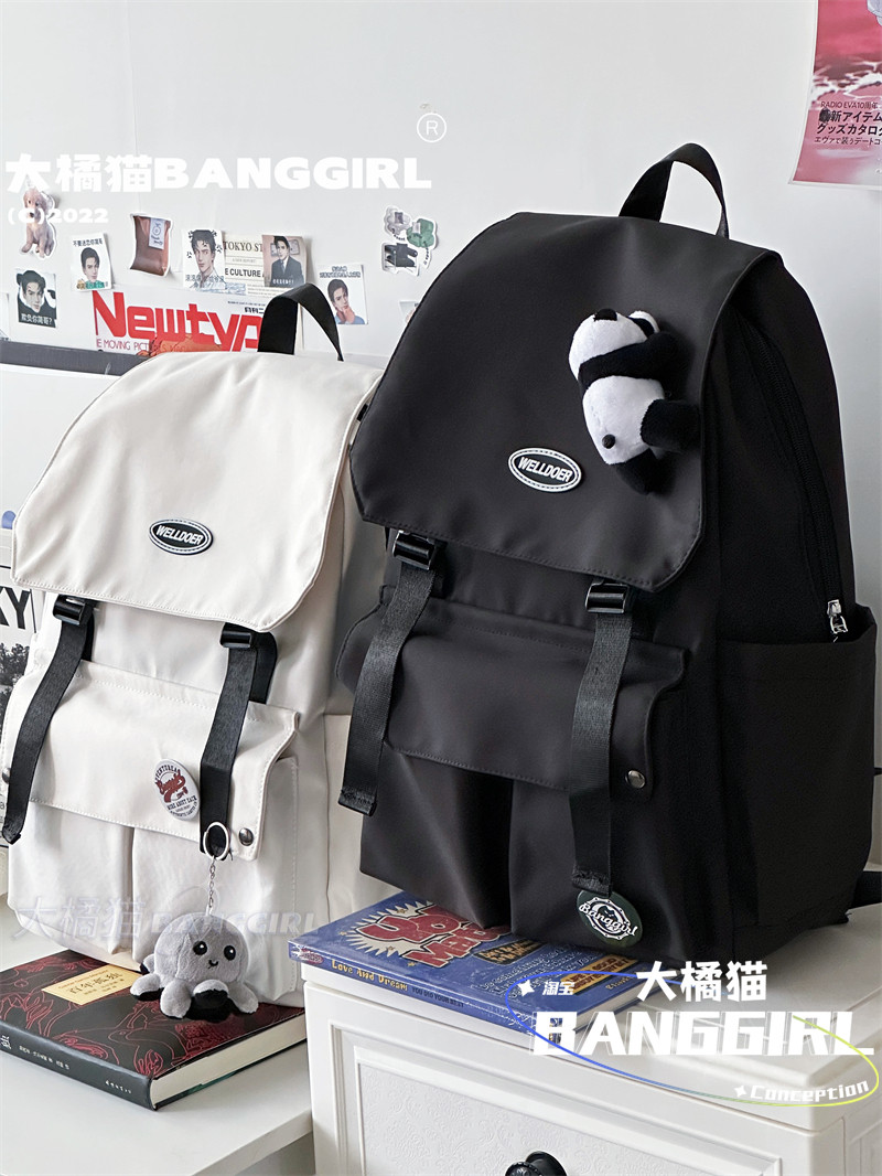 日系原宿ins港風雙肩包男中性大容量後後背包女初中生高中學生書包潮