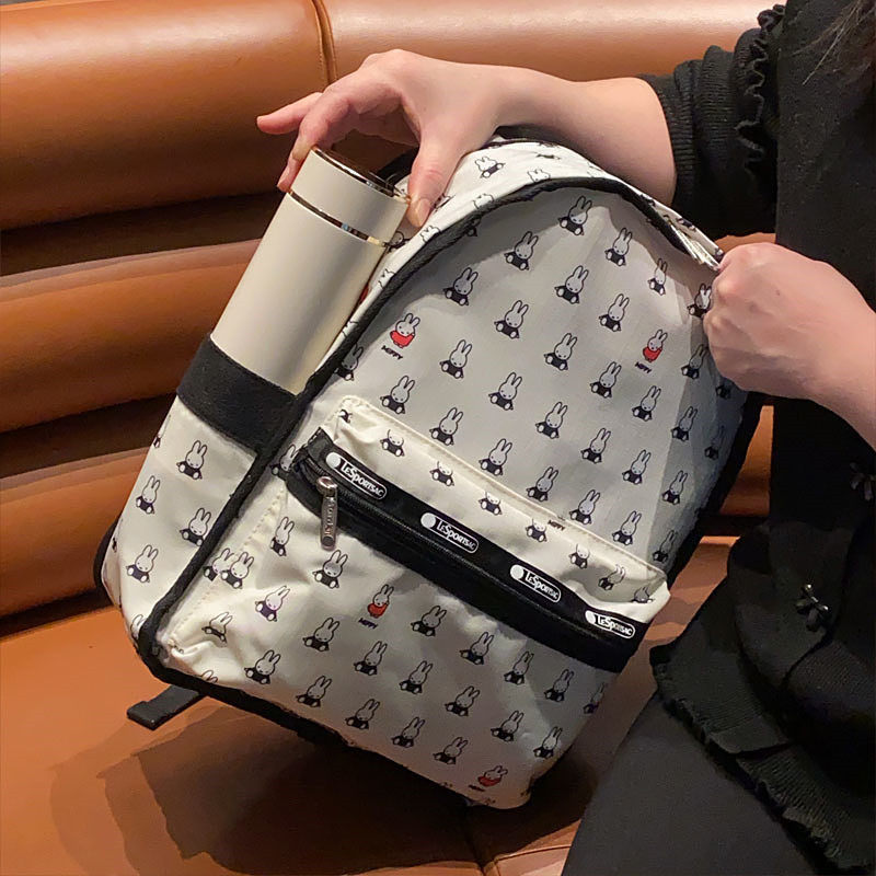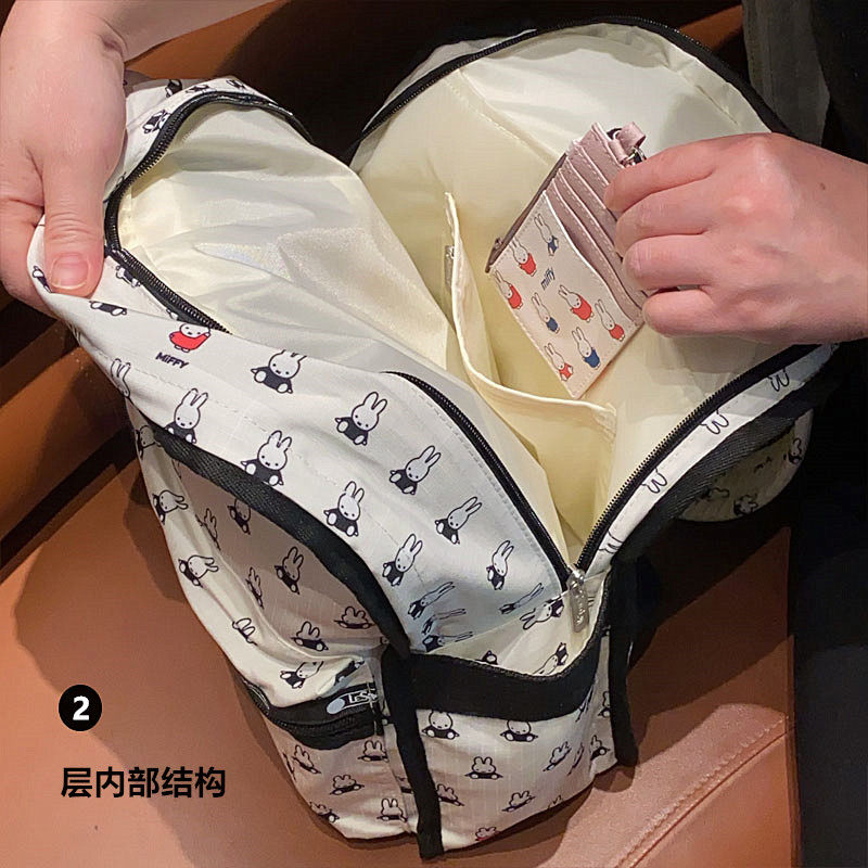 日系卡通米飛兔可愛印花雙肩包戶外休閒後後背包輕便短途收納包旅行包