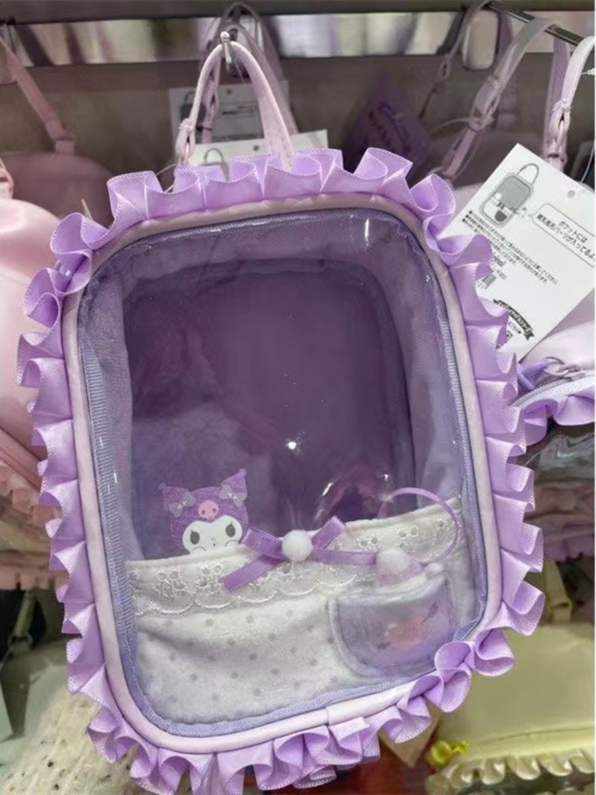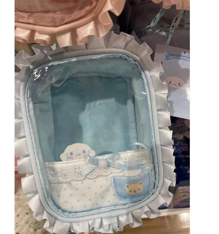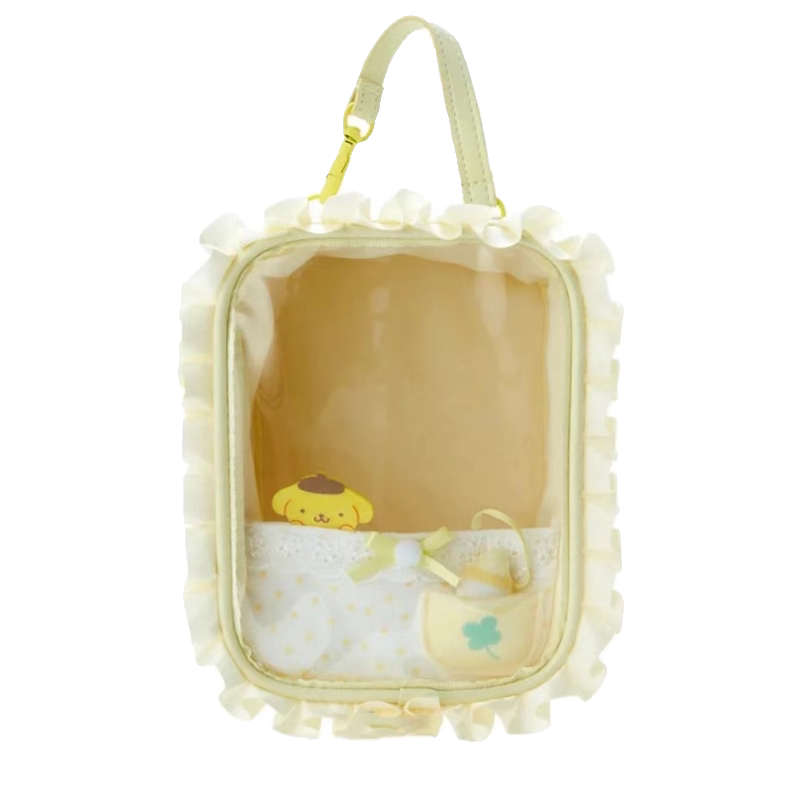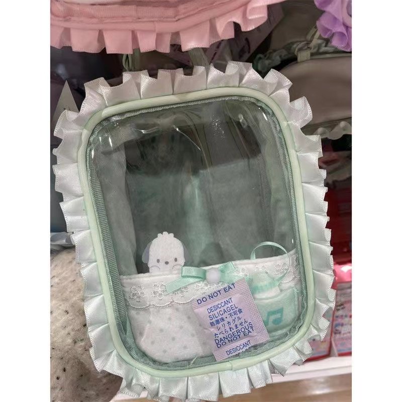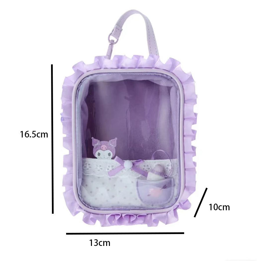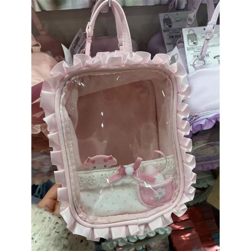 卡通蕾絲透明娃娃痛包2024新款小衆手提收納包甜美可愛通勤玩偶包