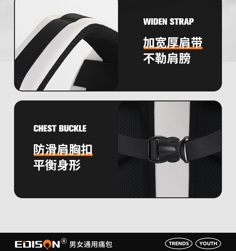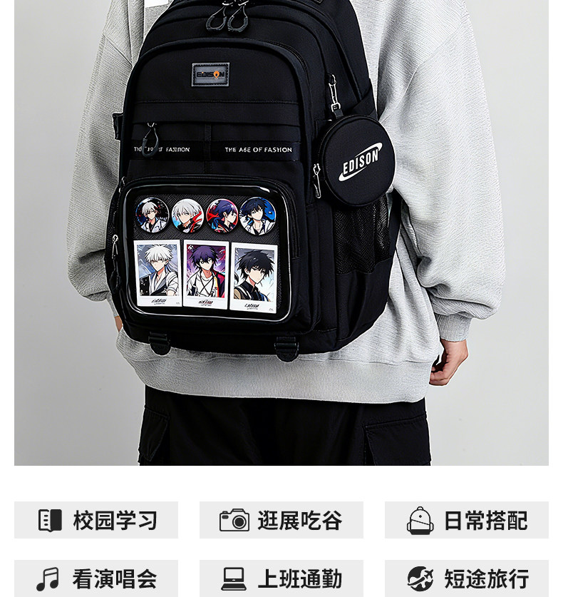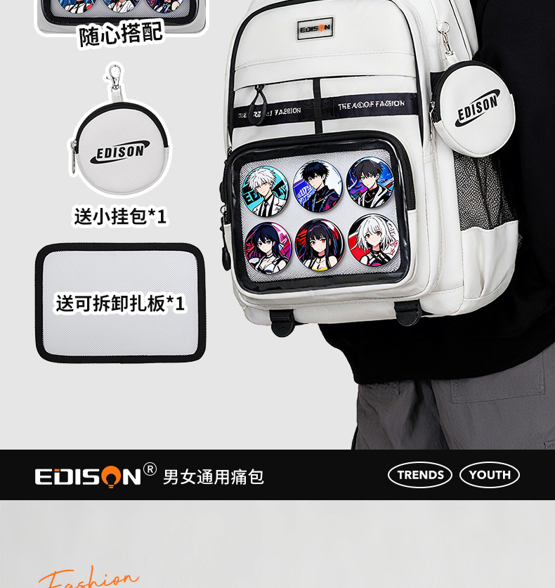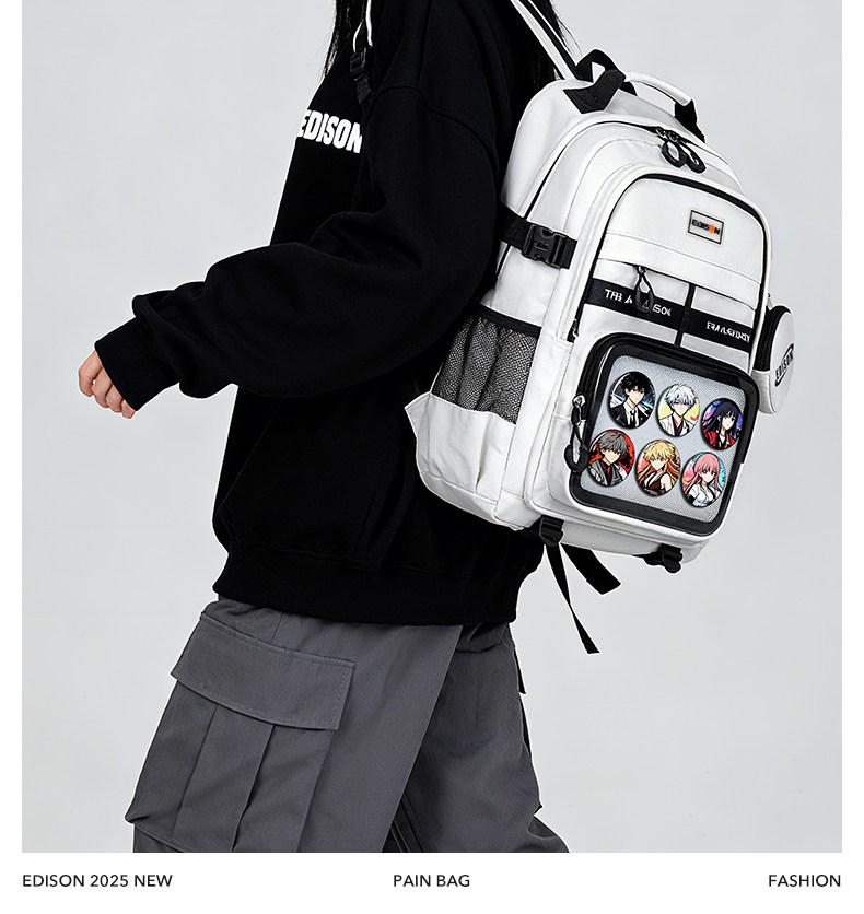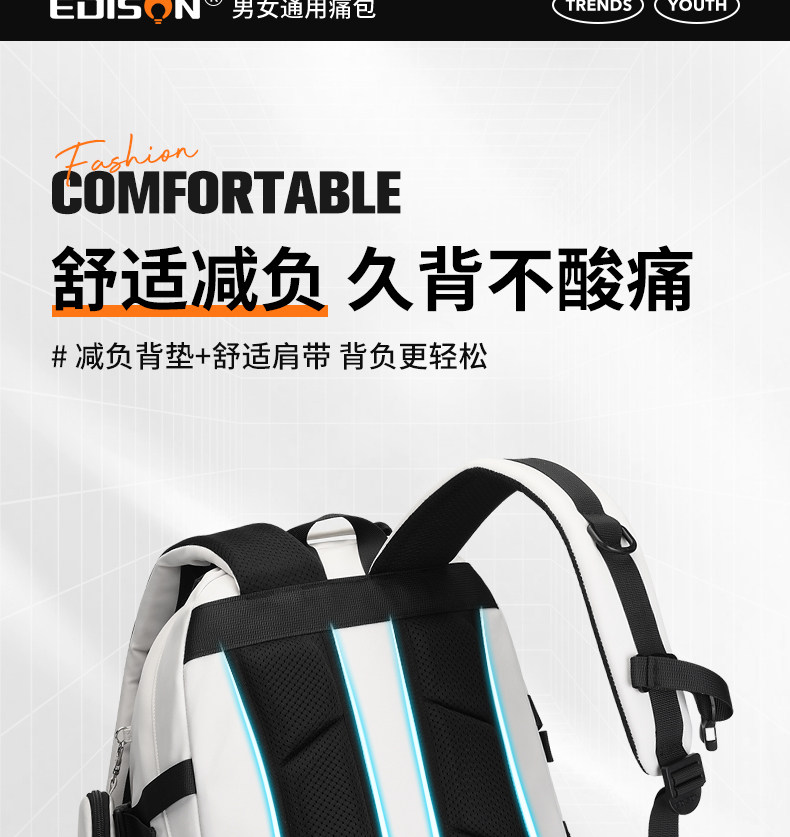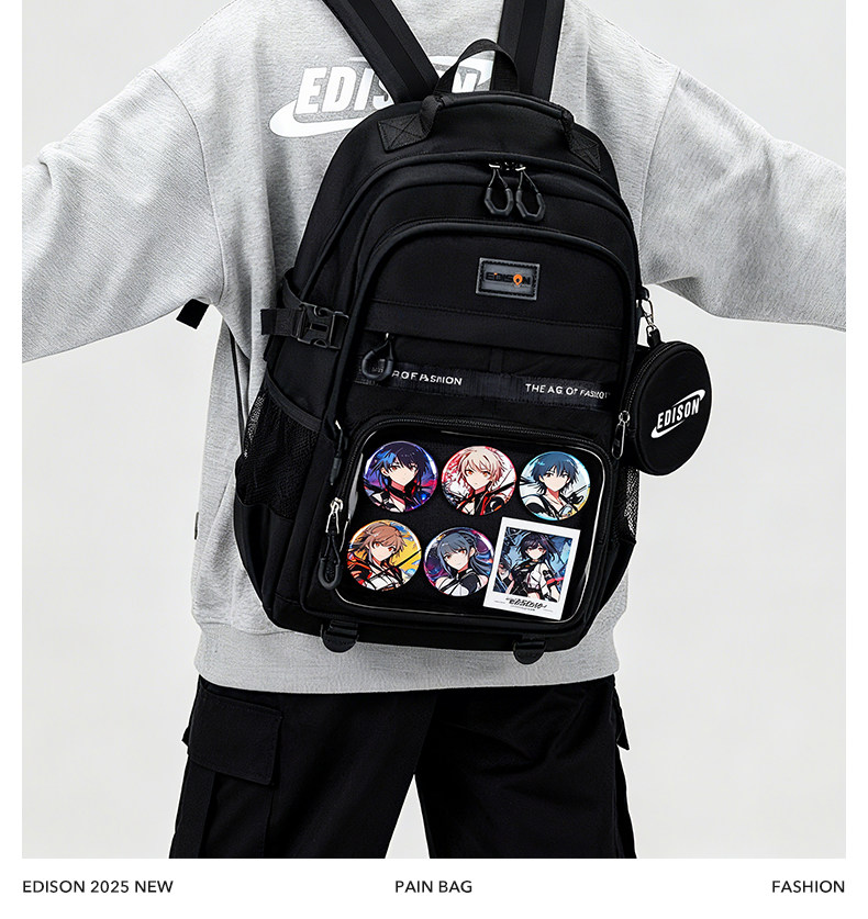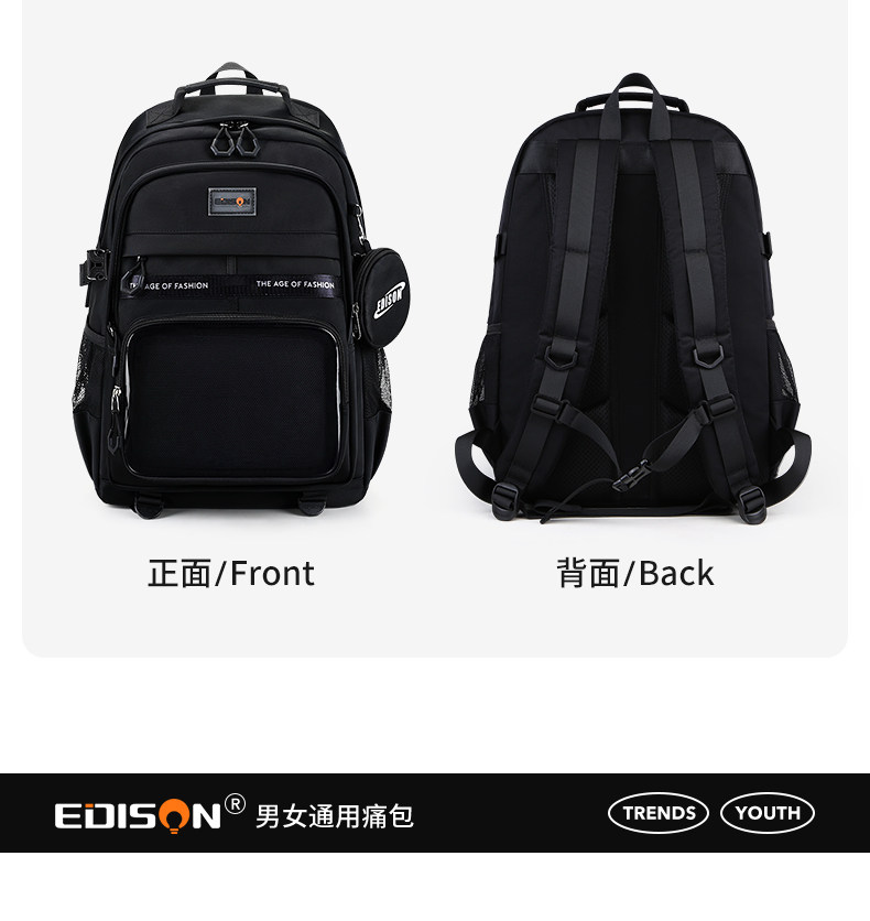 愛迪生雙肩痛包日常款大容量書包女初高中學生雙肩包高顔值後後背包男