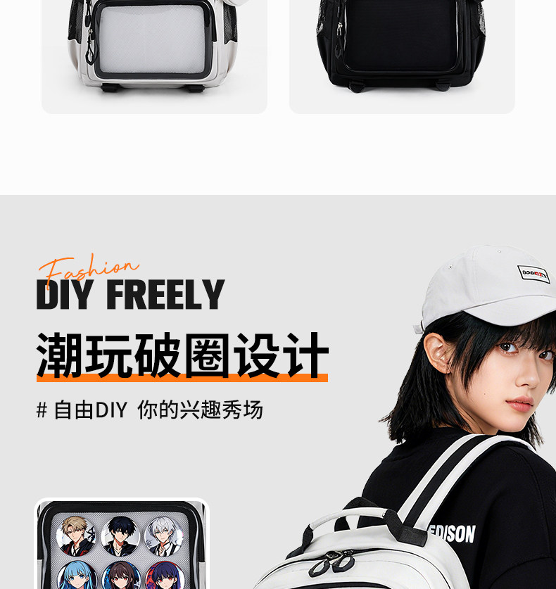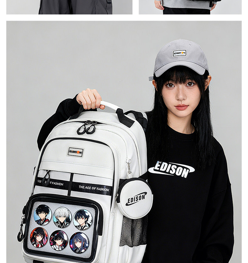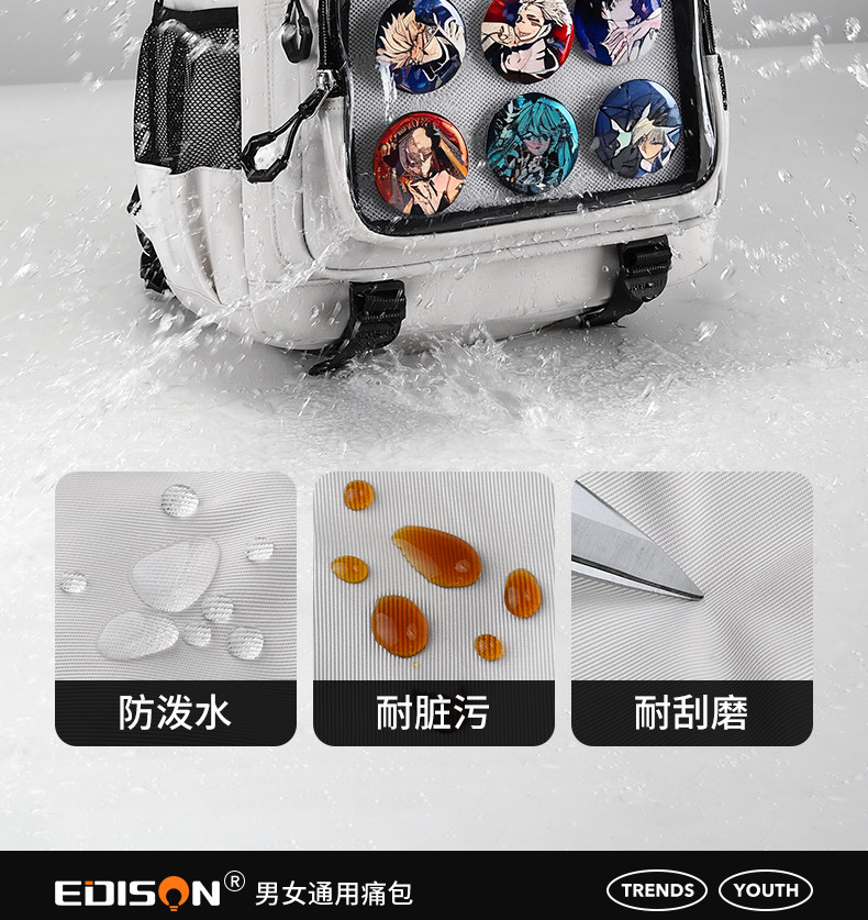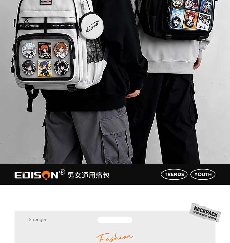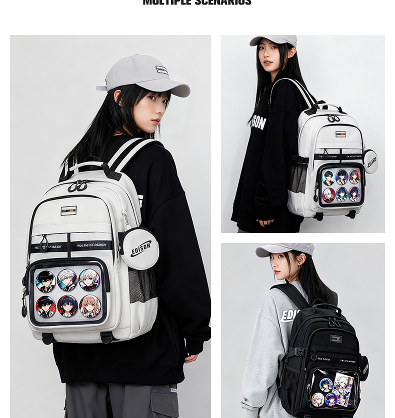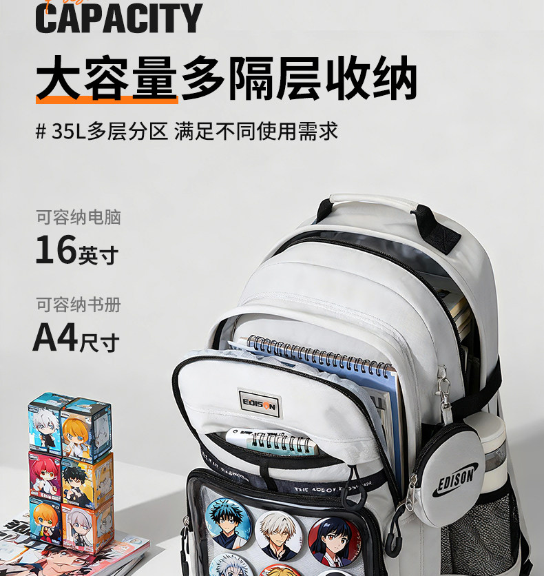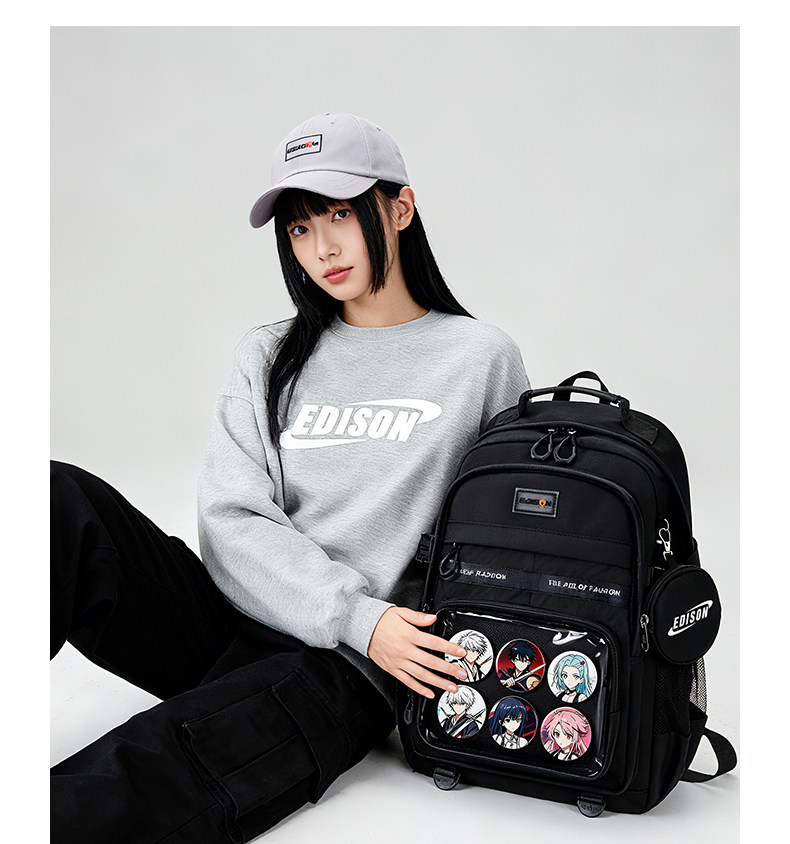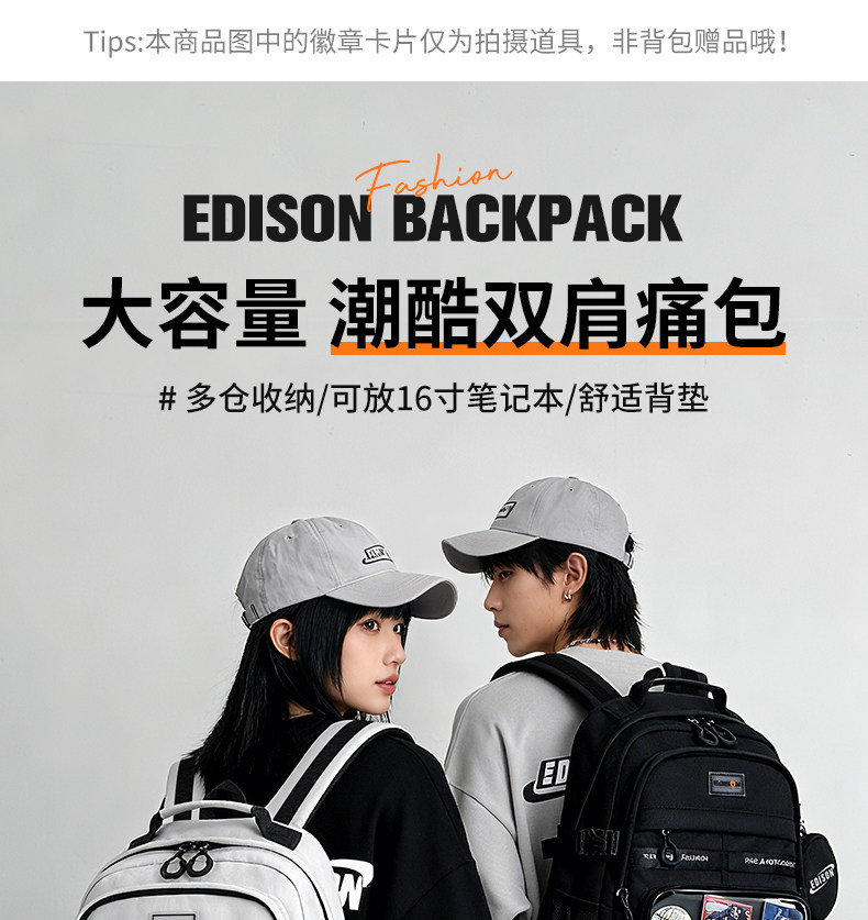 愛迪生雙肩痛包日常款大容量書包女初高中學生雙肩包高顔值後後背包男