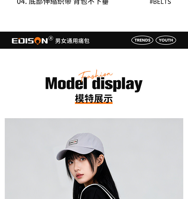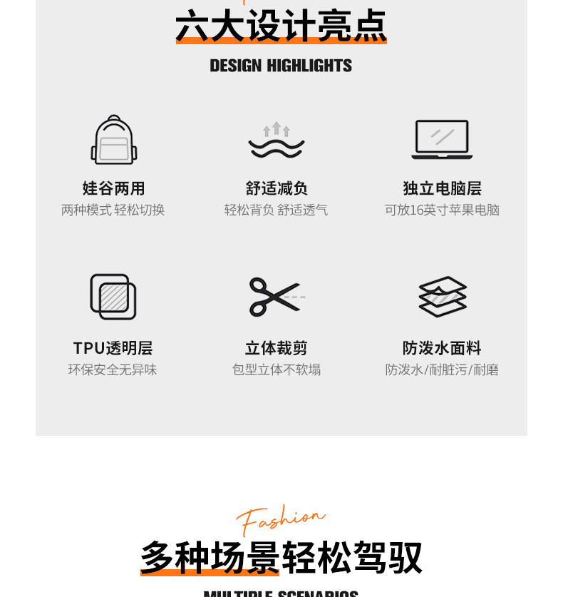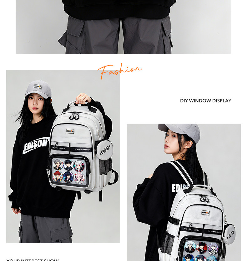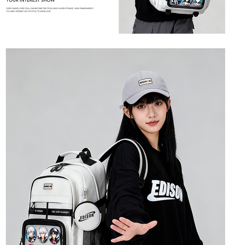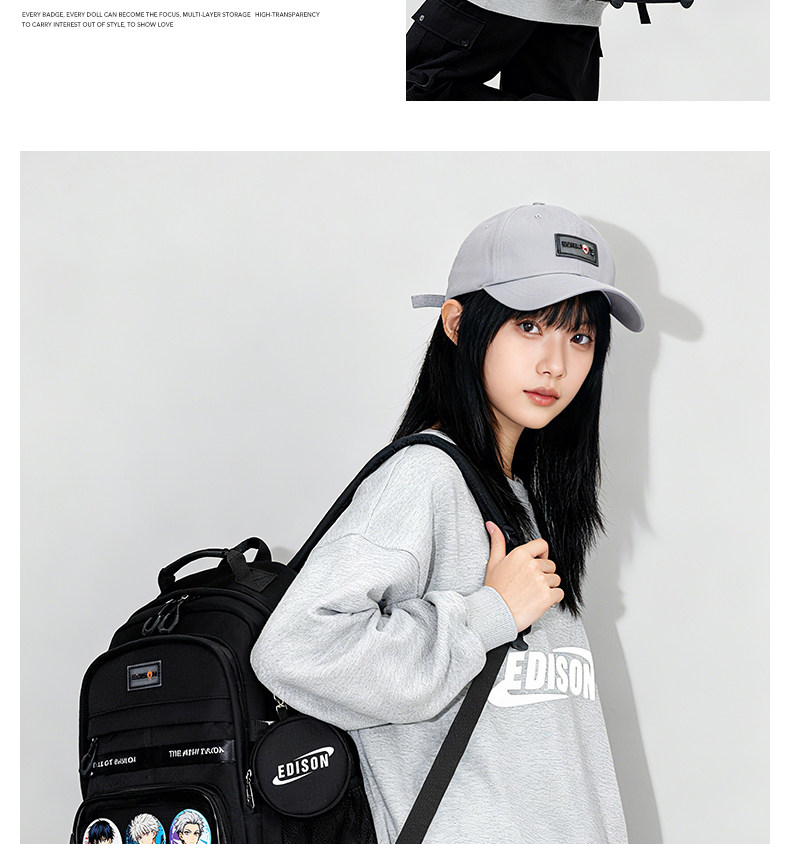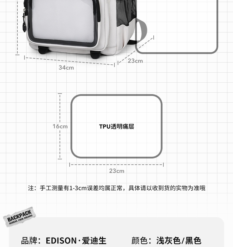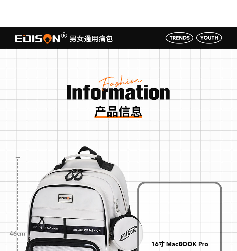 愛迪生雙肩痛包日常款大容量書包女初高中學生雙肩包高顔值後後背包男