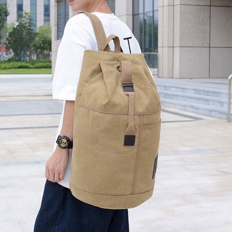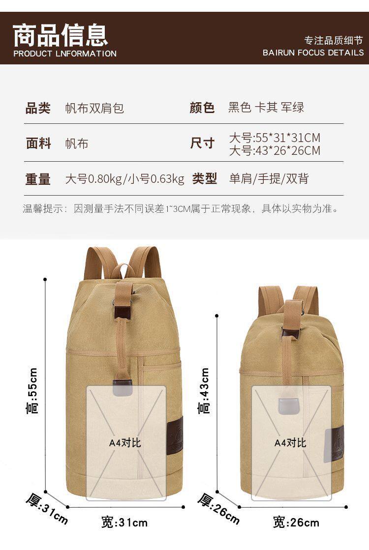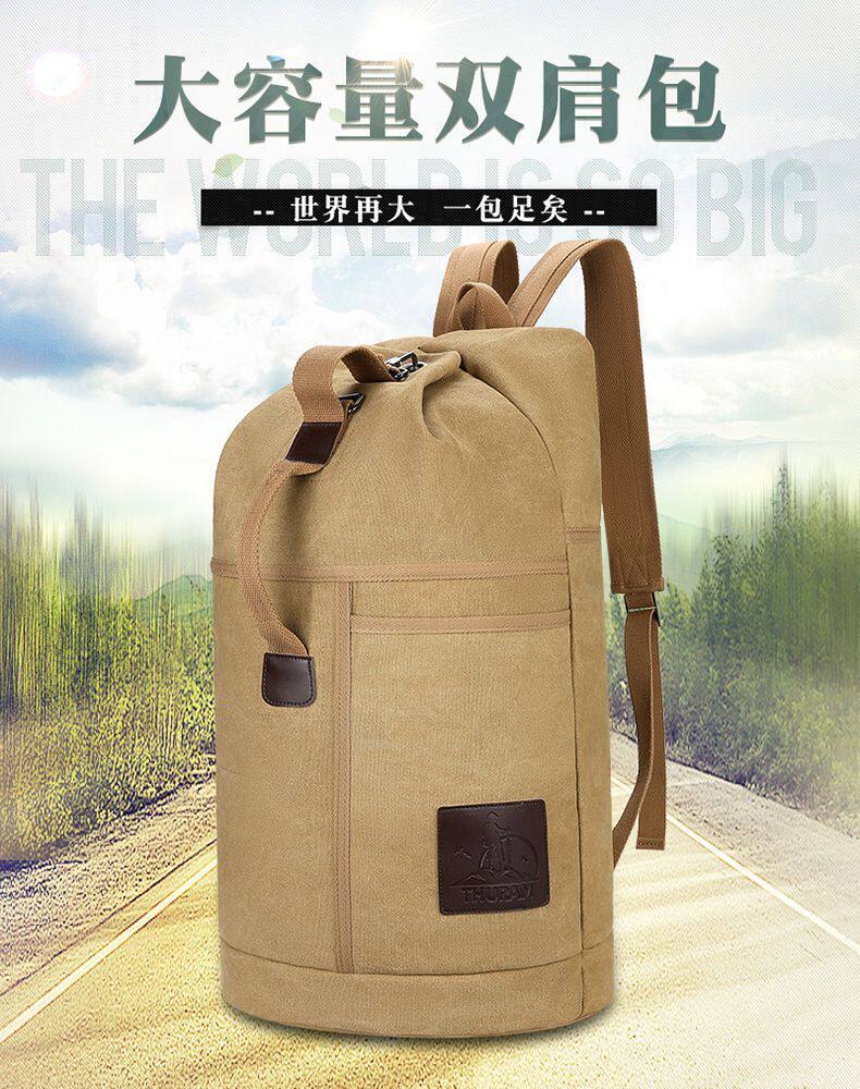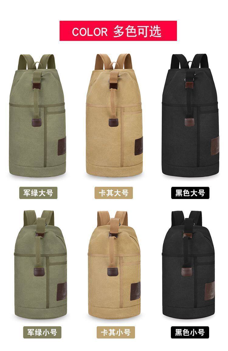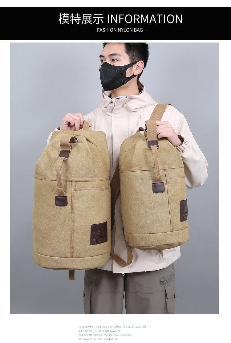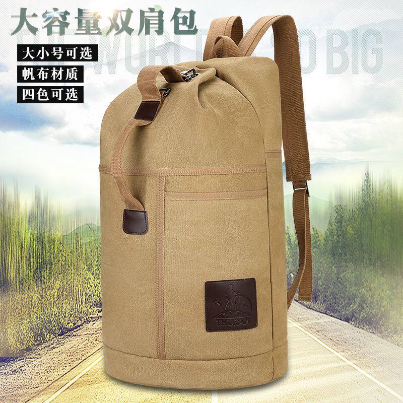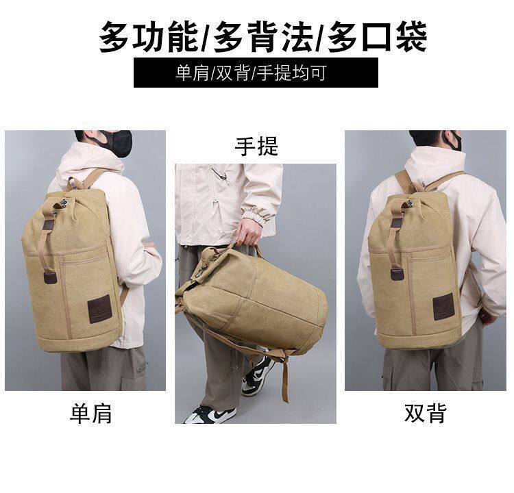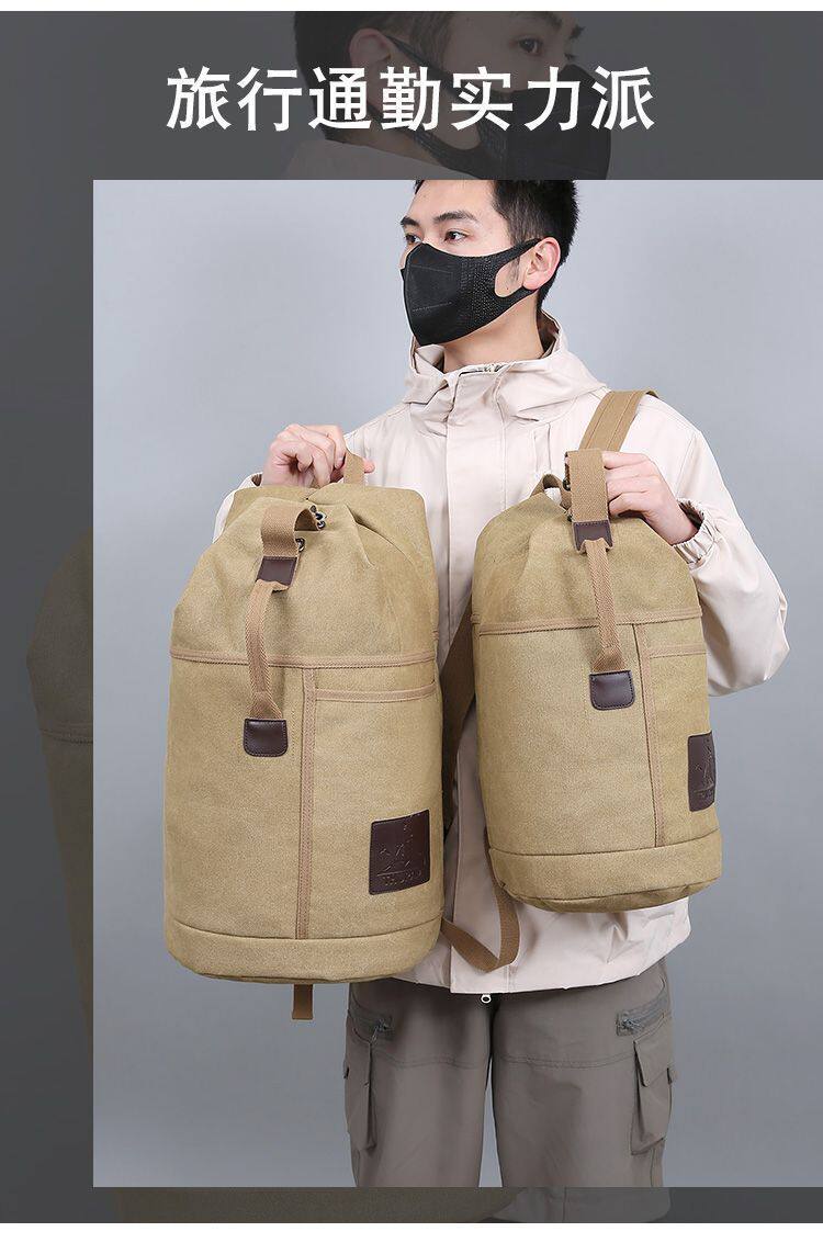 新款男士旅行大容量包大學生雙肩布包後後背包帆布旅行包水桶休閒書包