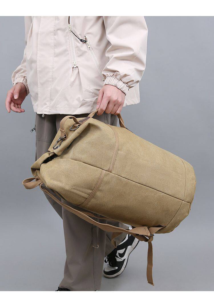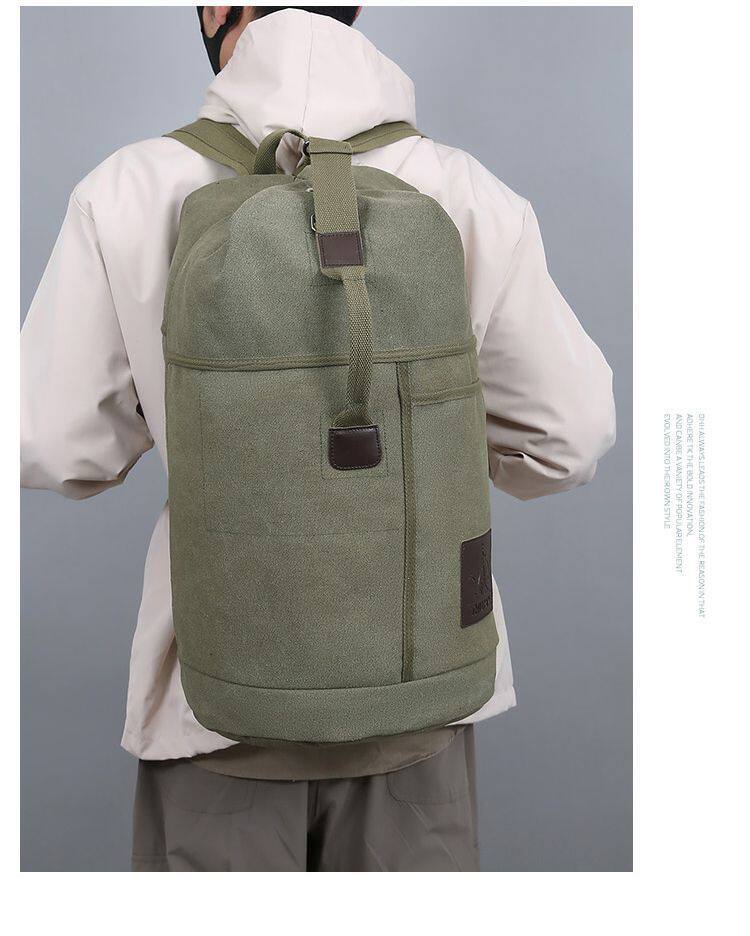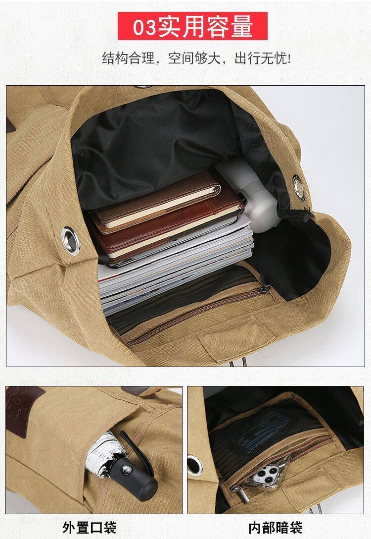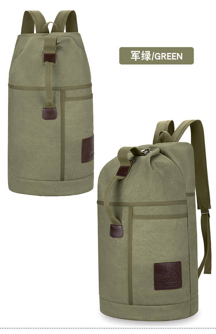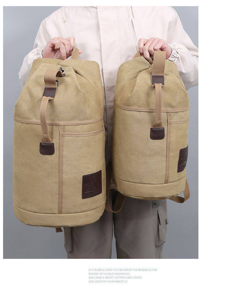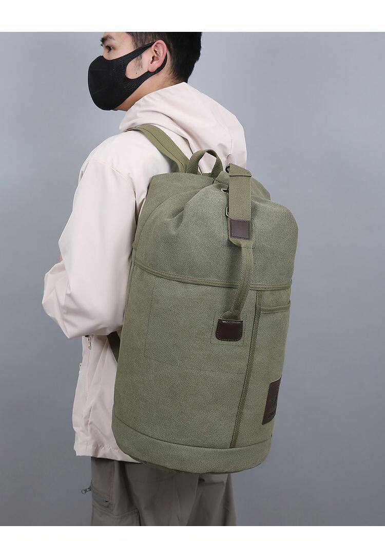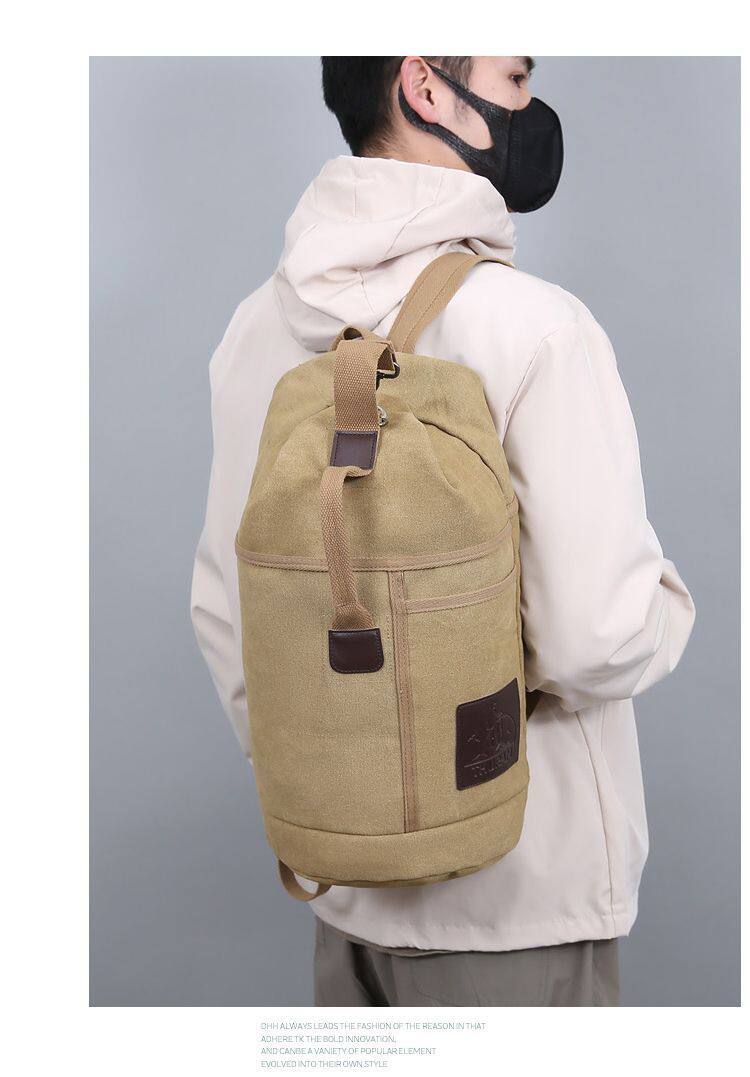 新款男士旅行大容量包大學生雙肩布包後後背包帆布旅行包水桶休閒書包