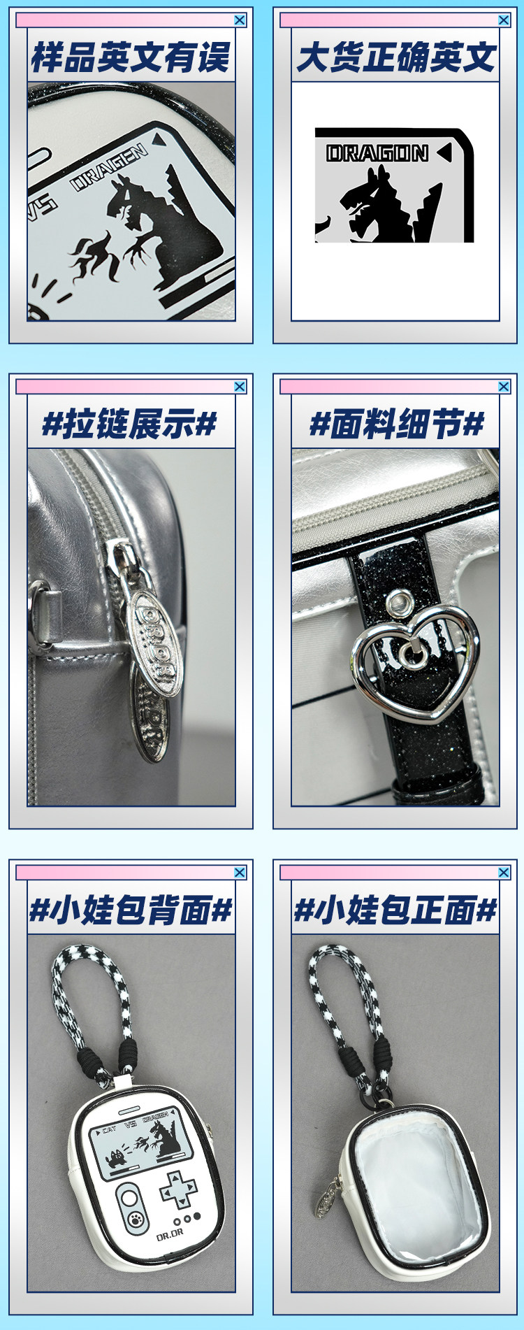 DRDR原創設計小貓鬥惡龍學生二次元痛包穀美日常追星娃包單肩包