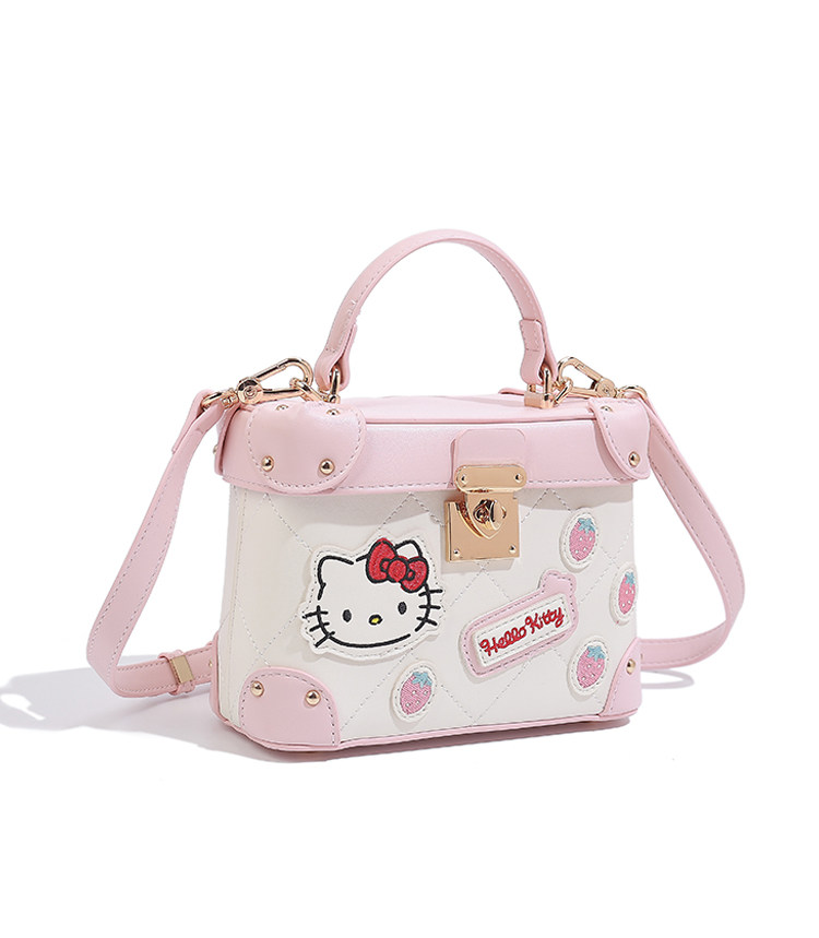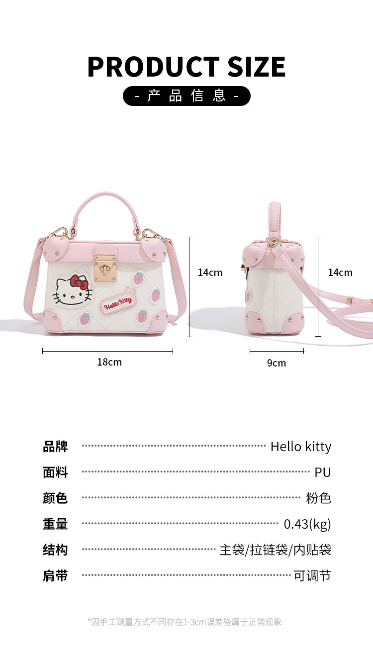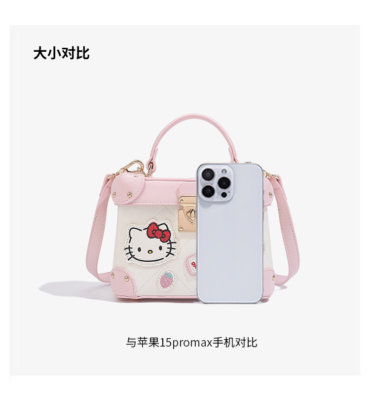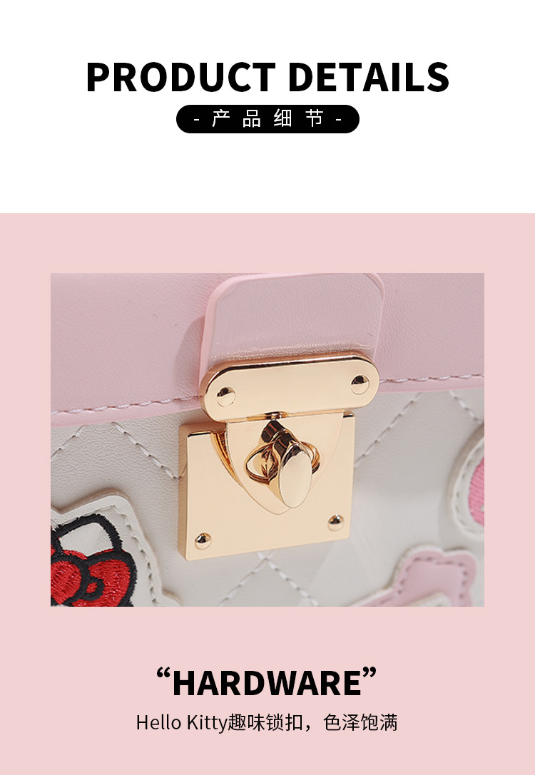 HelloKitty凱蒂貓盒子包撞色刺綉手提包包女時尚少女風單肩斜後後背包