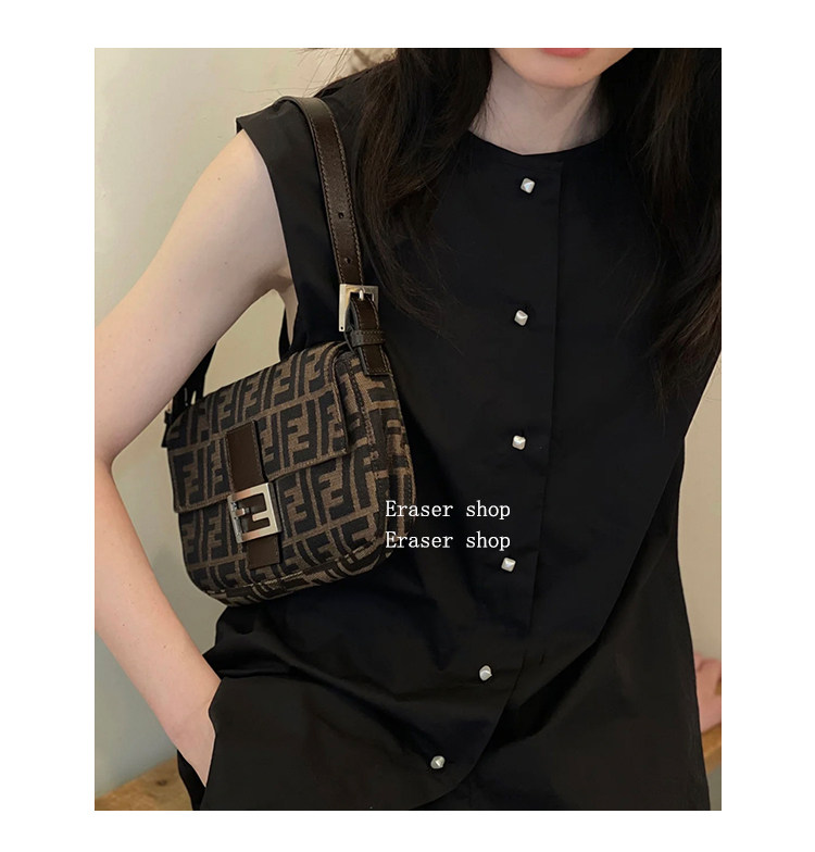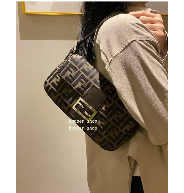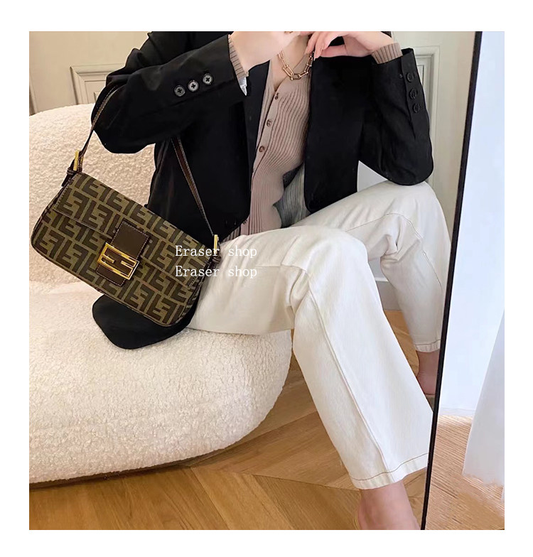 老花法棍包中古帆布手提單肩腋下女包高級感復古百搭斜背小方包
