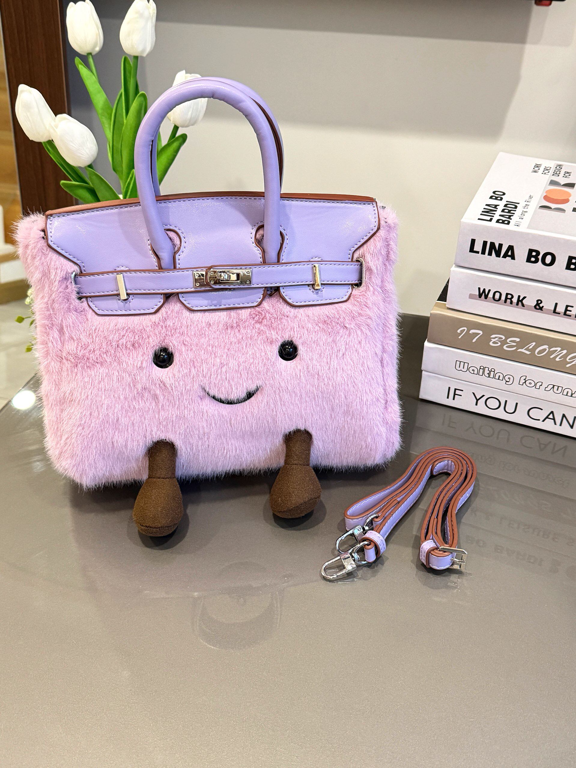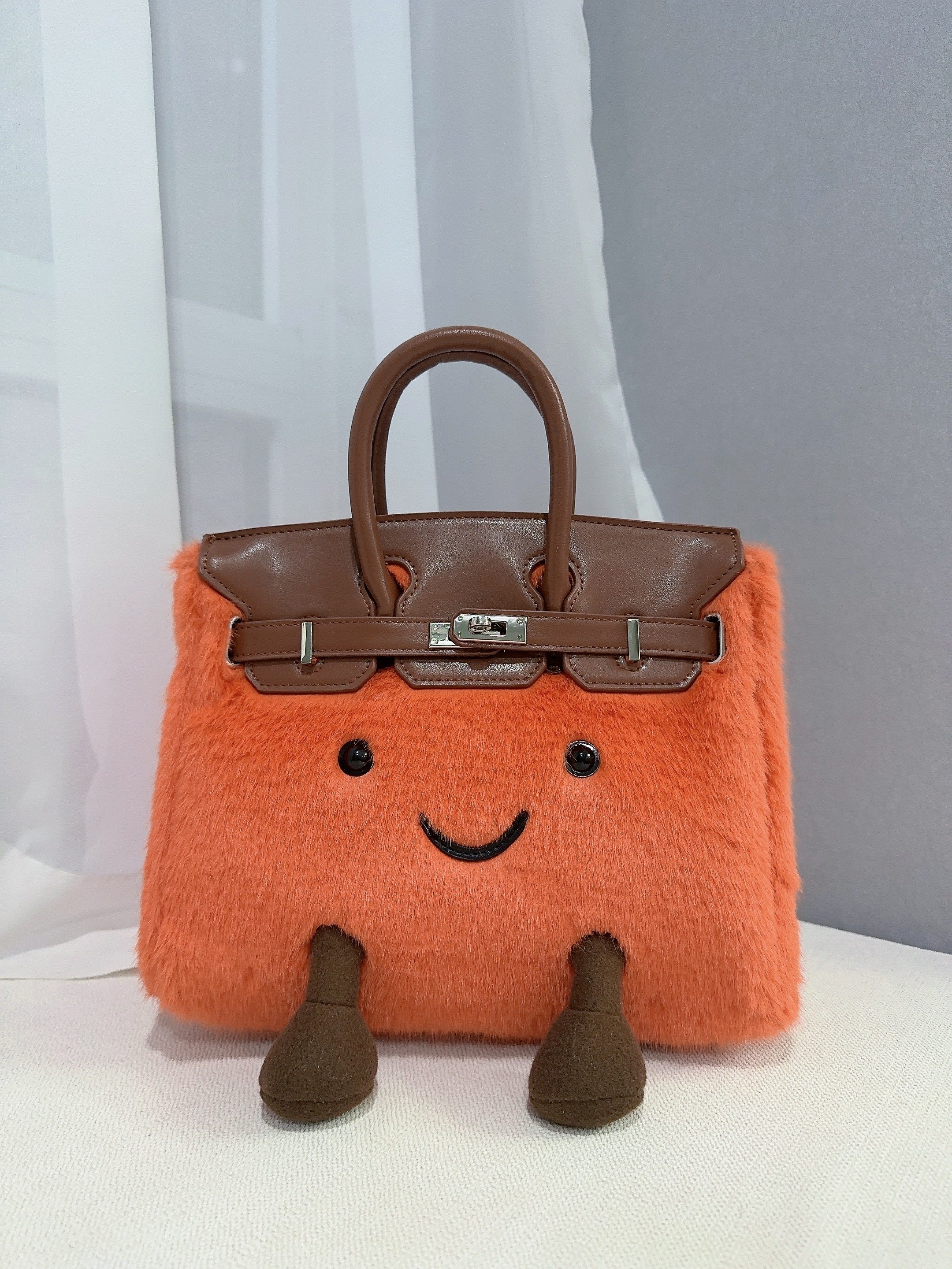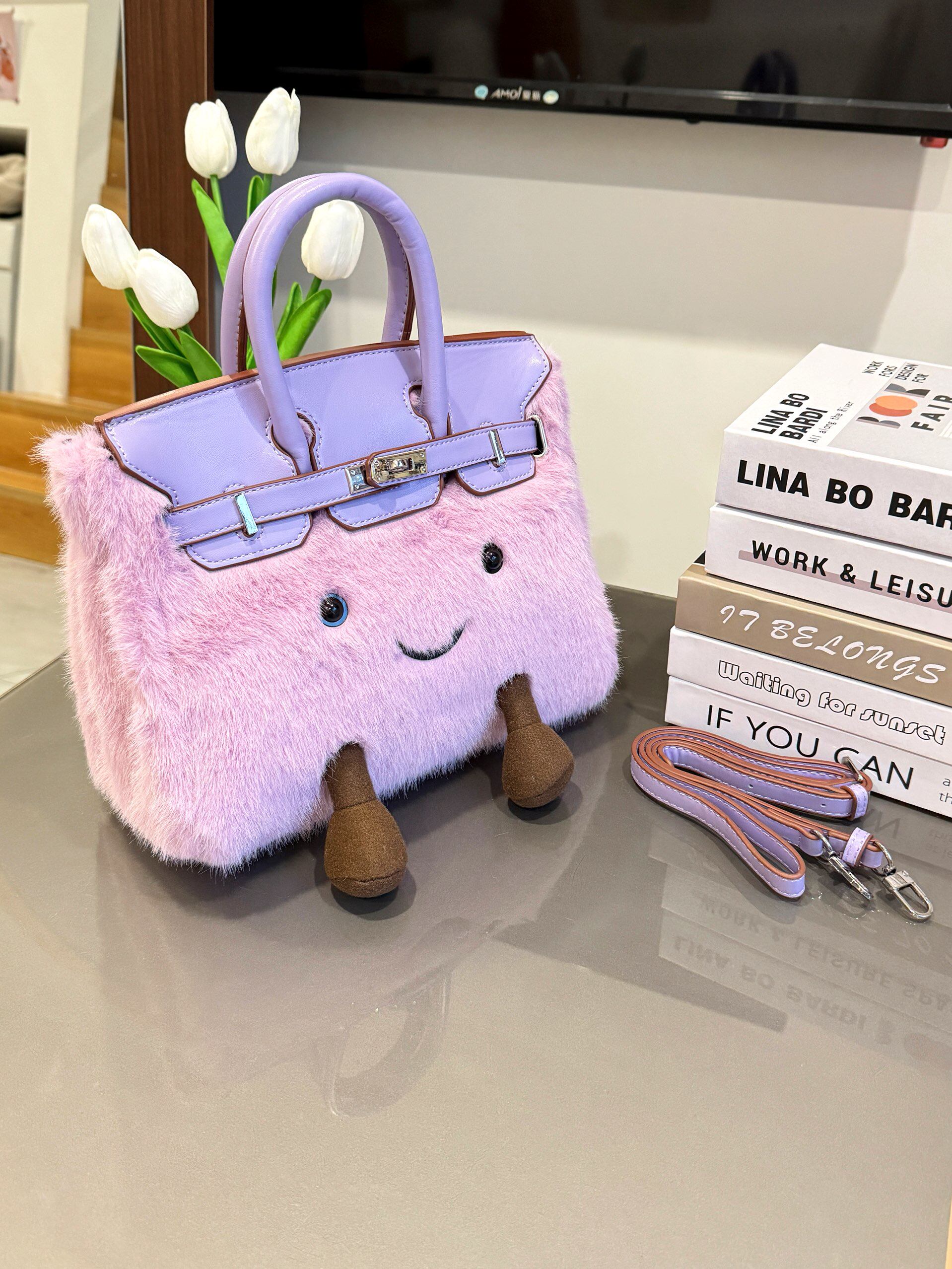 小衆設計感小精靈毛絨斜後後背包上班小拎包高顔值可愛手提包包凱莉包