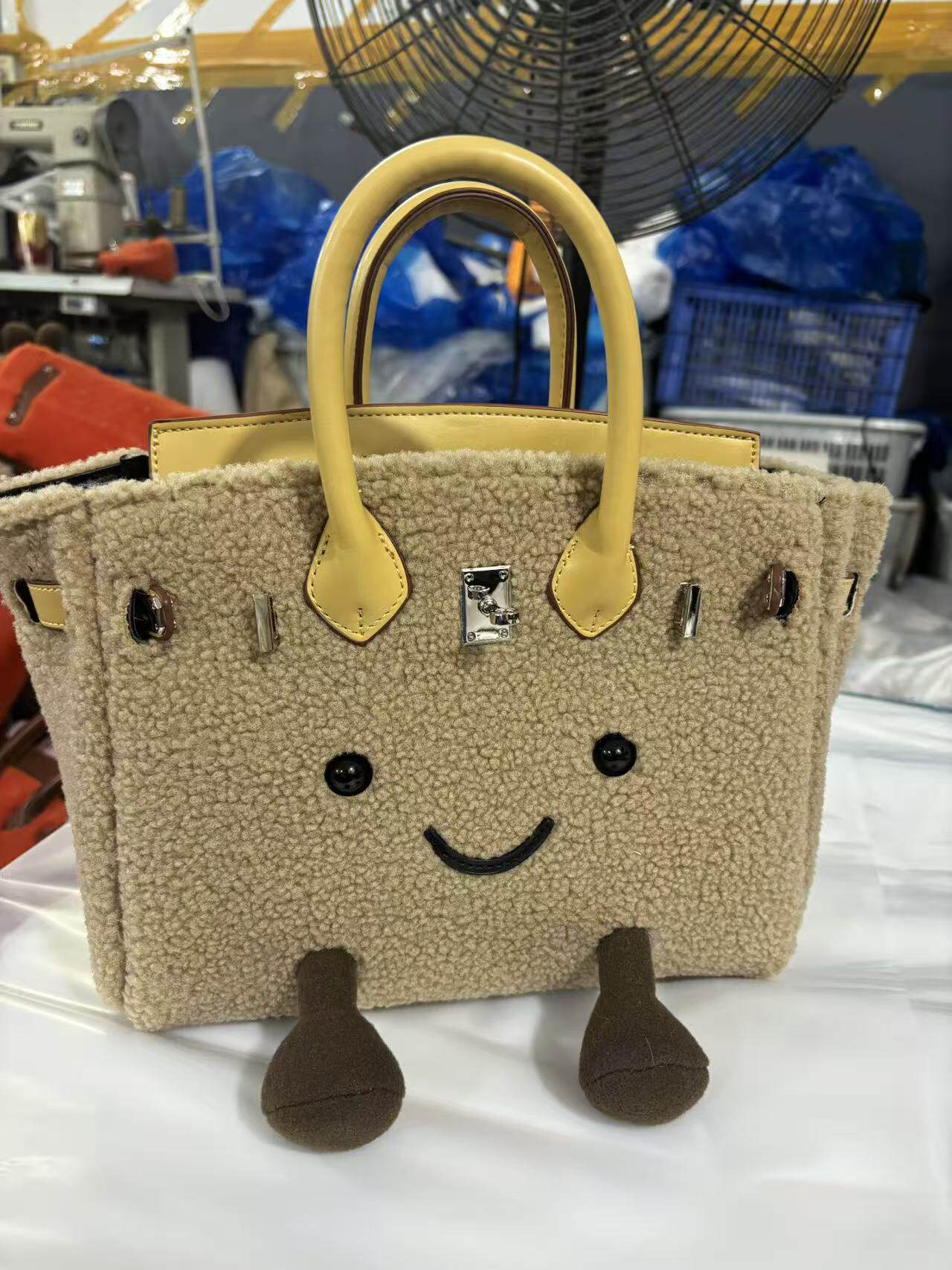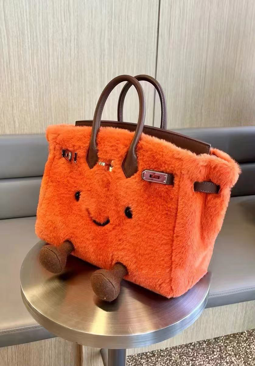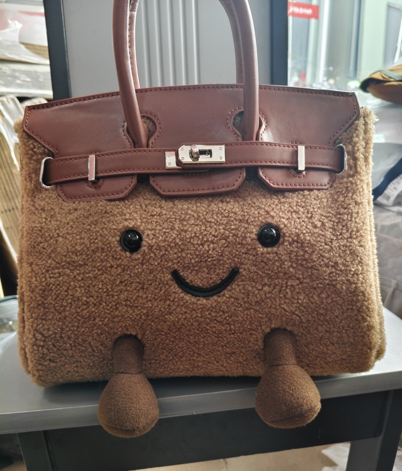 小衆設計感小精靈毛絨斜後後背包上班小拎包高顔值可愛手提包包凱莉包