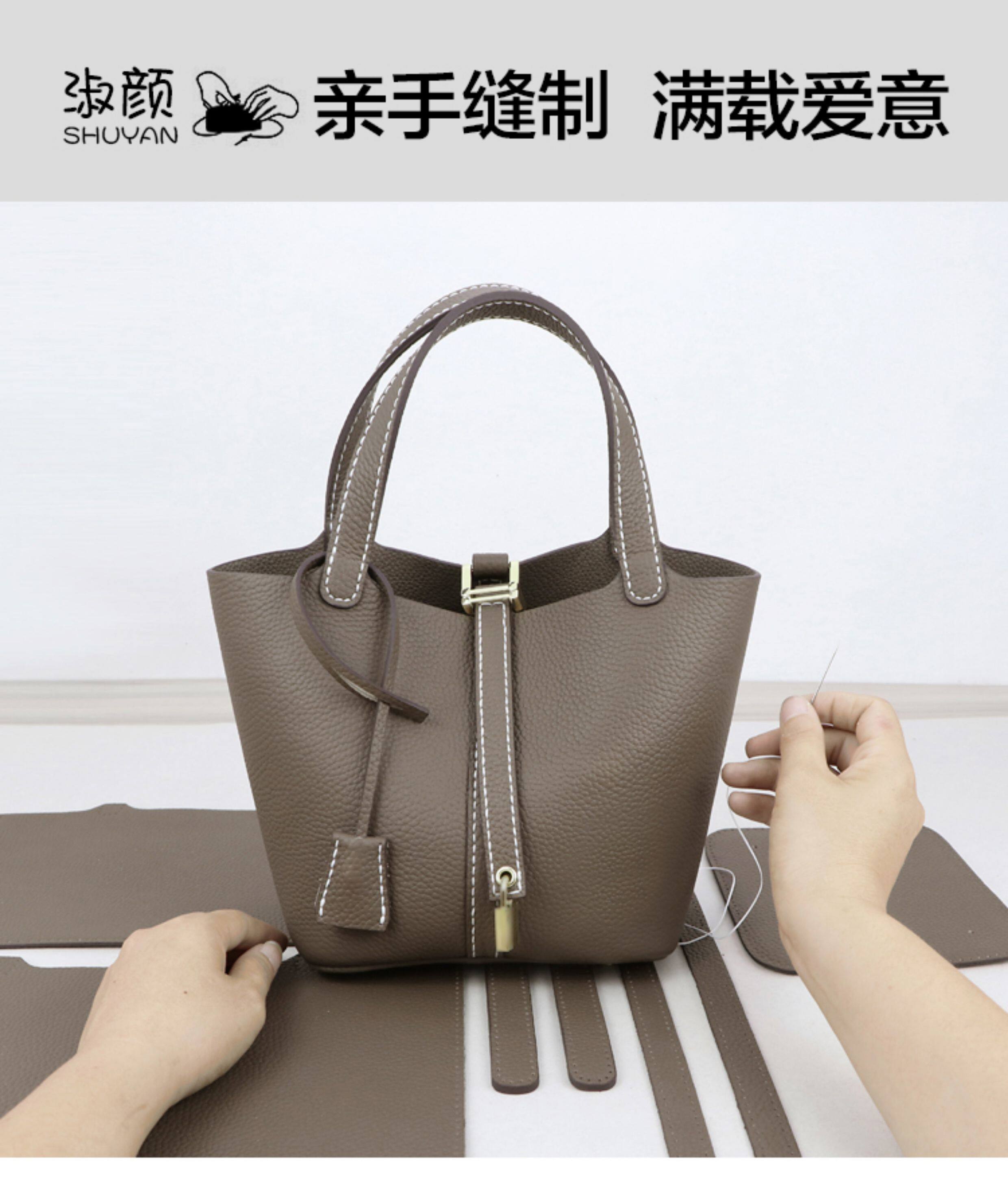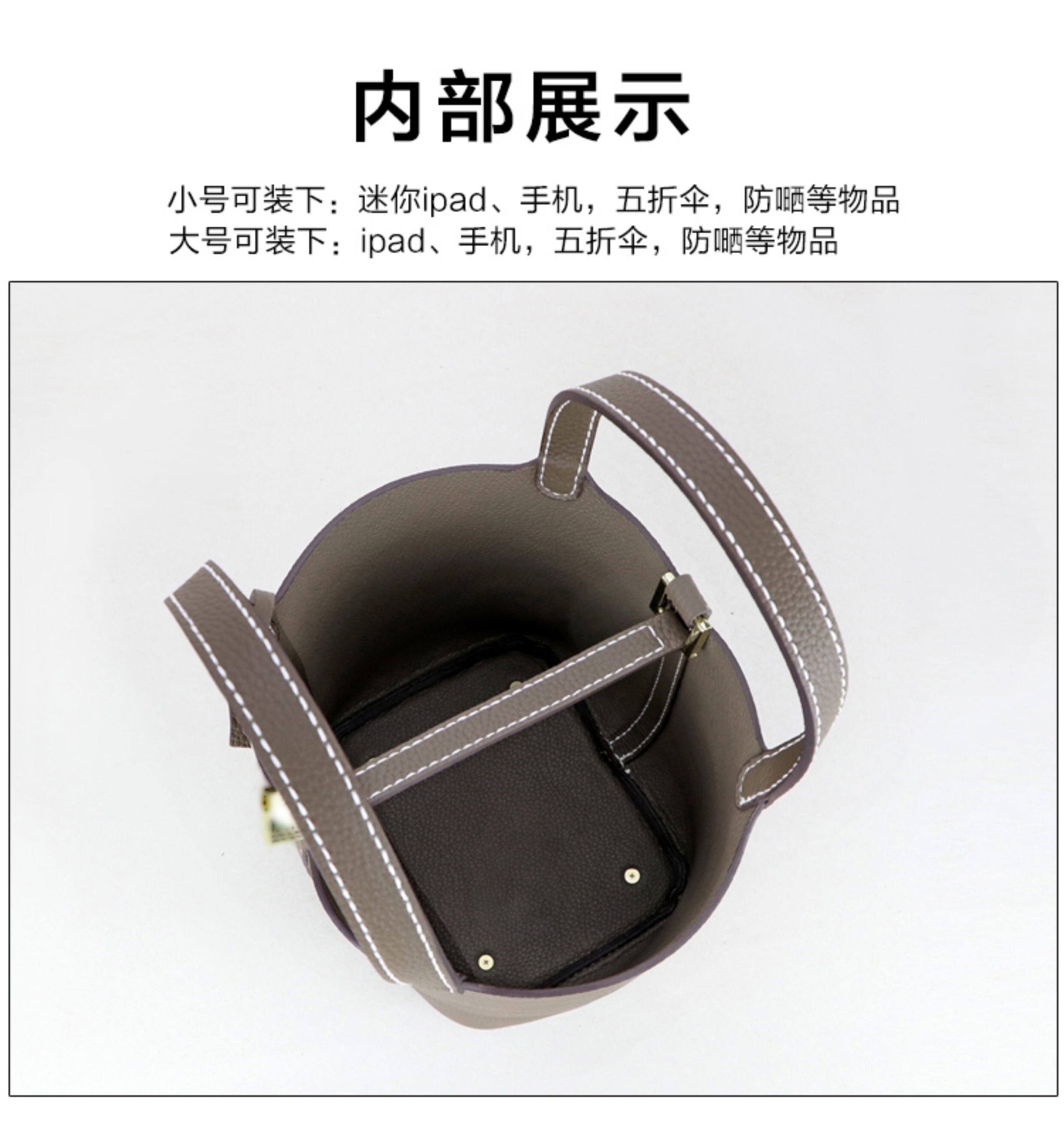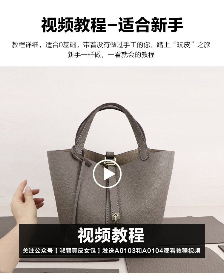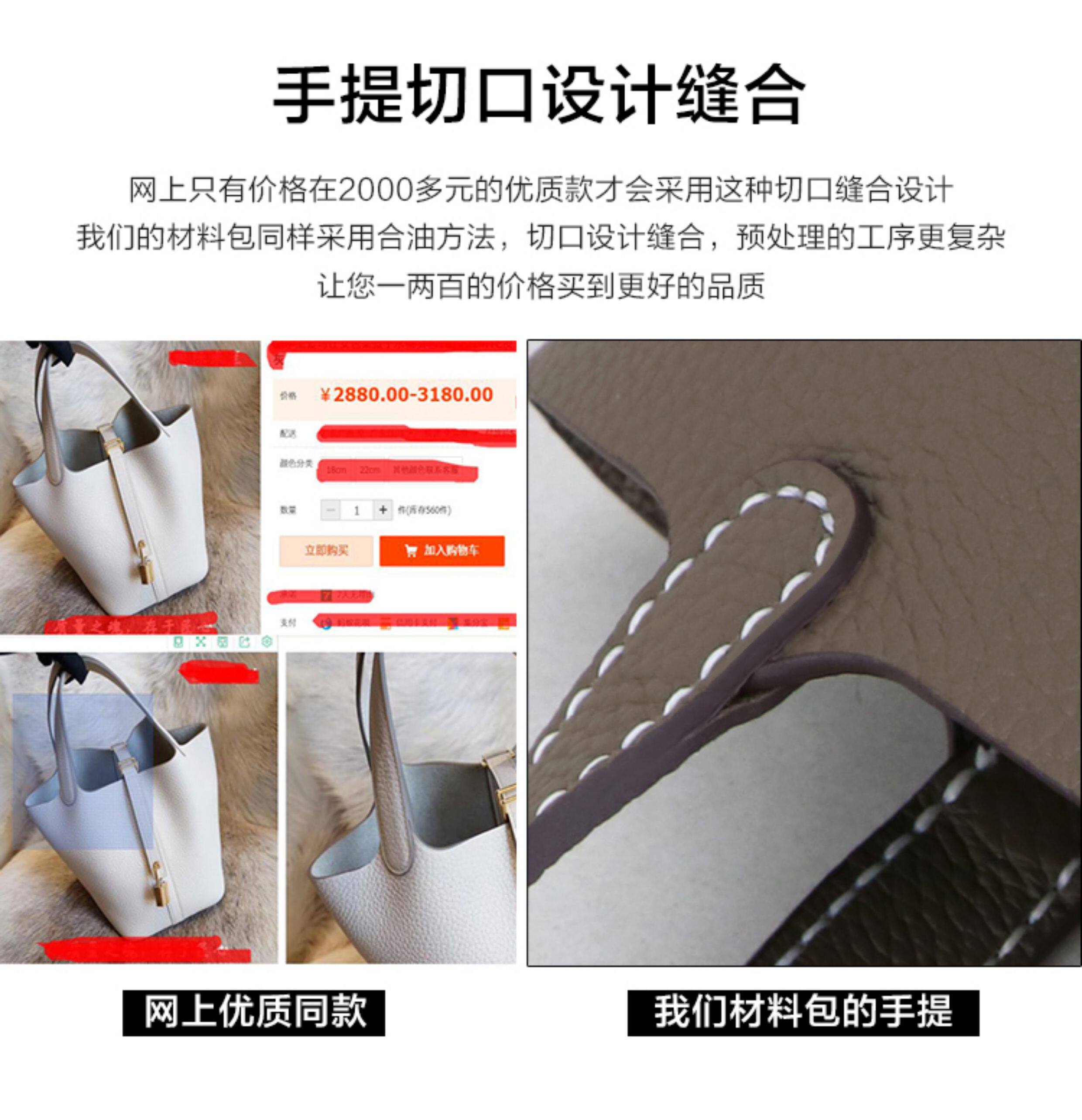 菜籃子包牛皮手工包包diy材料包自製鎖釦牛皮水桶包大象灰女包