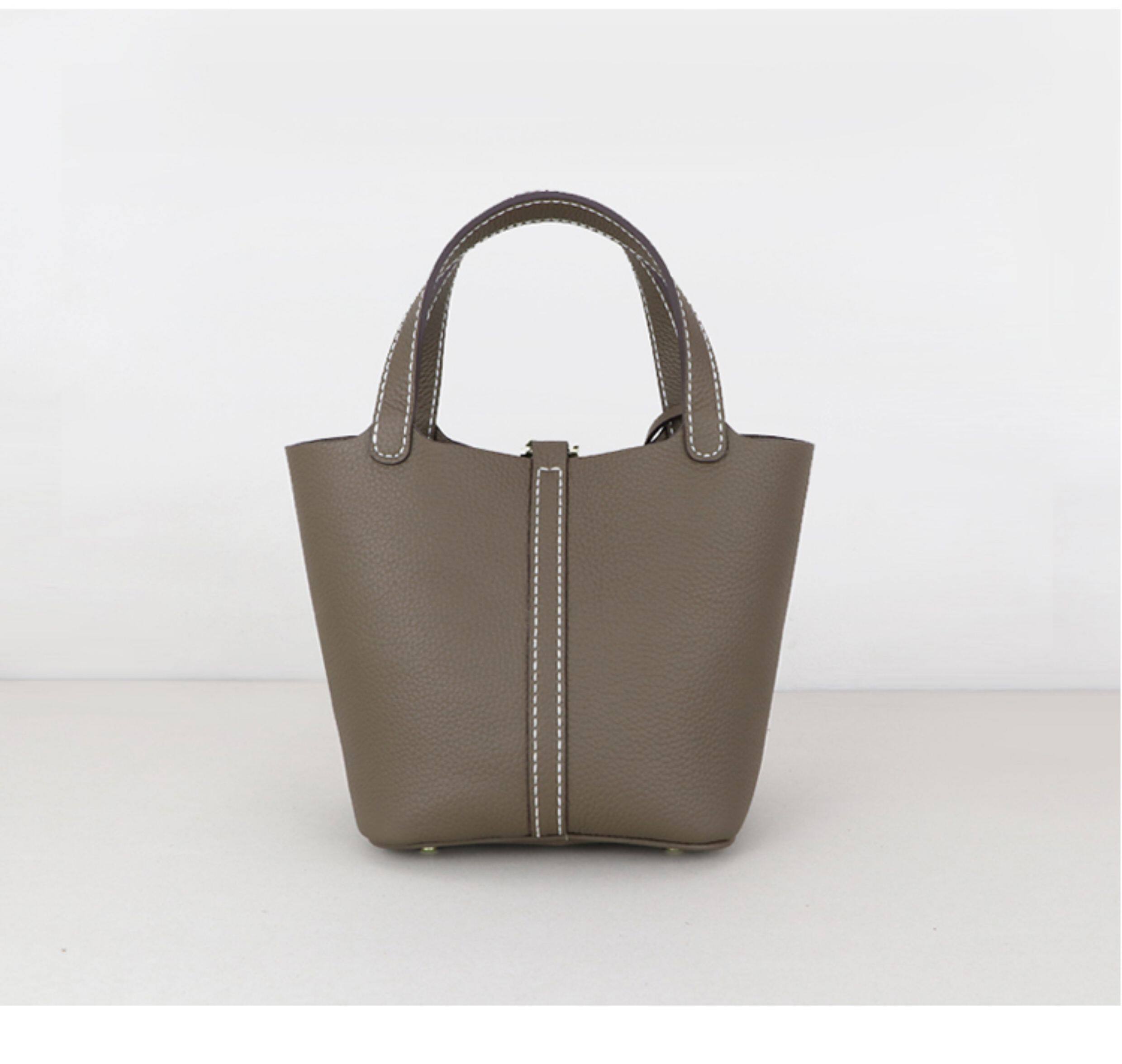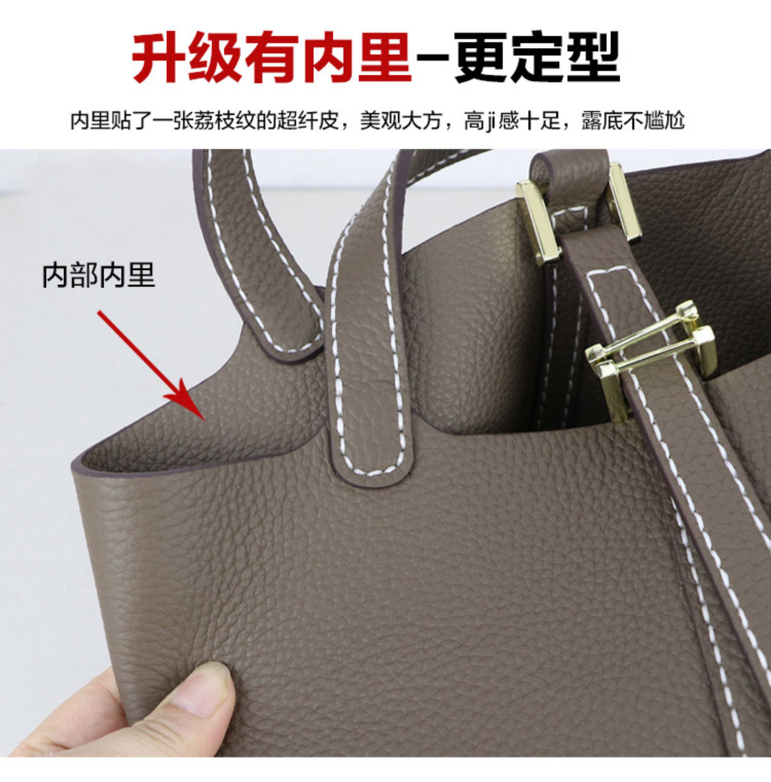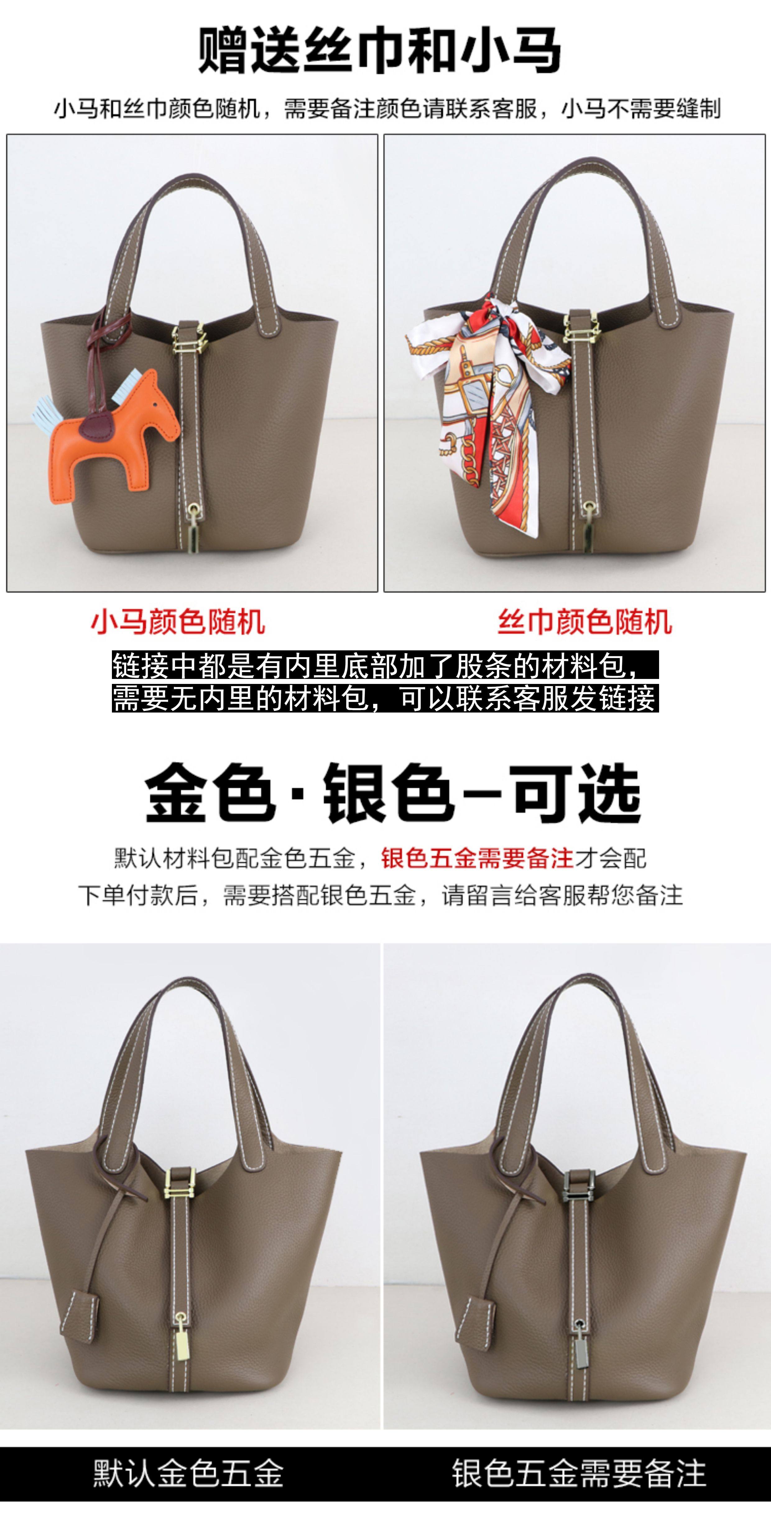 菜籃子包牛皮手工包包diy材料包自製鎖釦牛皮水桶包大象灰女包