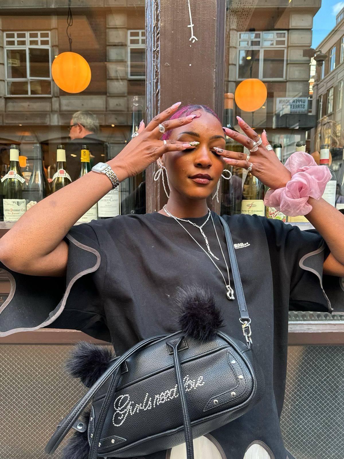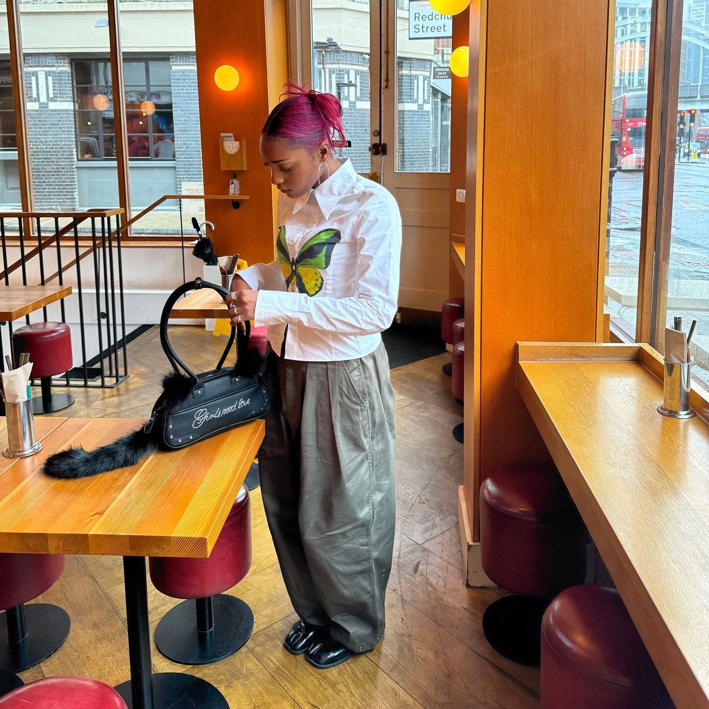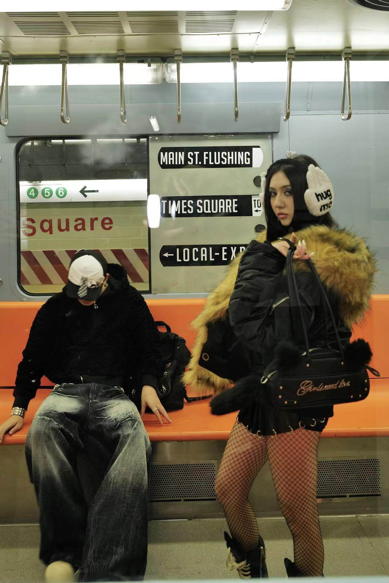 SAUCE原創新款可愛毛絨貓尾巴手提包鑲鑽字母皮包單肩斜背腋下包
