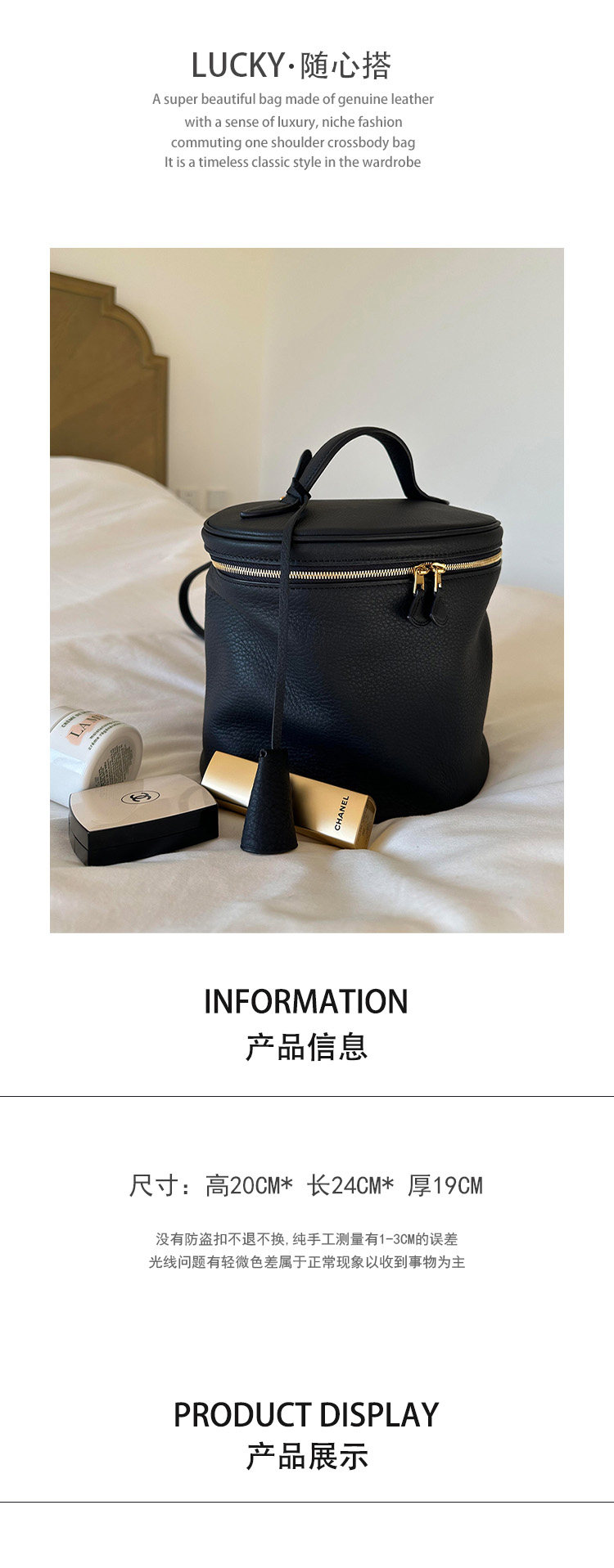 黑色真皮大容量水桶包包女2026新款輕奢小衆高級感手提單肩中古包