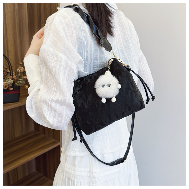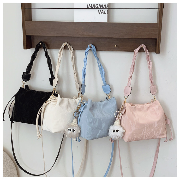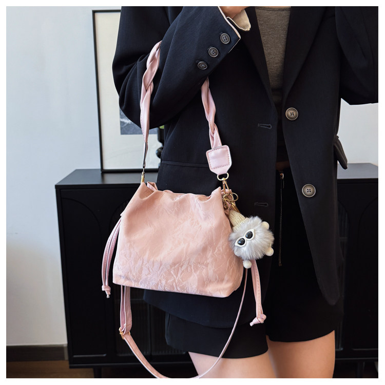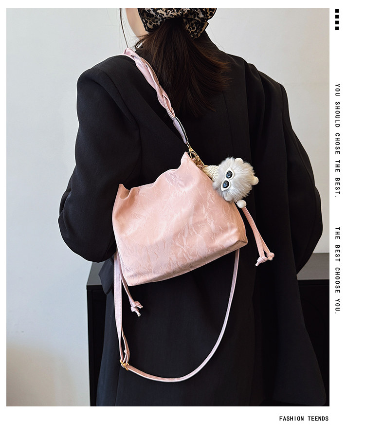 網紅流行小包包女2025新款洋氣單肩包百搭時尚高級感水桶包斜後後背包