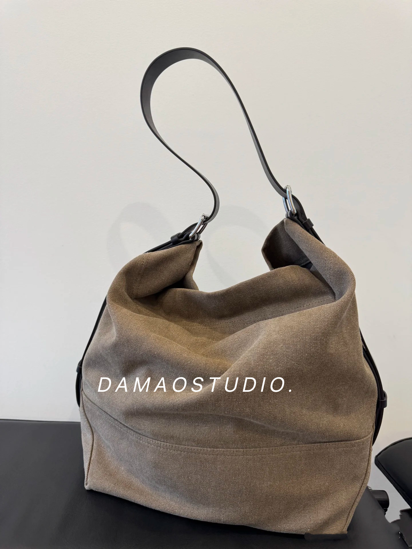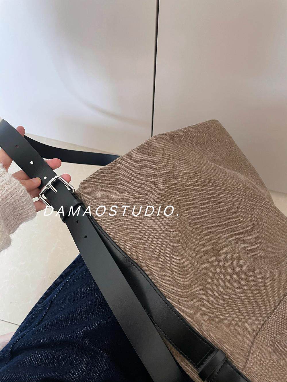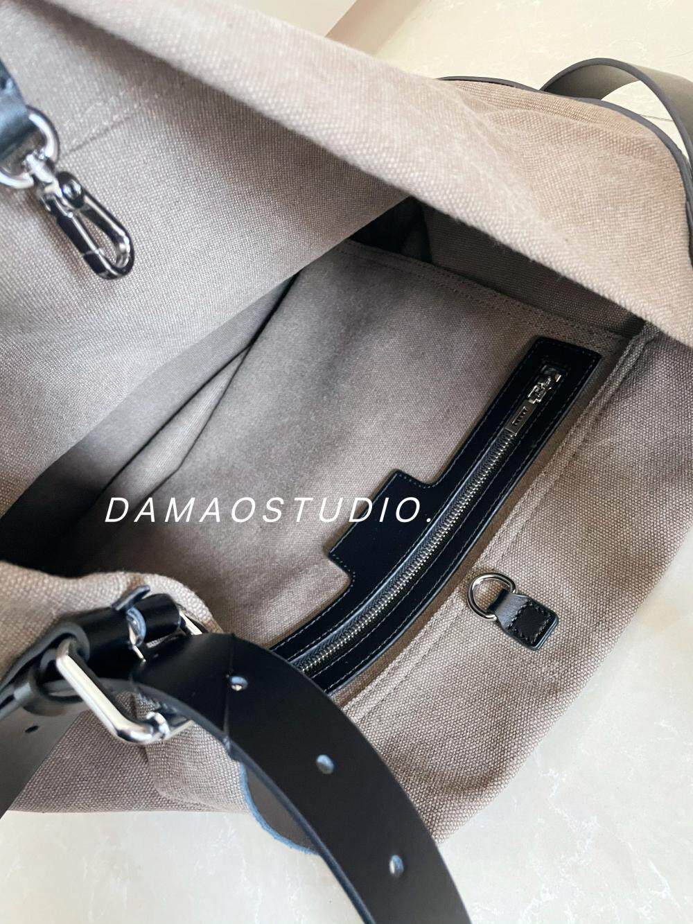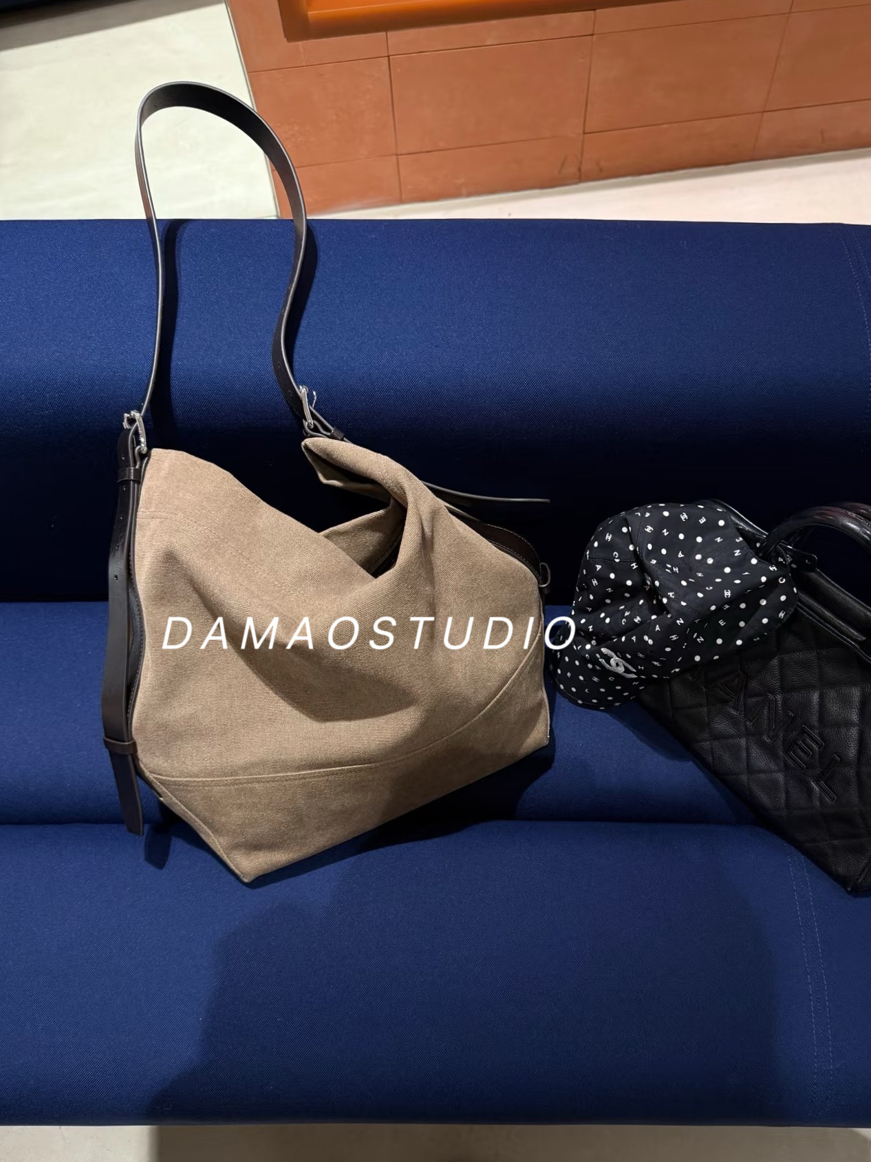 DAMAOSTUDIO潮jennie同款真牛皮拼接帆布慵懶風水桶大容量托特包