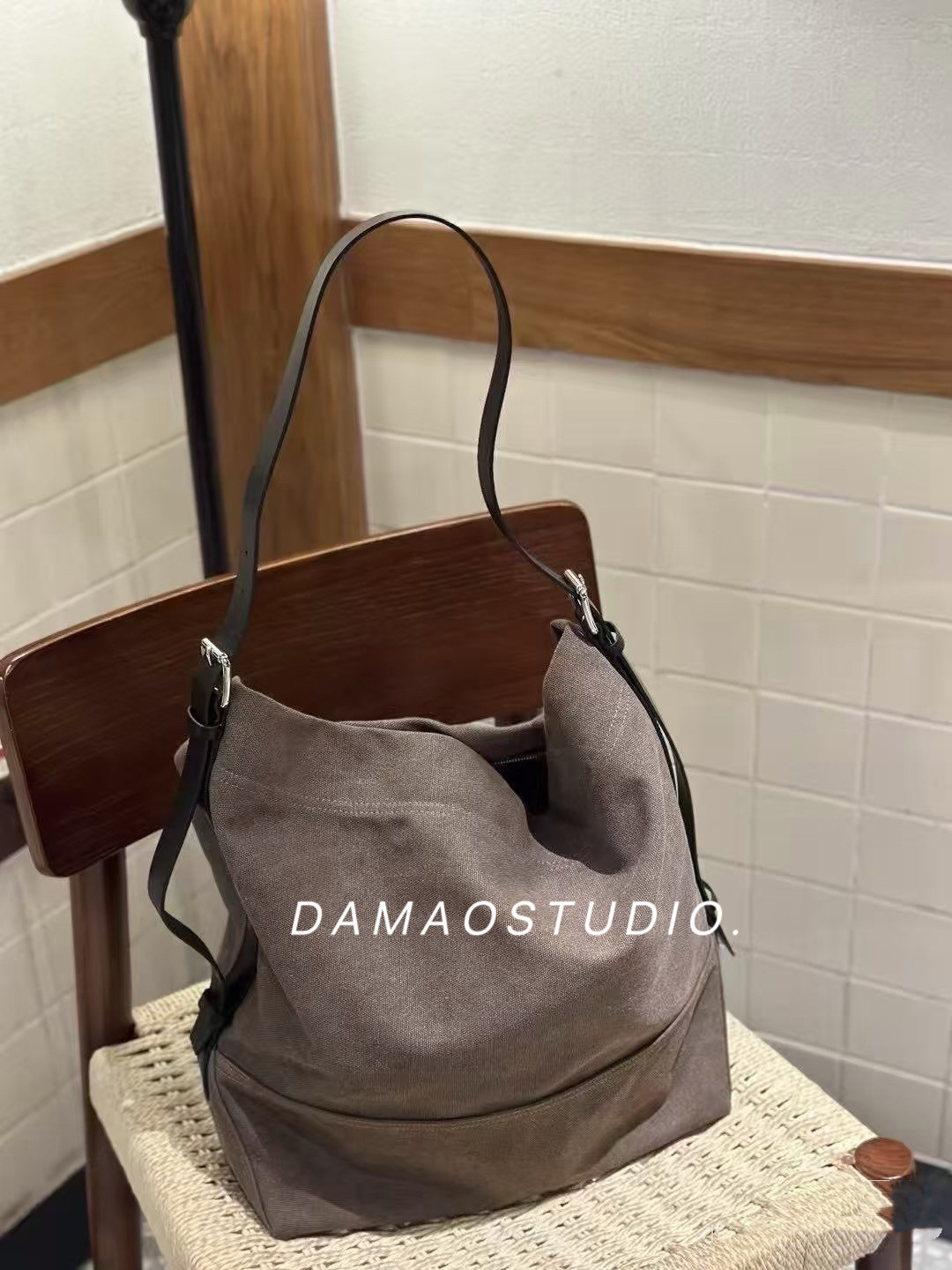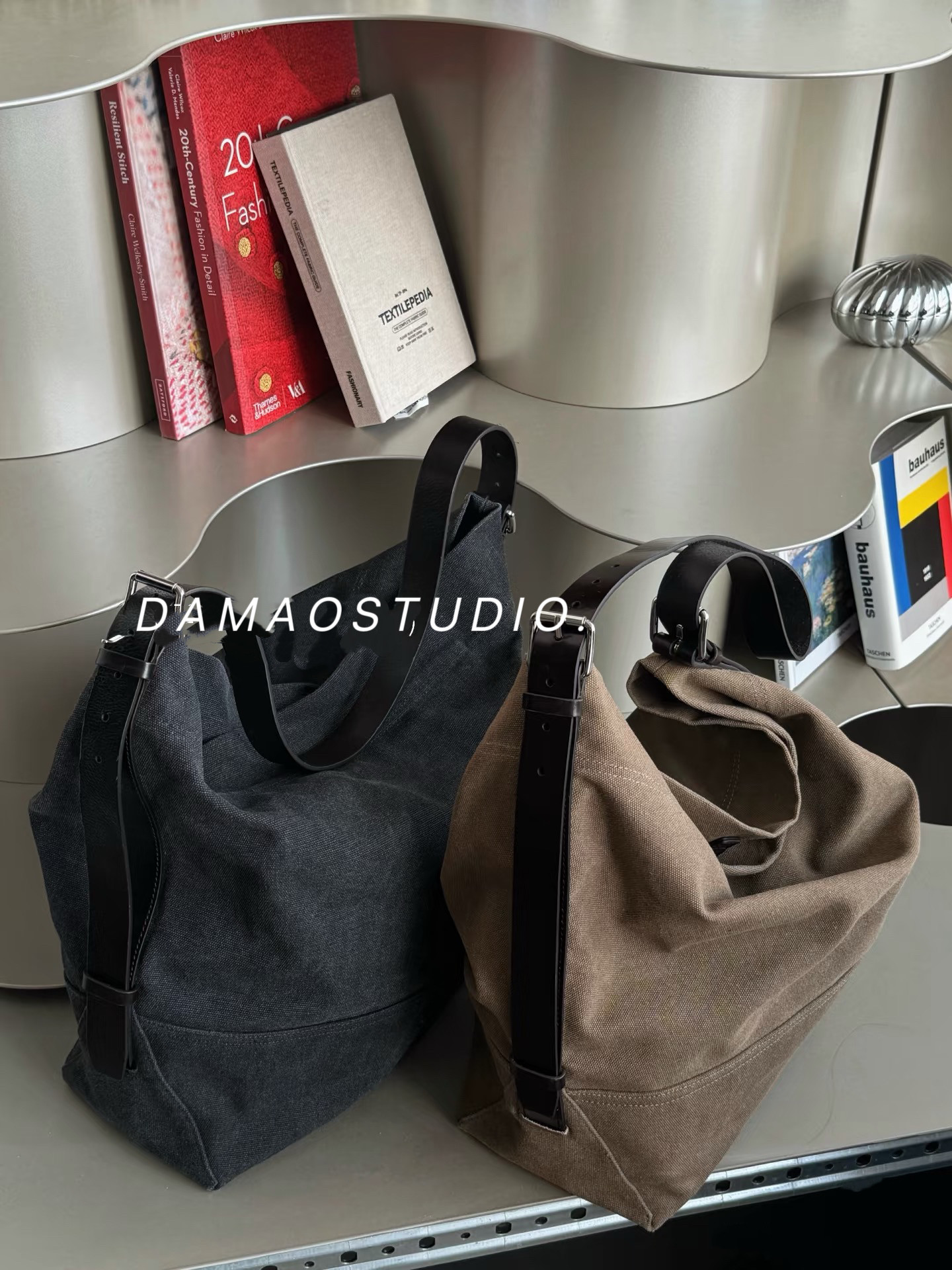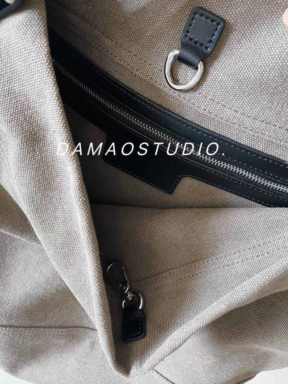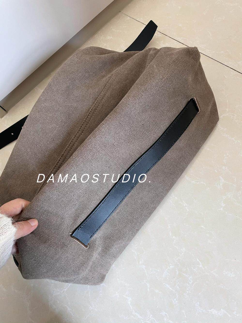 DAMAOSTUDIO潮jennie同款真牛皮拼接帆布慵懶風水桶大容量托特包