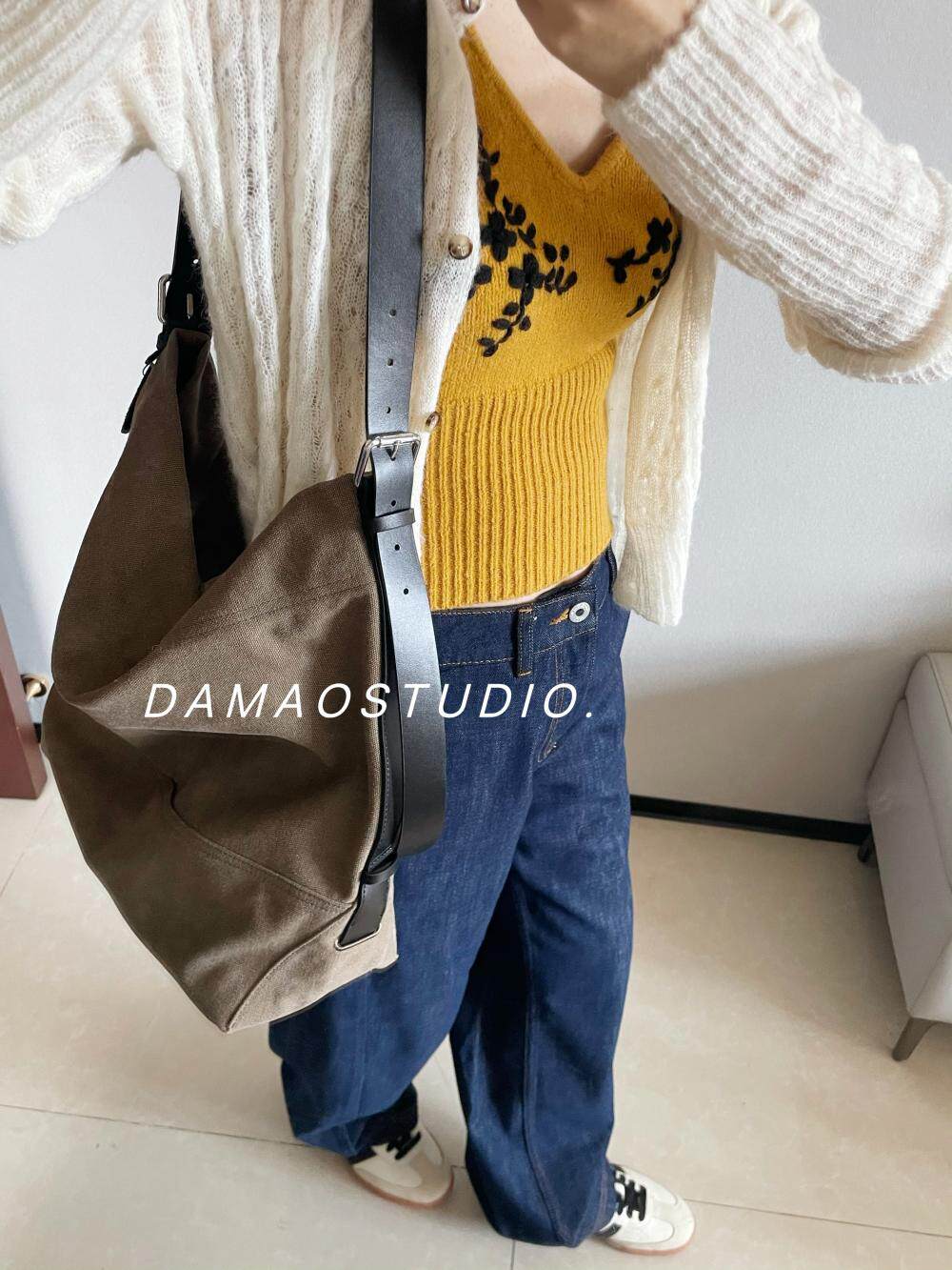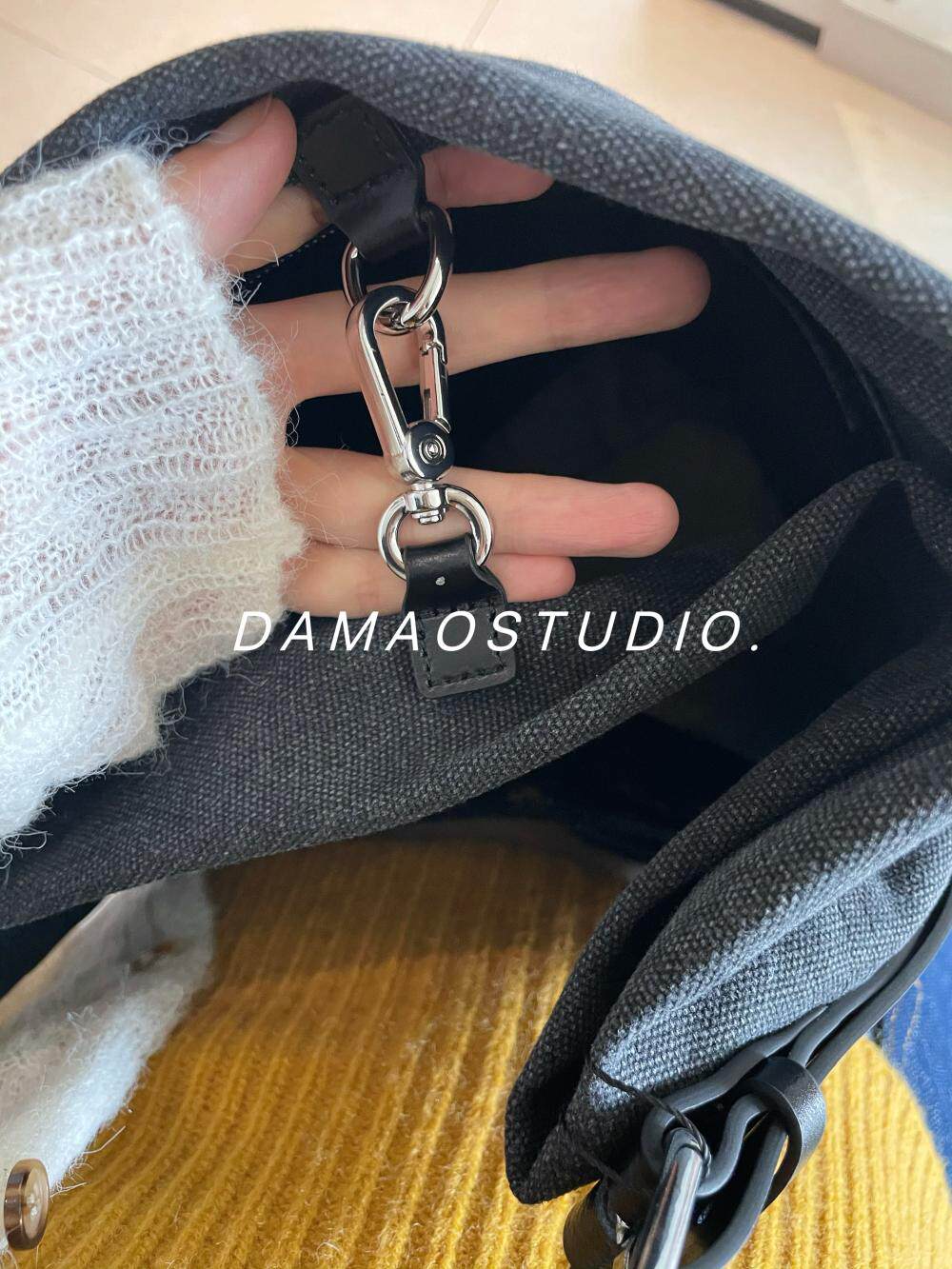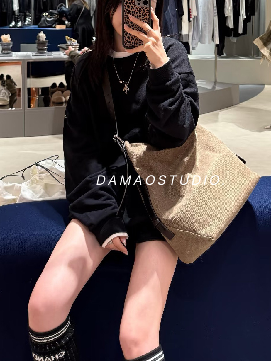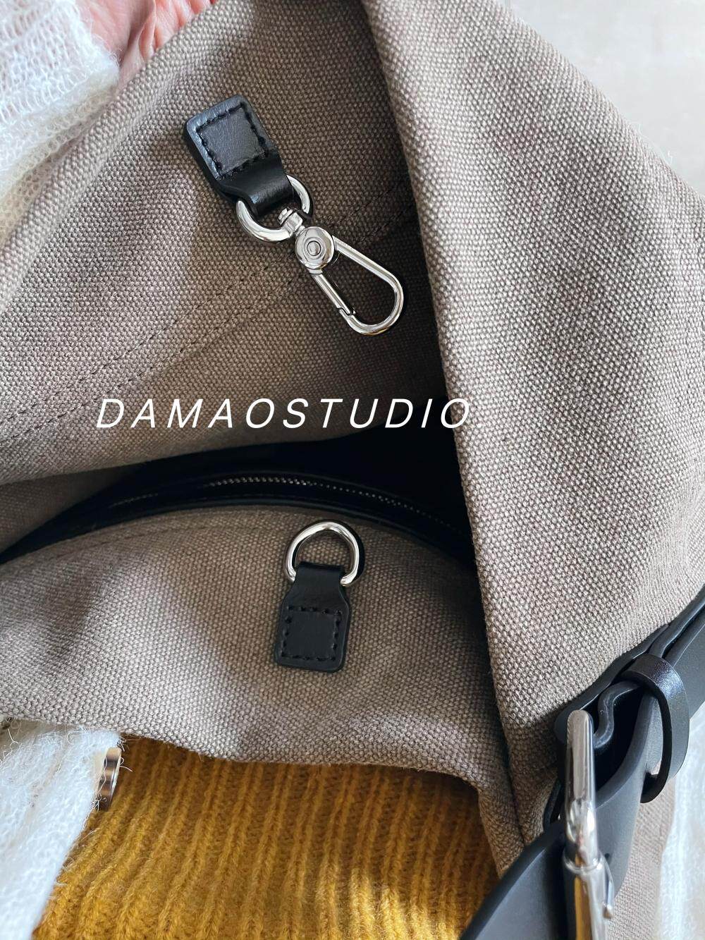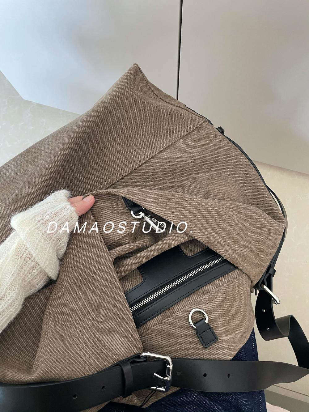 DAMAOSTUDIO潮jennie同款真牛皮拼接帆布慵懶風水桶大容量托特包