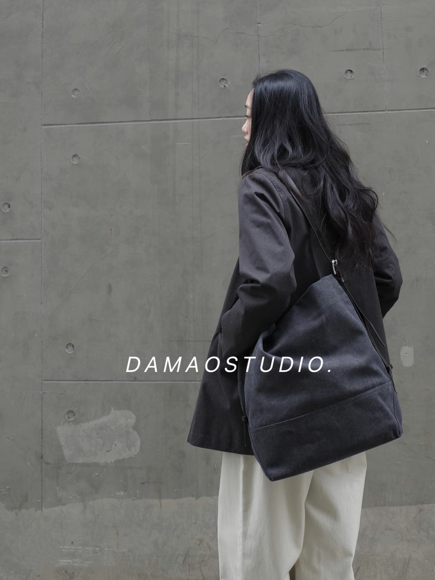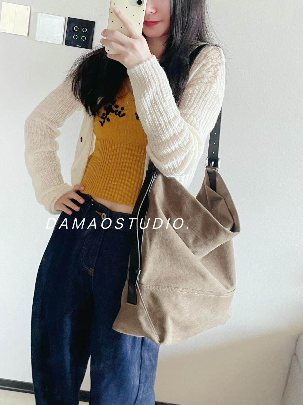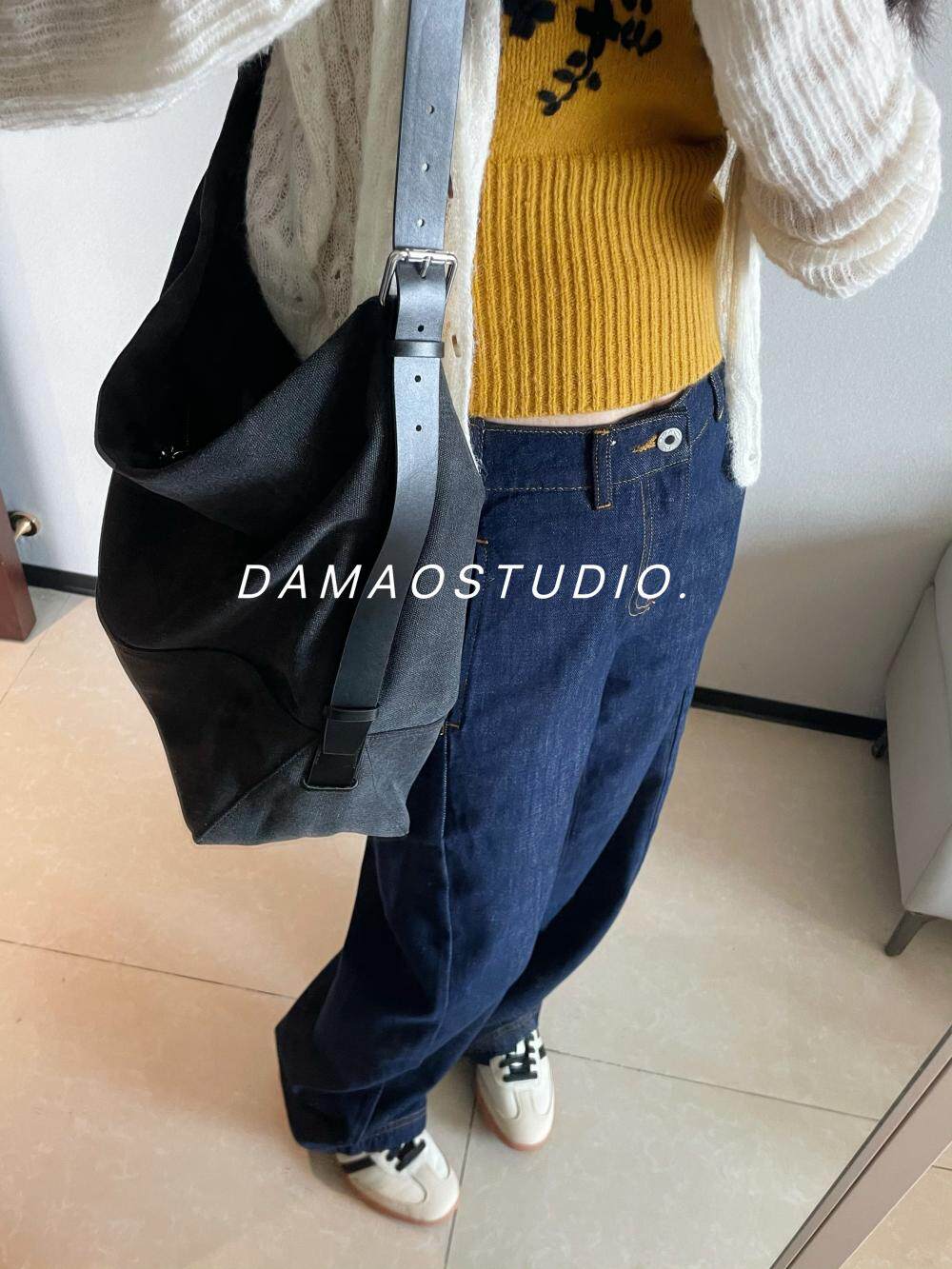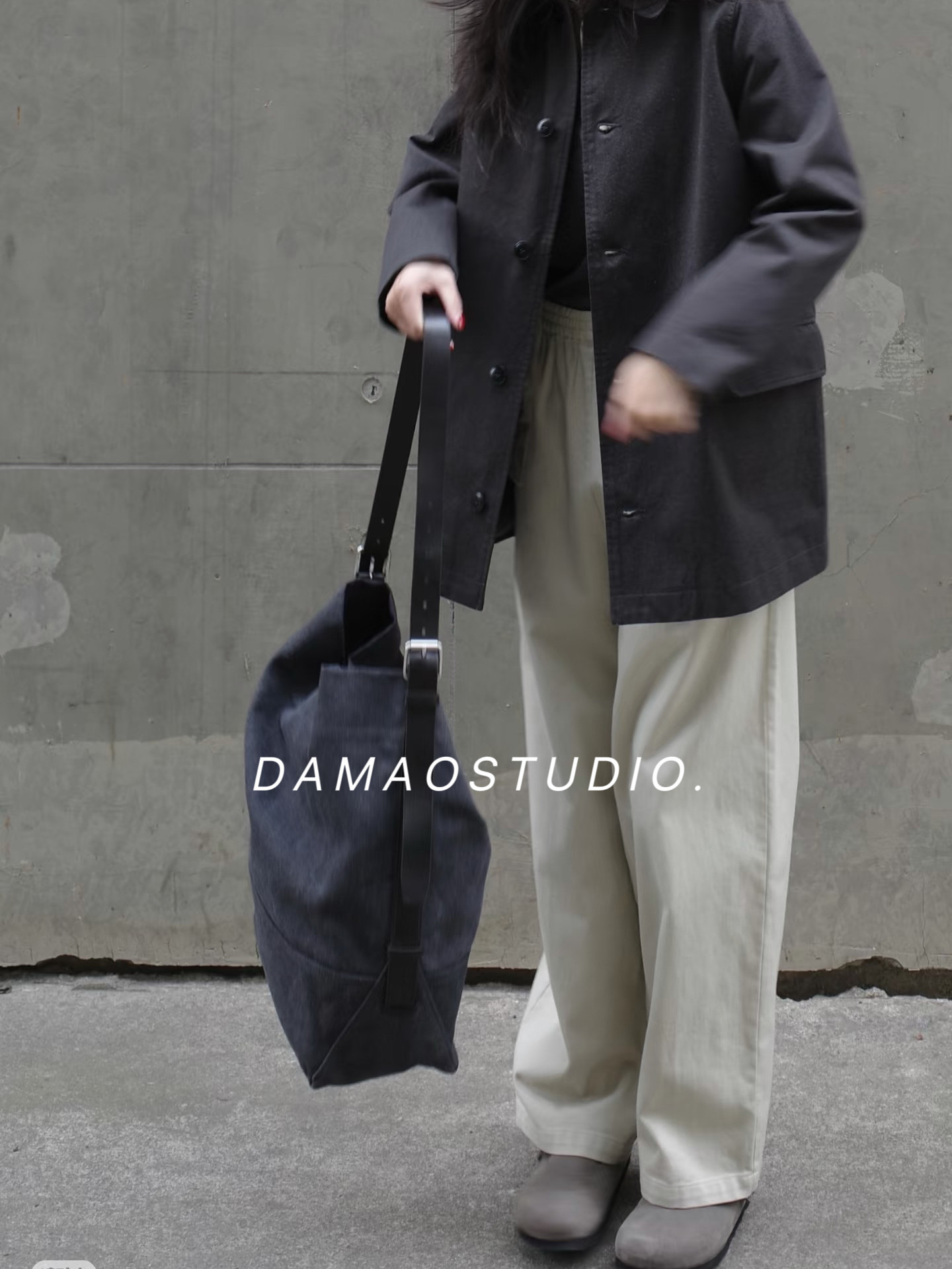 DAMAOSTUDIO潮jennie同款真牛皮拼接帆布慵懶風水桶大容量托特包