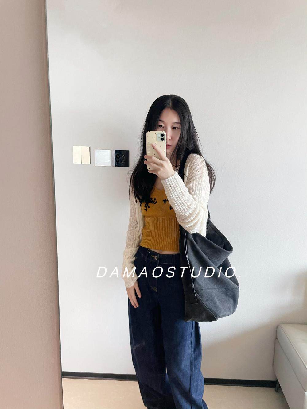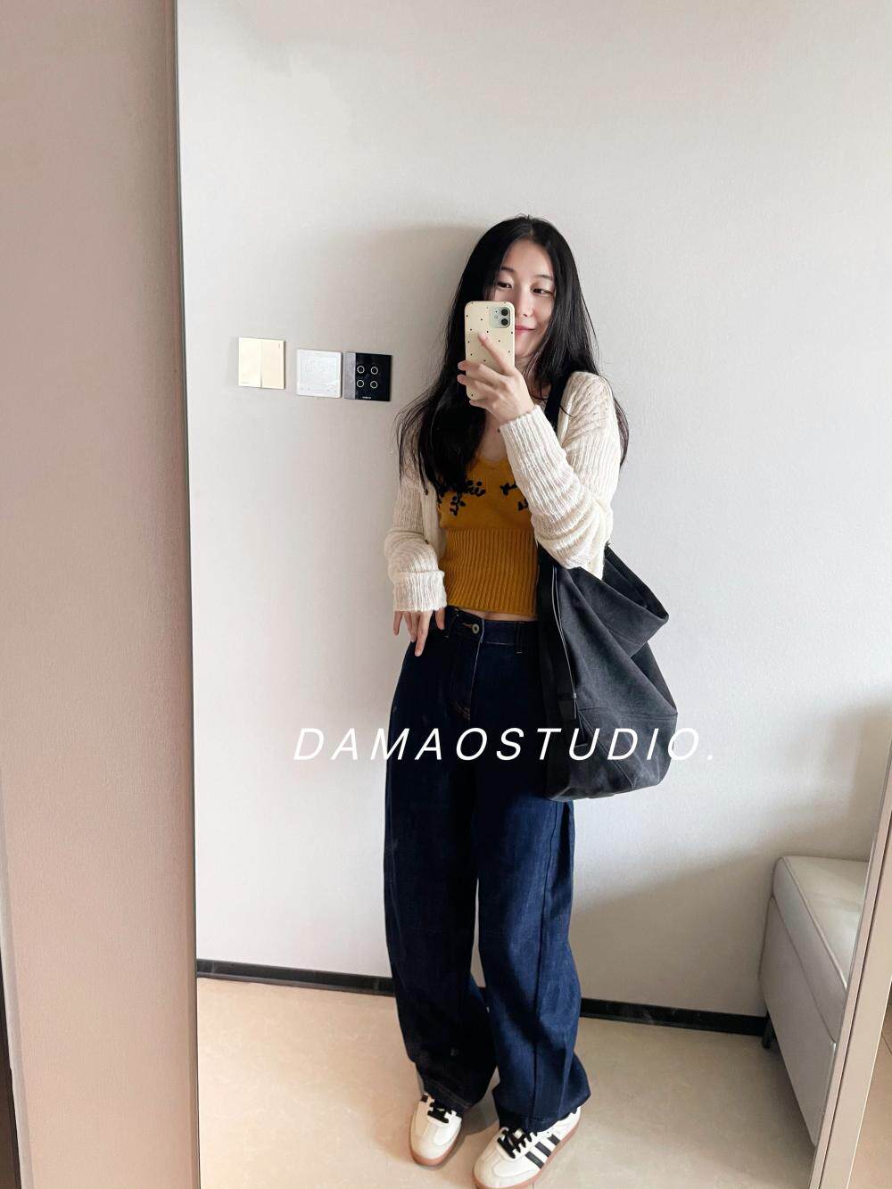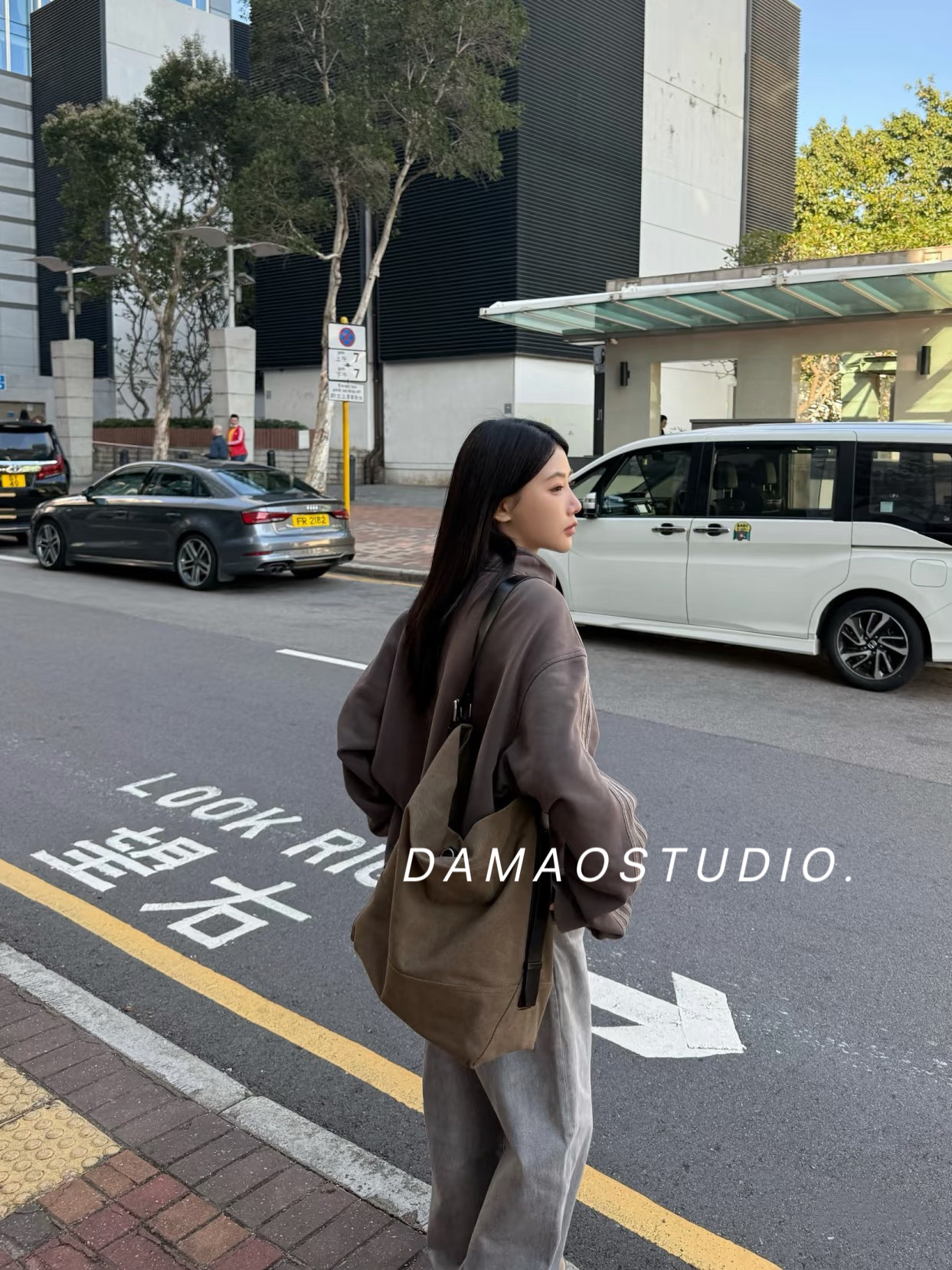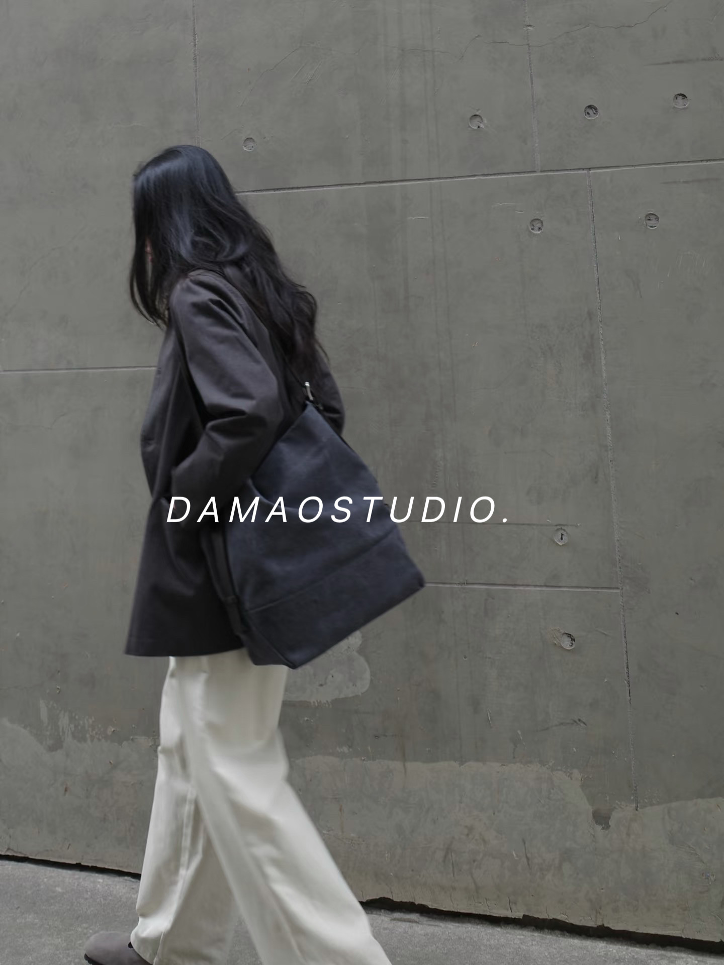 DAMAOSTUDIO潮jennie同款真牛皮拼接帆布慵懶風水桶大容量托特包