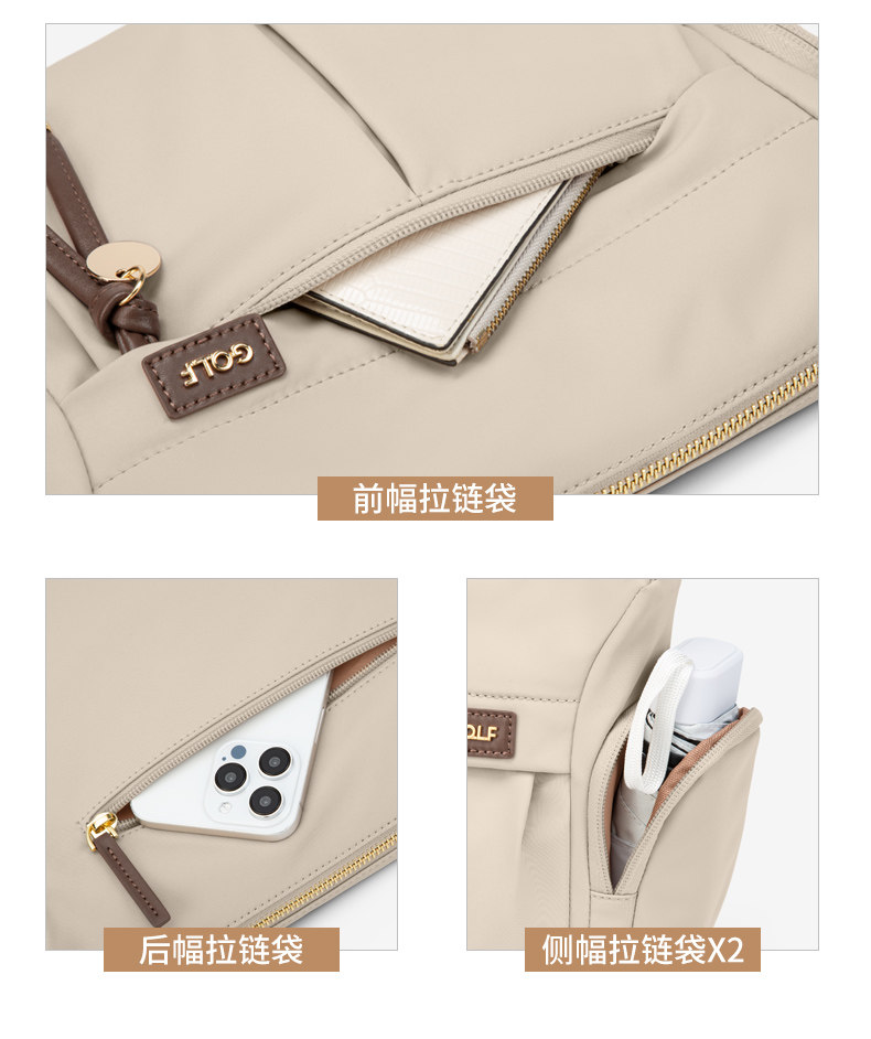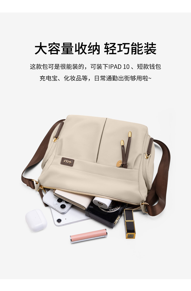 GOLF/高爾夫女士斜後後背包2026新款時尚休閒帆布包單肩中年媽媽包
