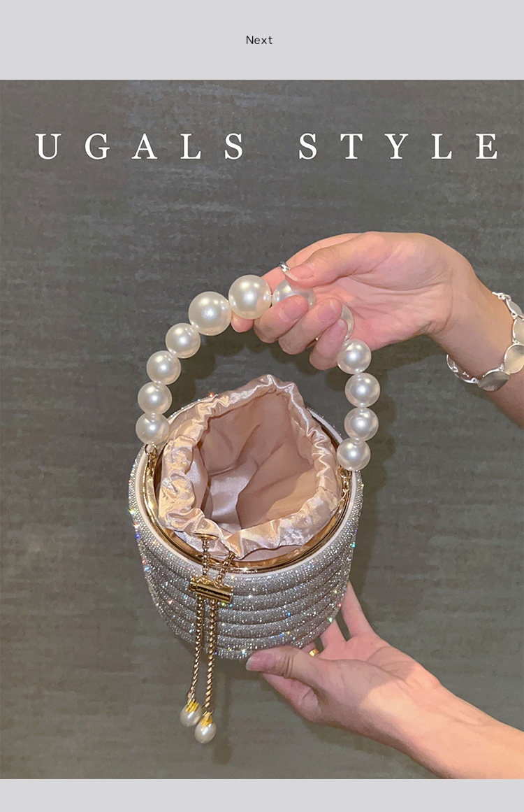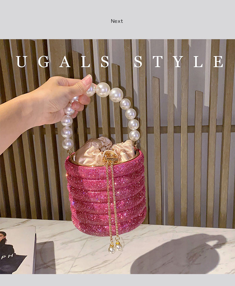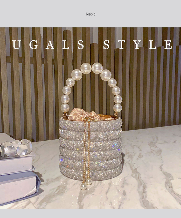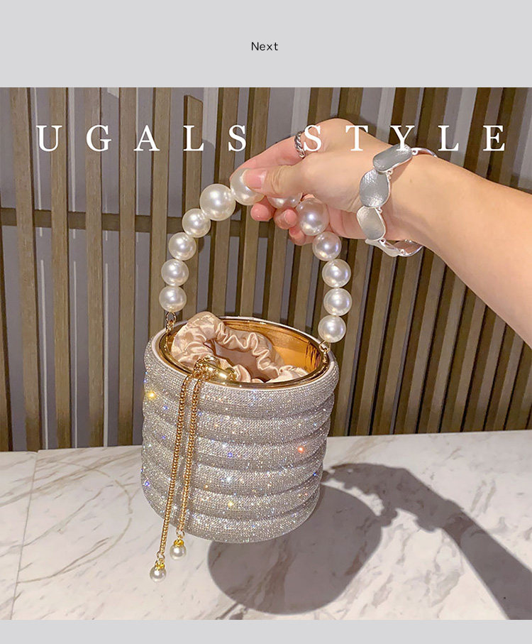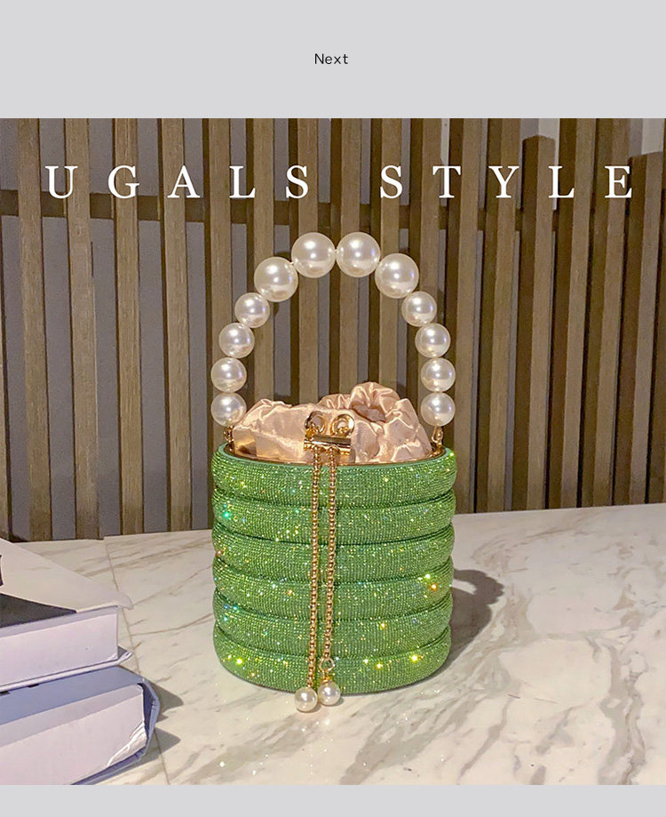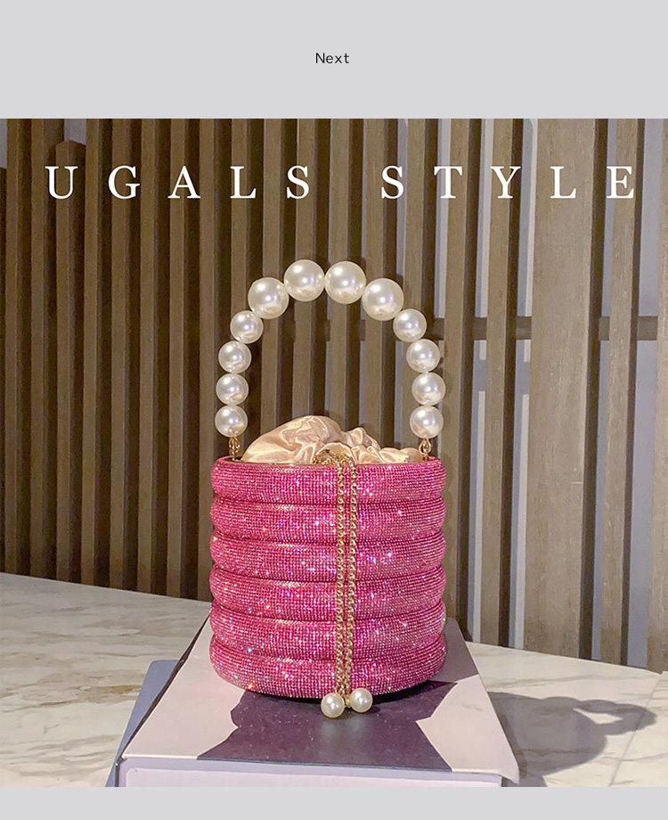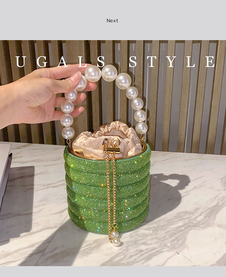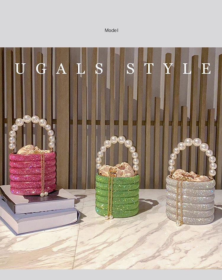 UGALS名媛仙女珍珠閃亮不靈水鑽石圓桶宴會水桶手機包手拿斜後後背包