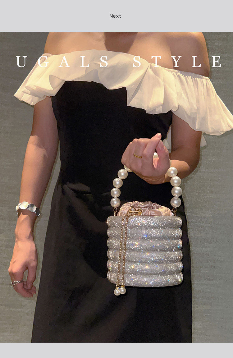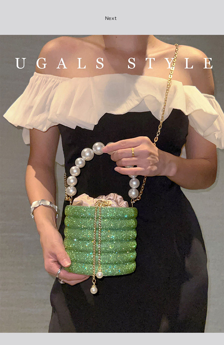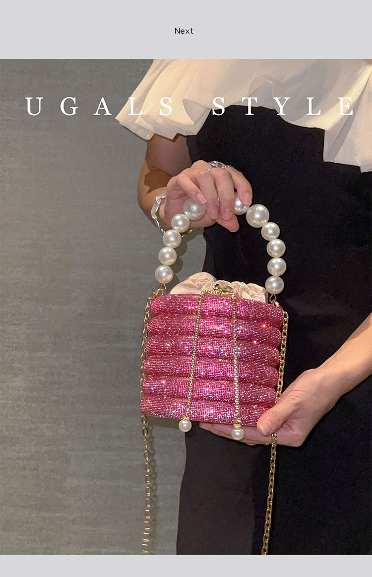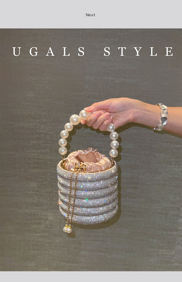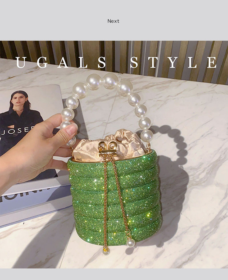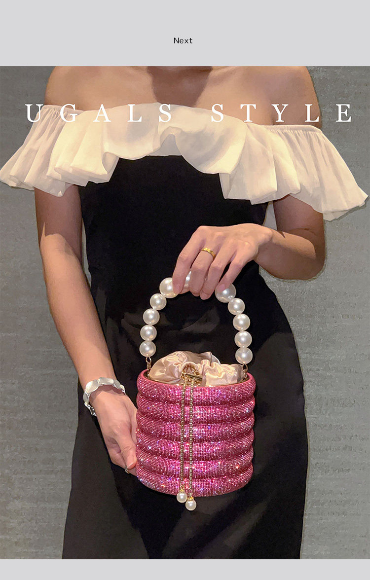 UGALS名媛仙女珍珠閃亮不靈水鑽石圓桶宴會水桶手機包手拿斜後後背包