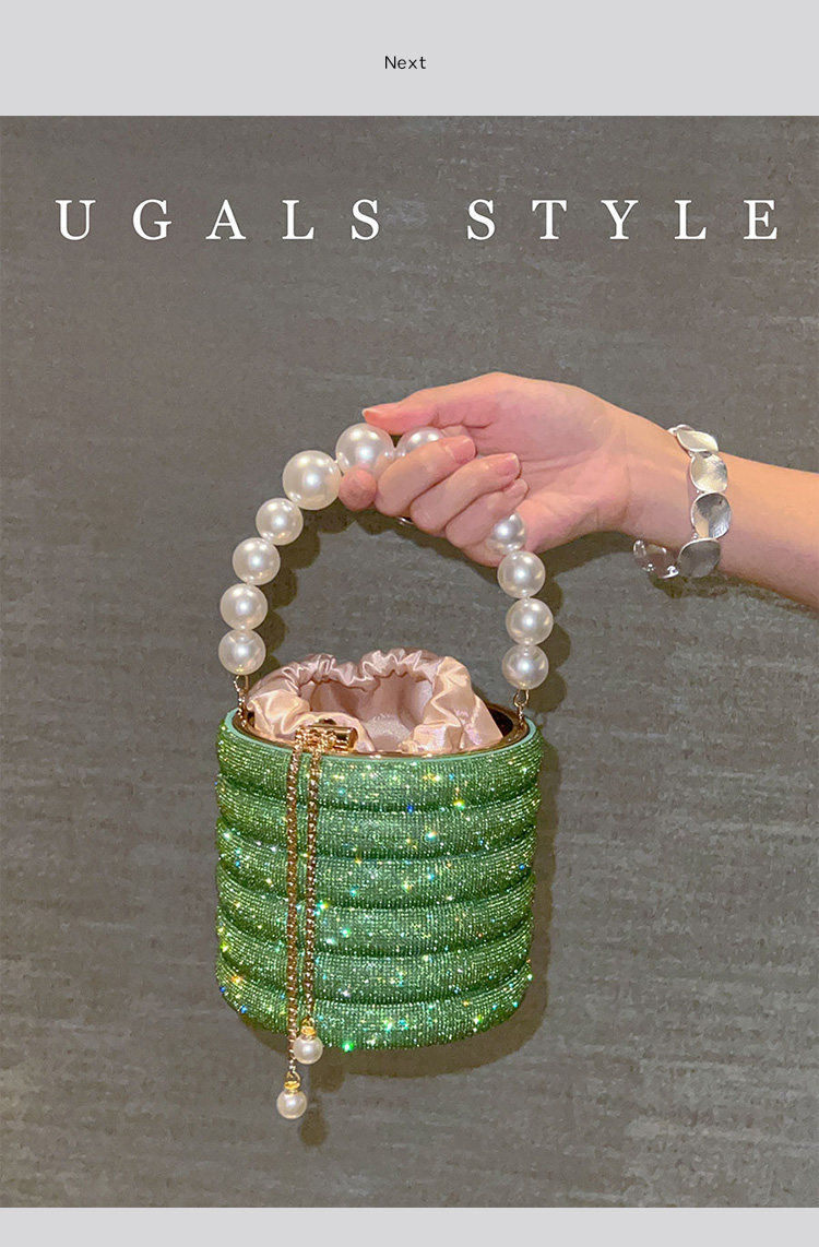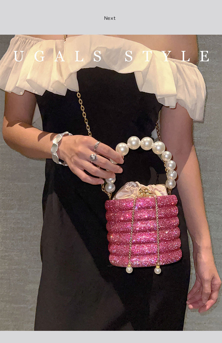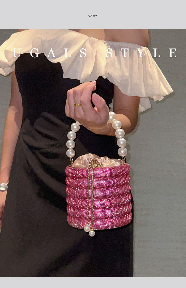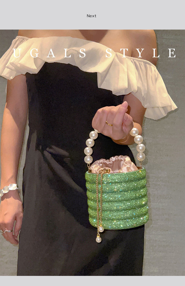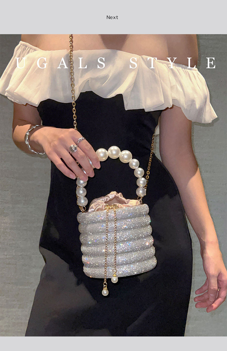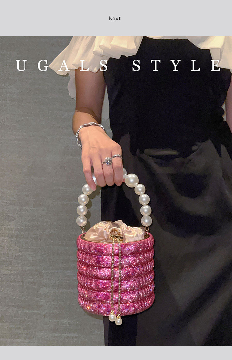 UGALS名媛仙女珍珠閃亮不靈水鑽石圓桶宴會水桶手機包手拿斜後後背包