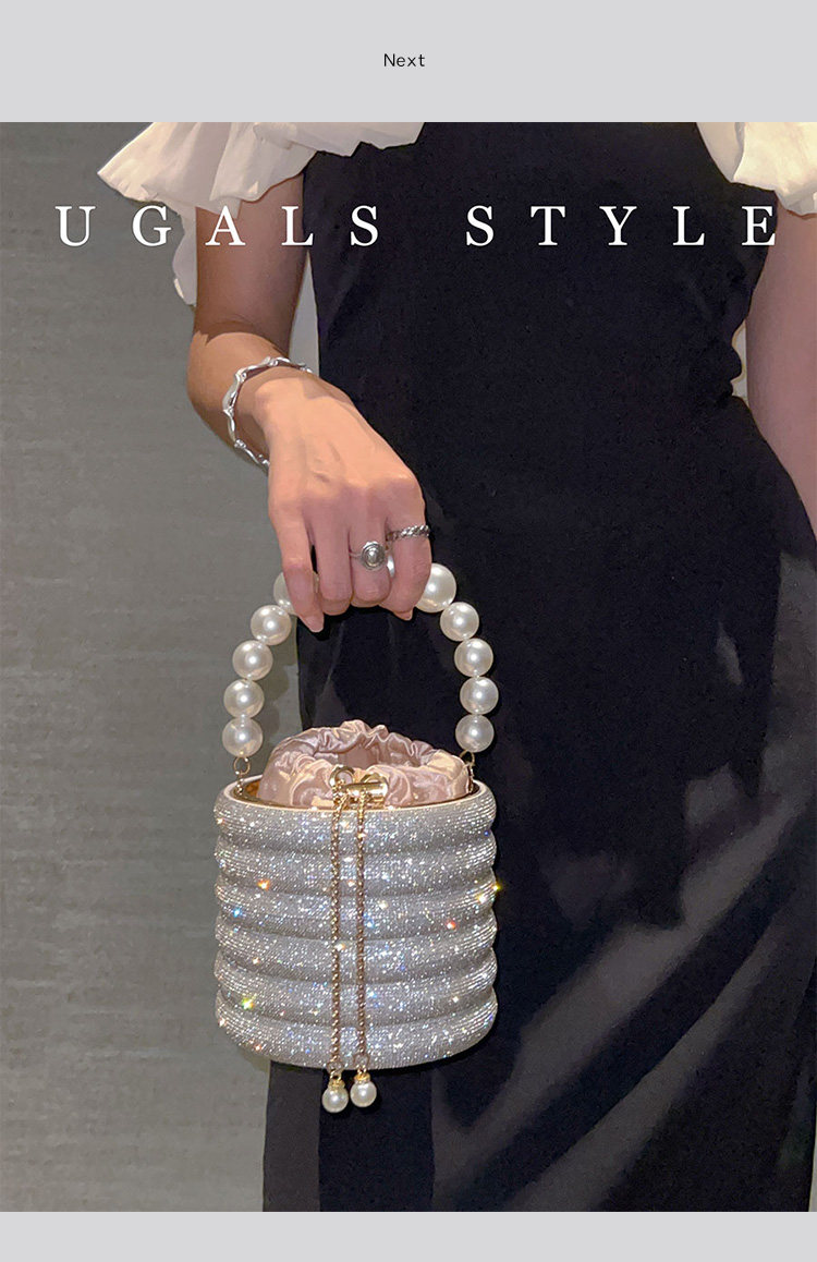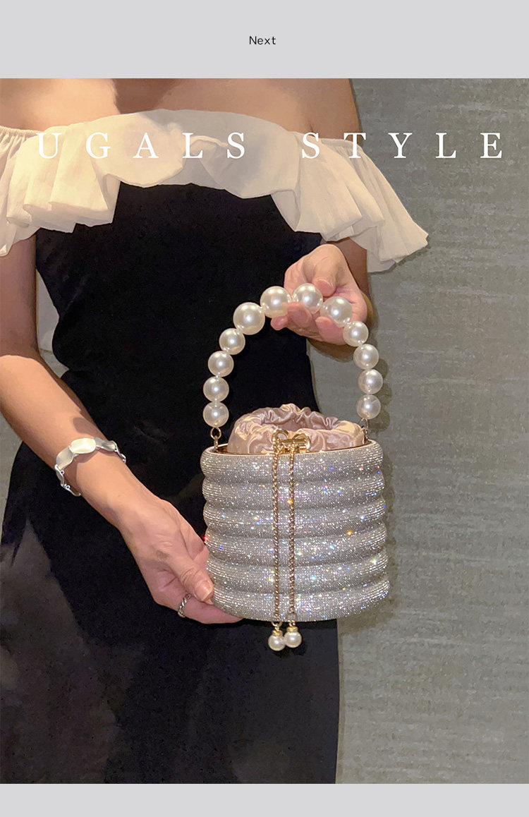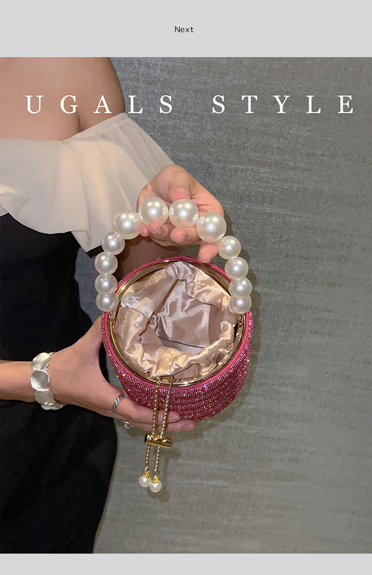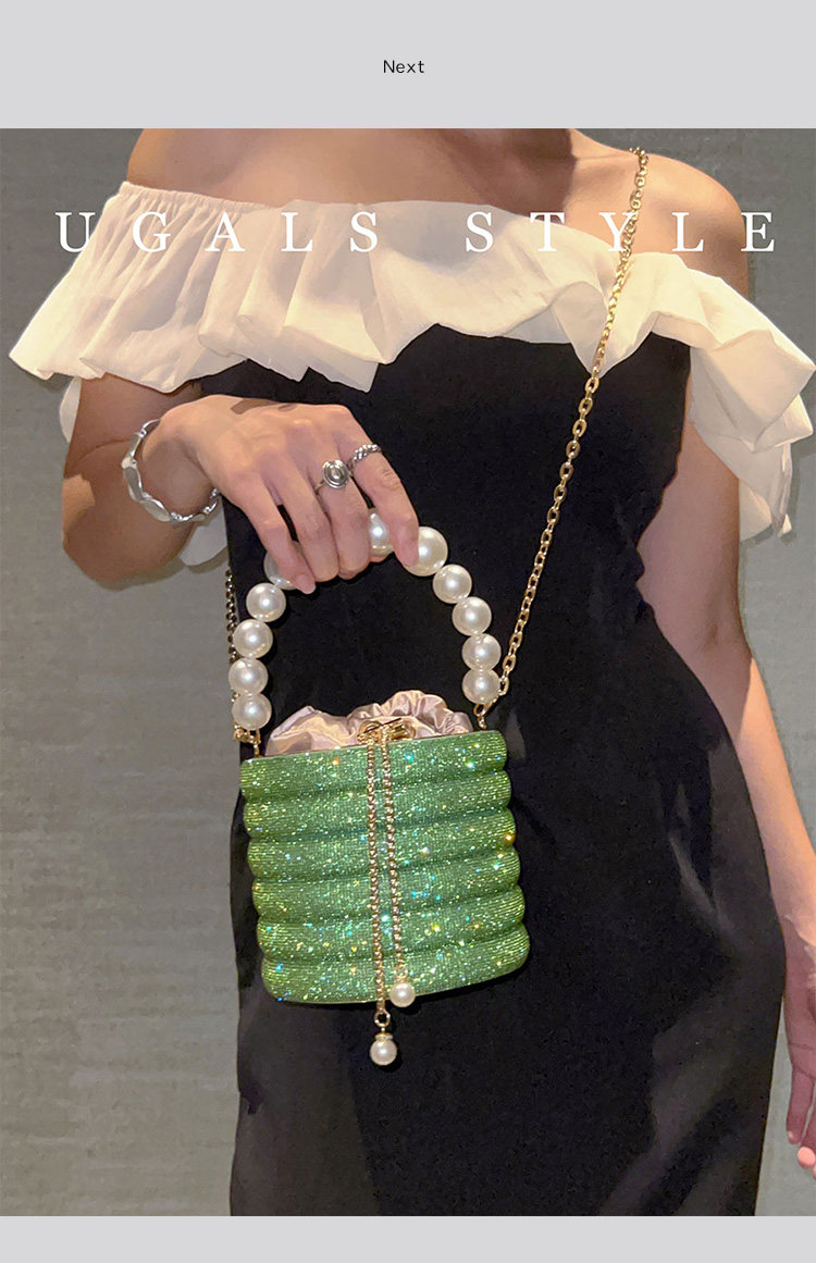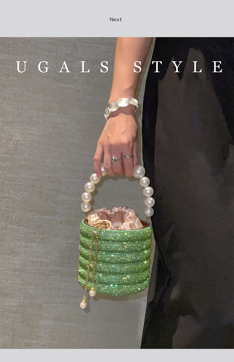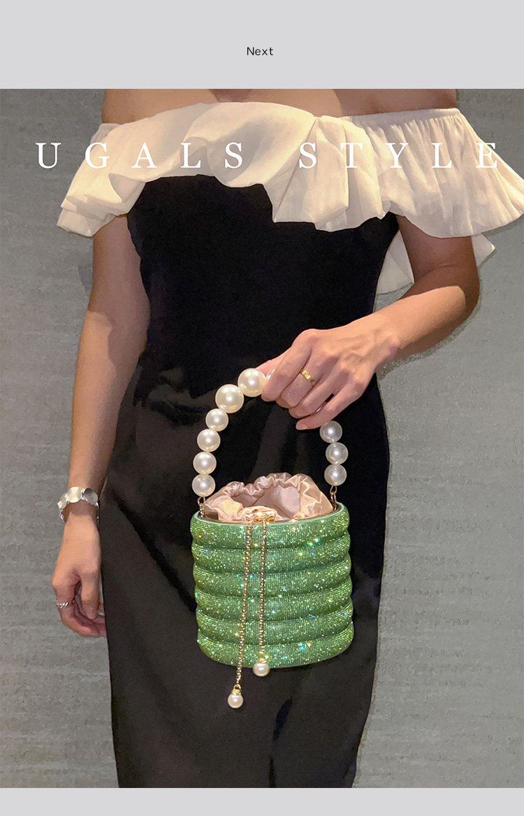 UGALS名媛仙女珍珠閃亮不靈水鑽石圓桶宴會水桶手機包手拿斜後後背包