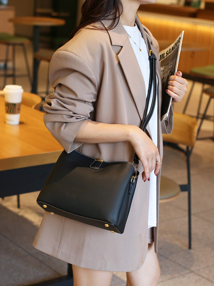 大容量包包女2026新款高級感百搭多隔層通勤方形真皮水桶包斜後後背包