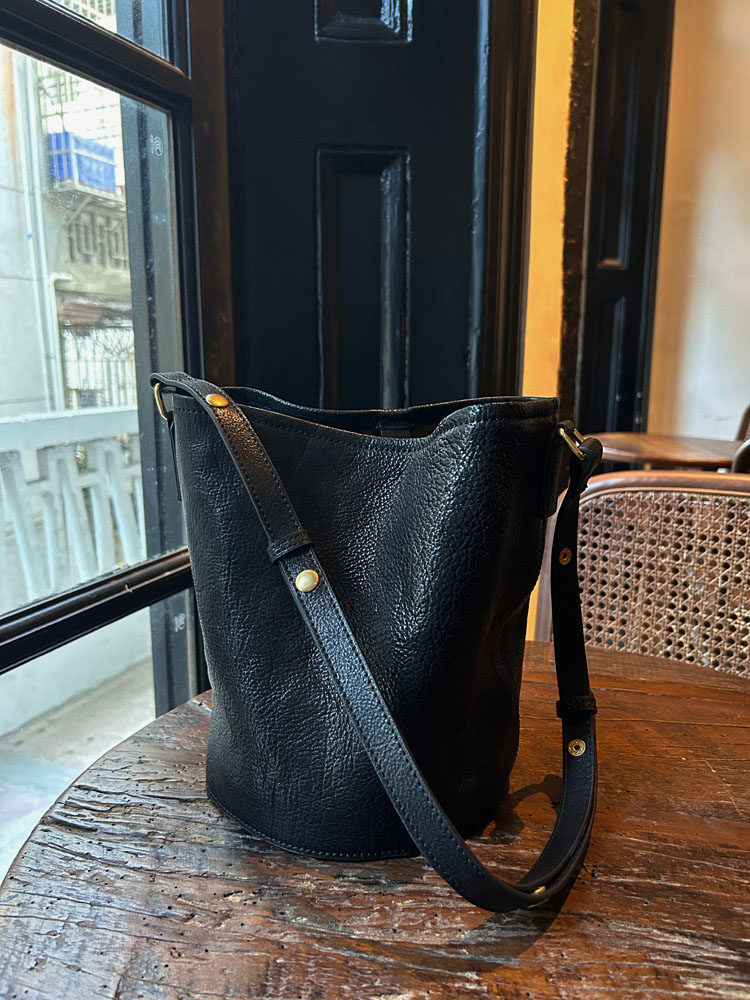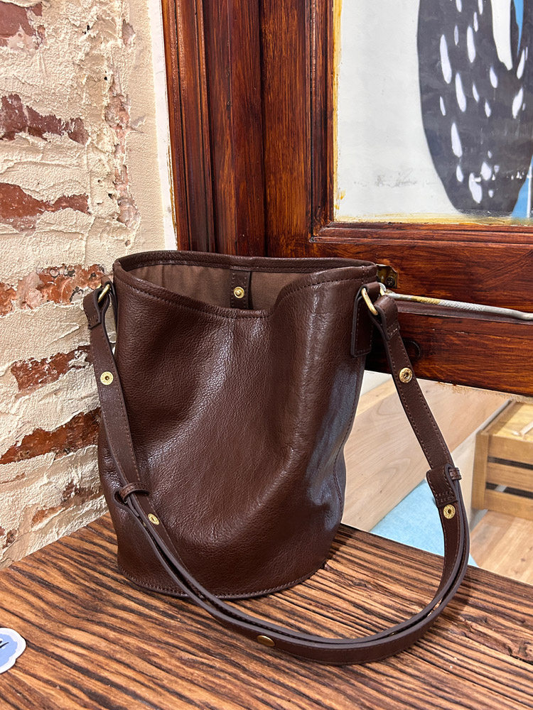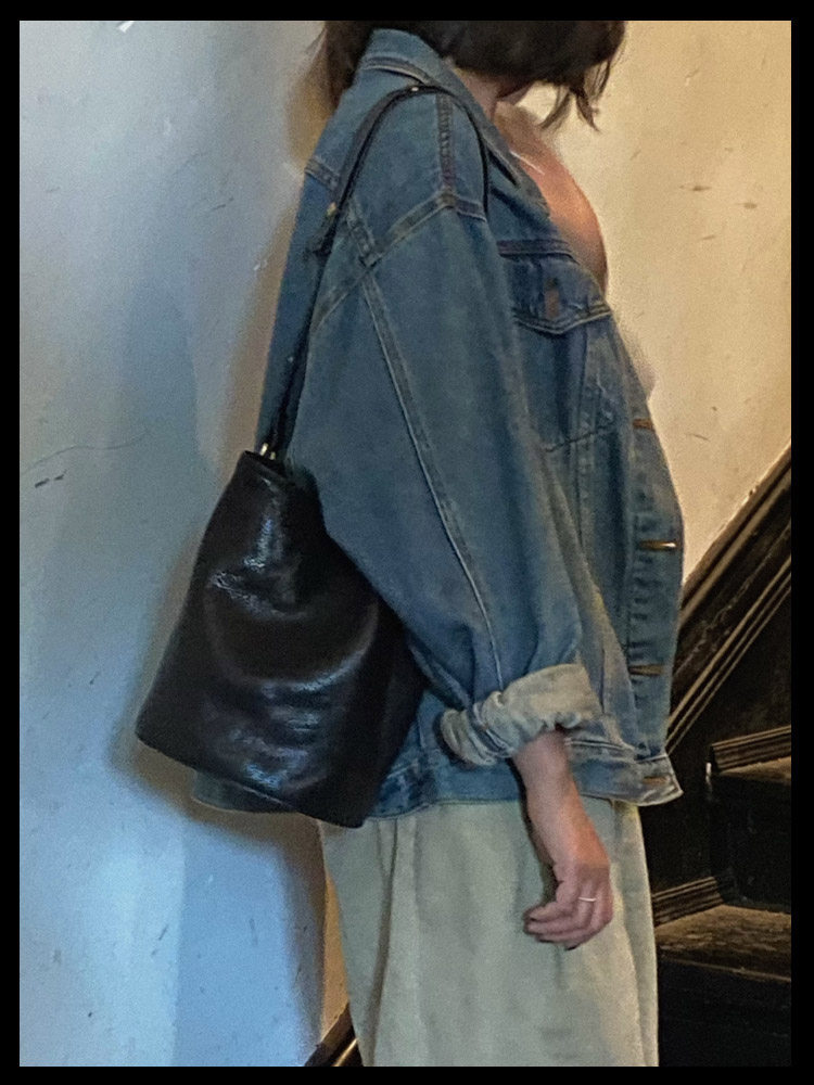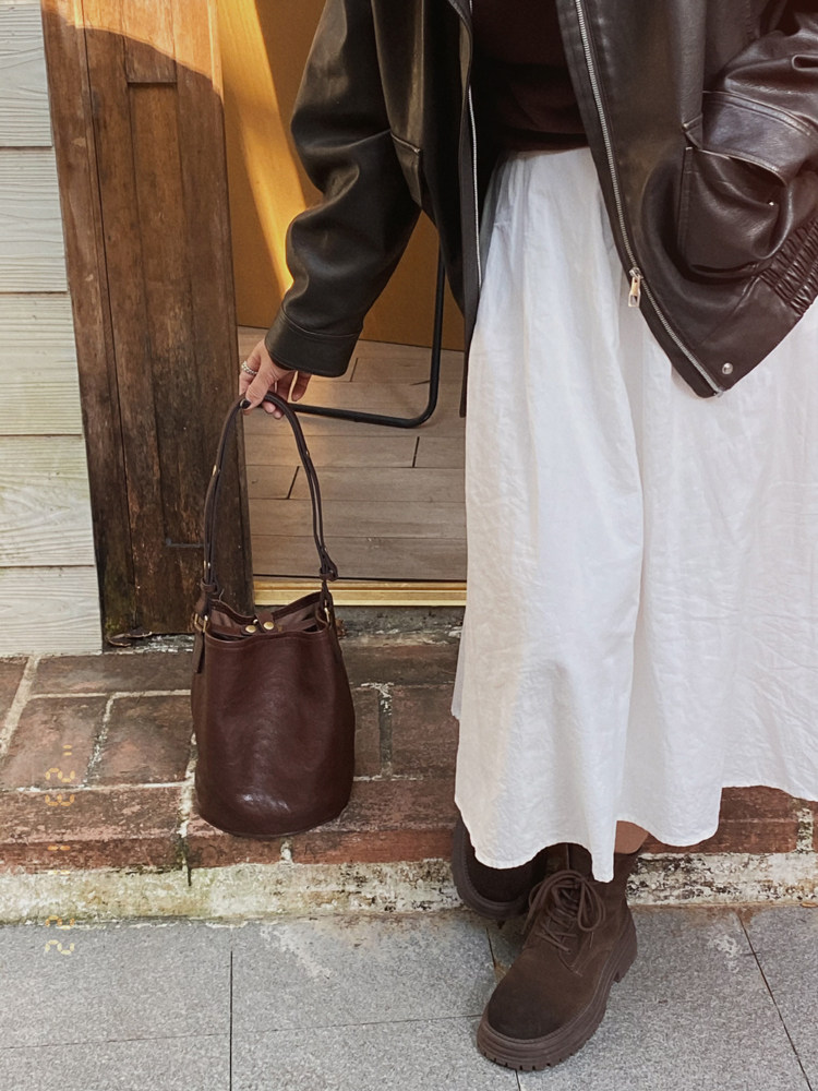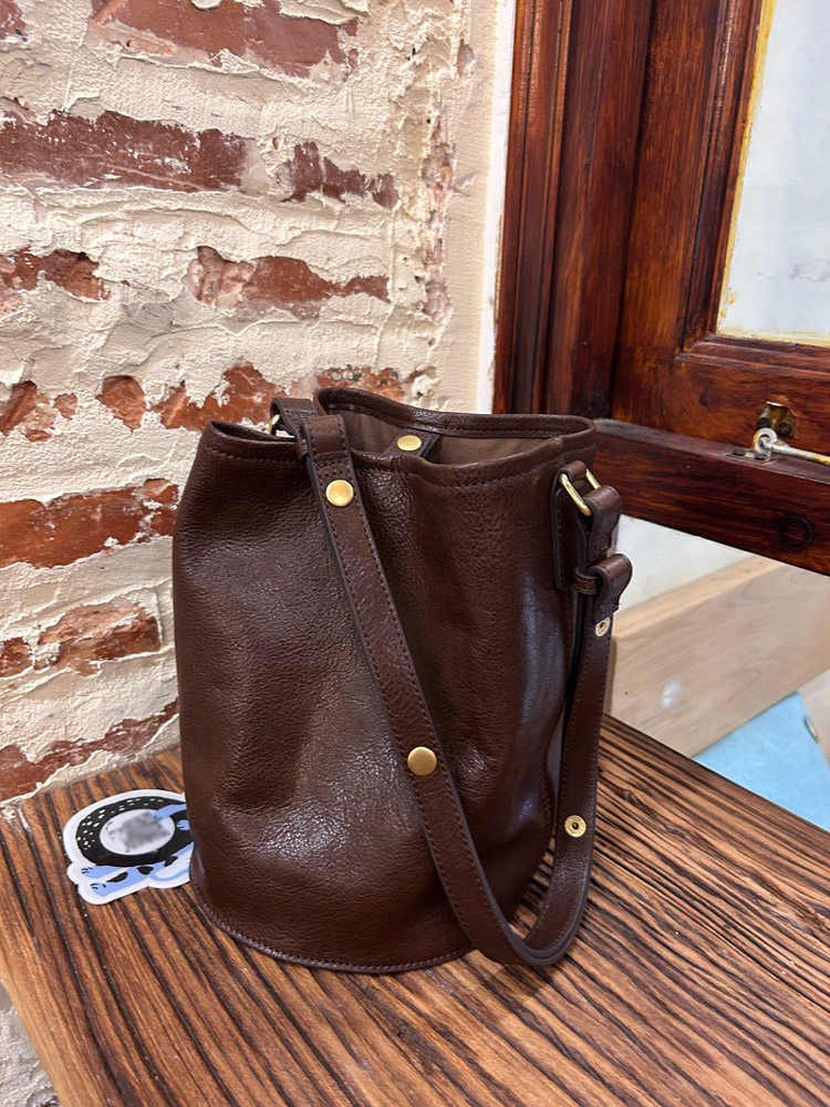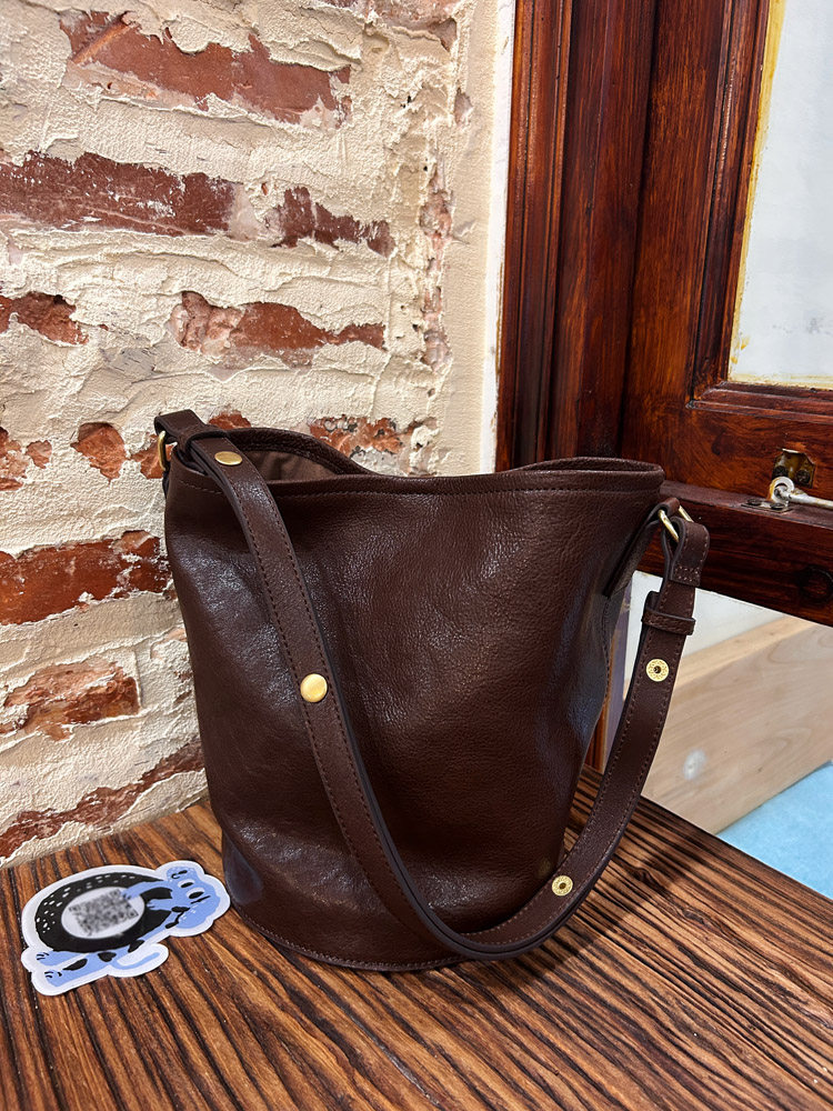 復古文藝頭層植鞣軟皮水桶托特包小衆通勤高級感大容量腋下斜後後背包
