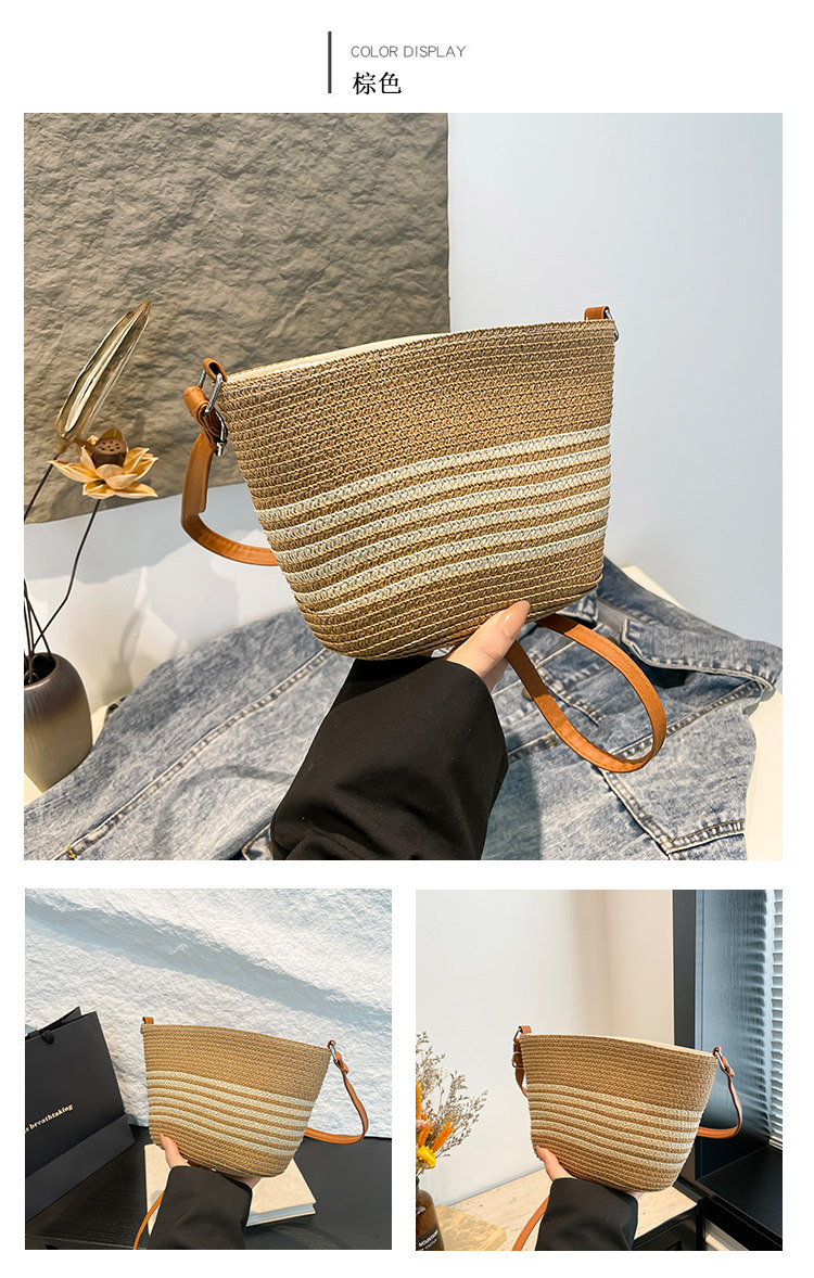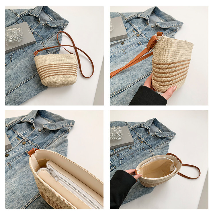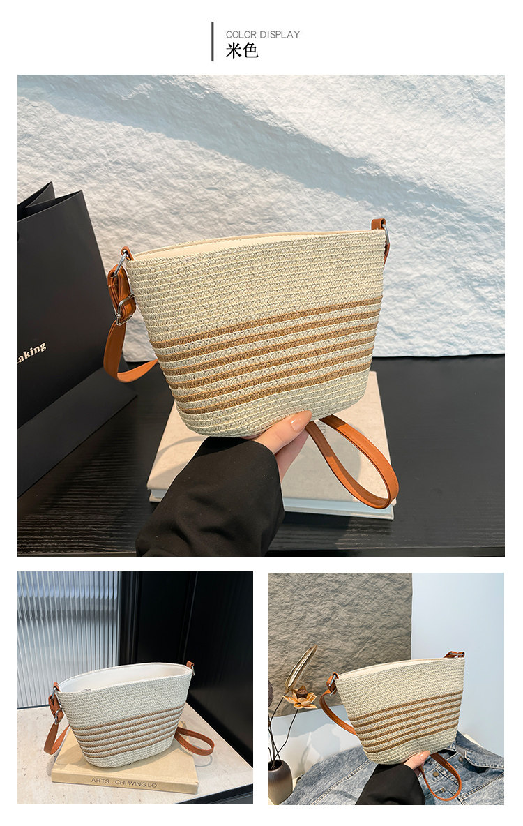 超火小包包女春夏2025新款百搭斜後後背包編織草編包高級感海邊沙灘包