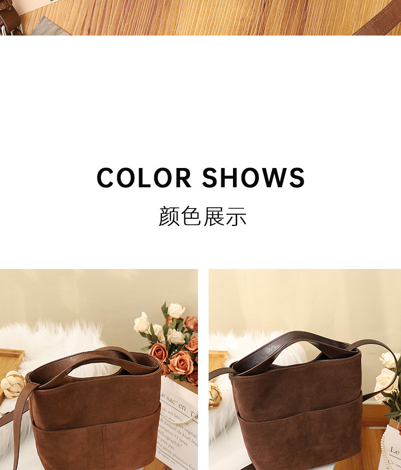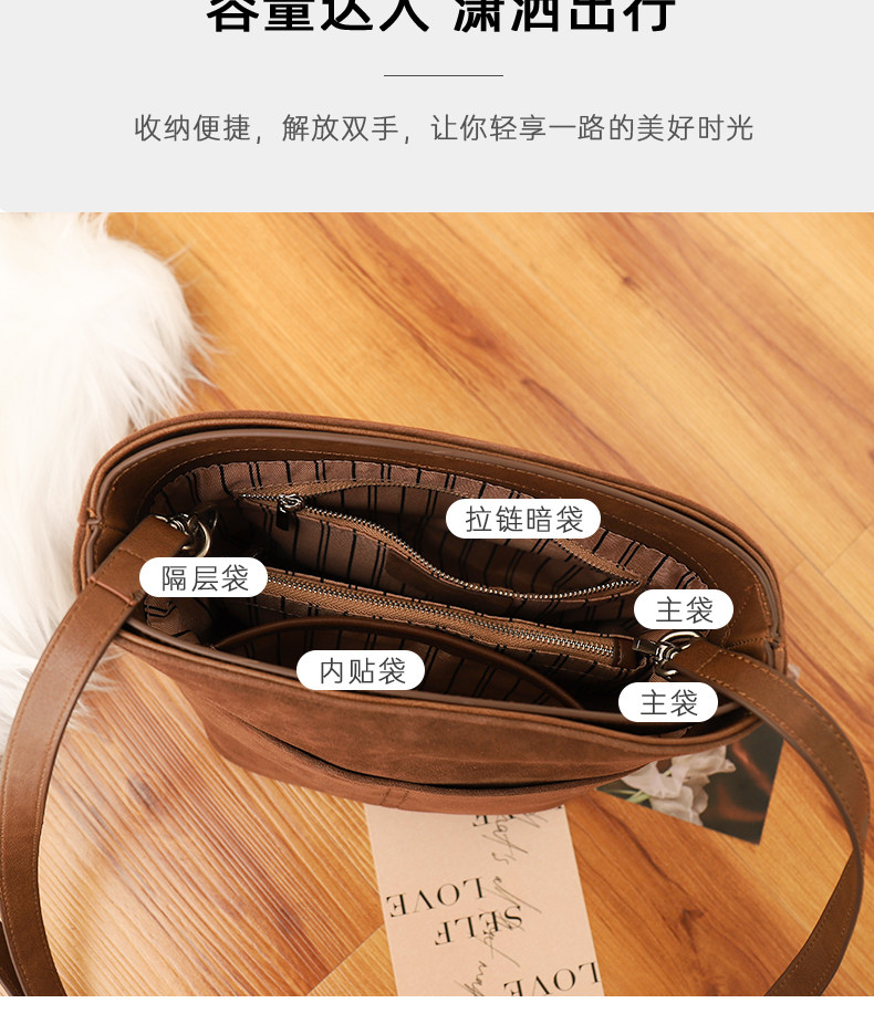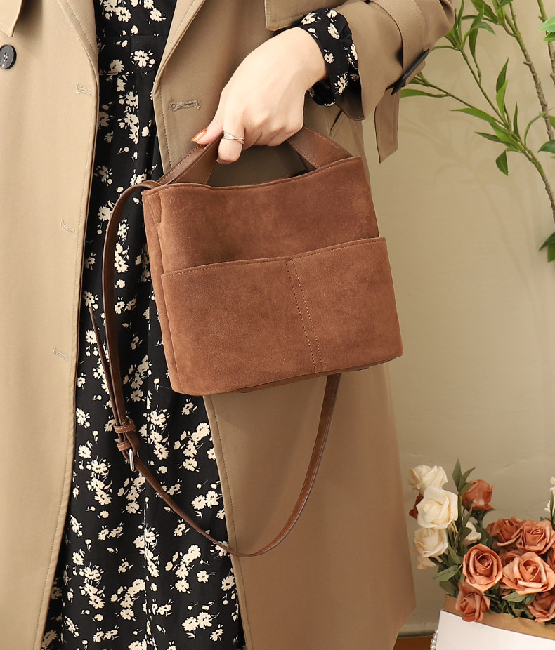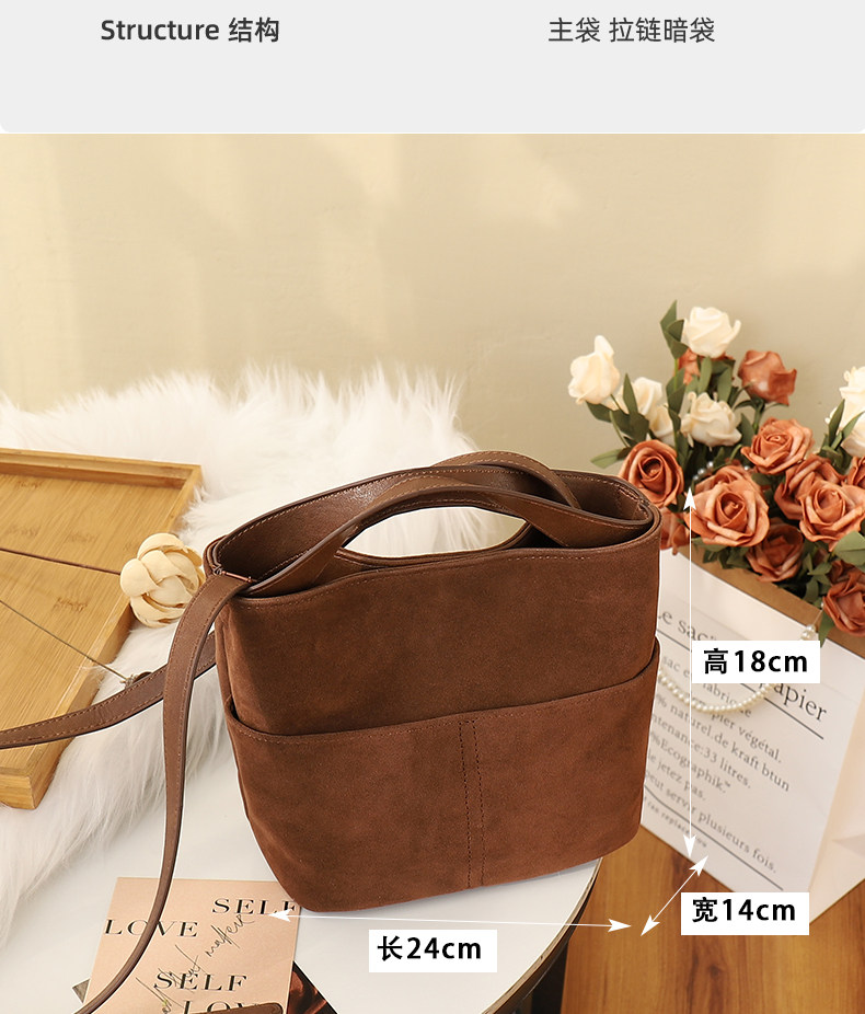 水桶包女2026新款復古美拉德棕軟皮手提包高級感磨砂小衆洋氣小包