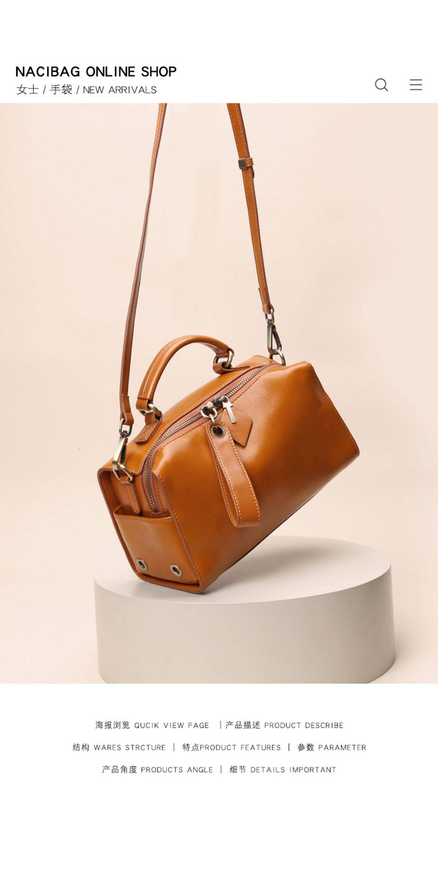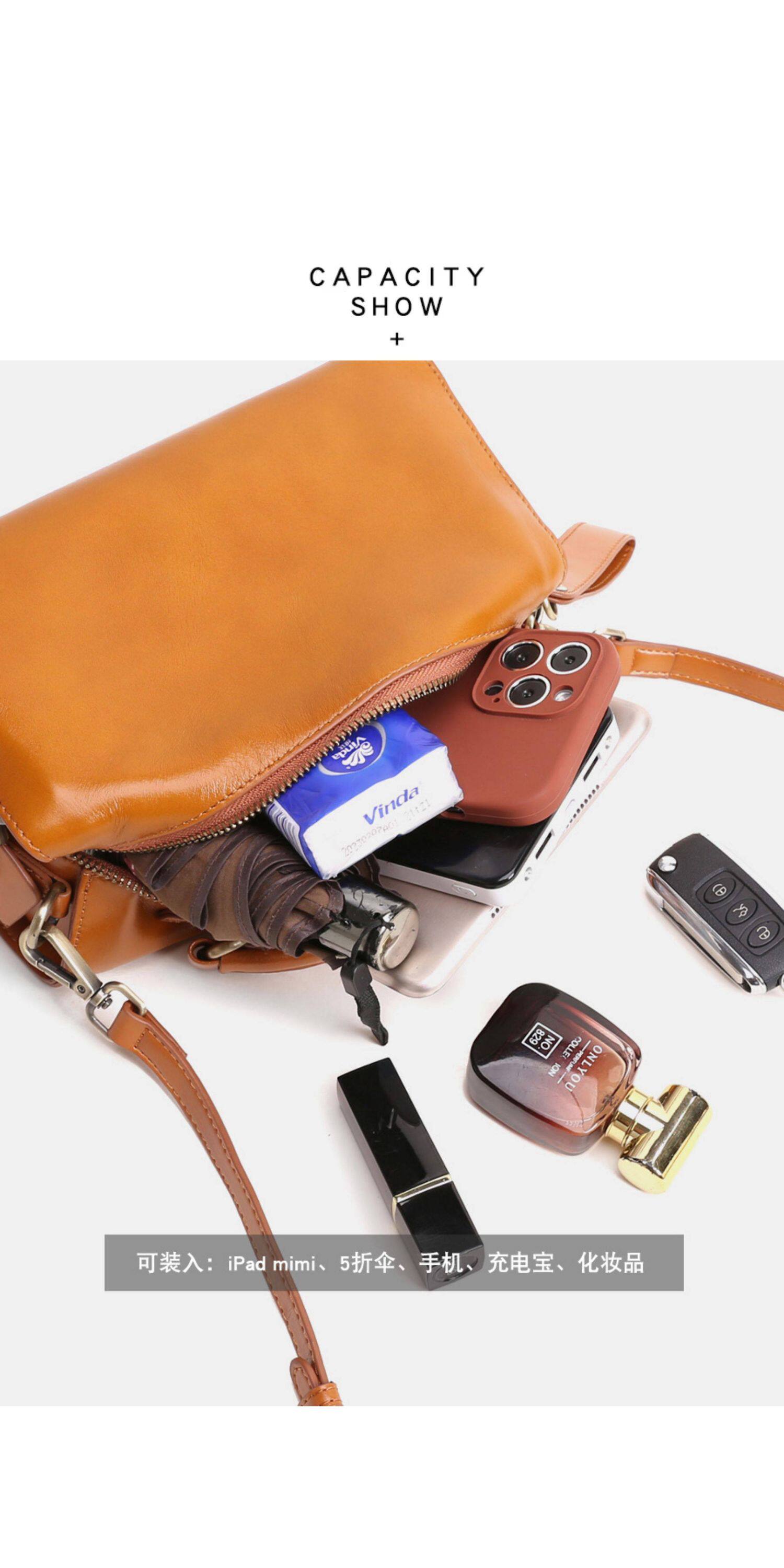 頭層牛皮枕頭包2026新款植鞣皮小方包復古大容量手提包寬帶斜後後背包