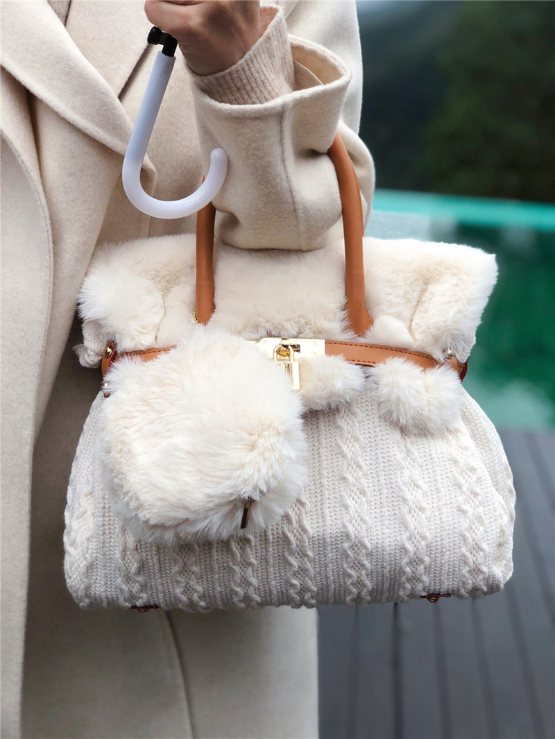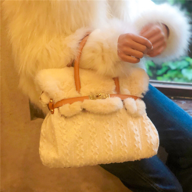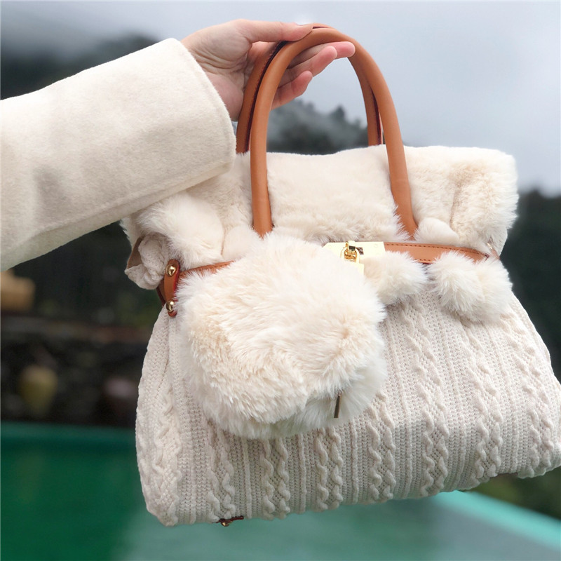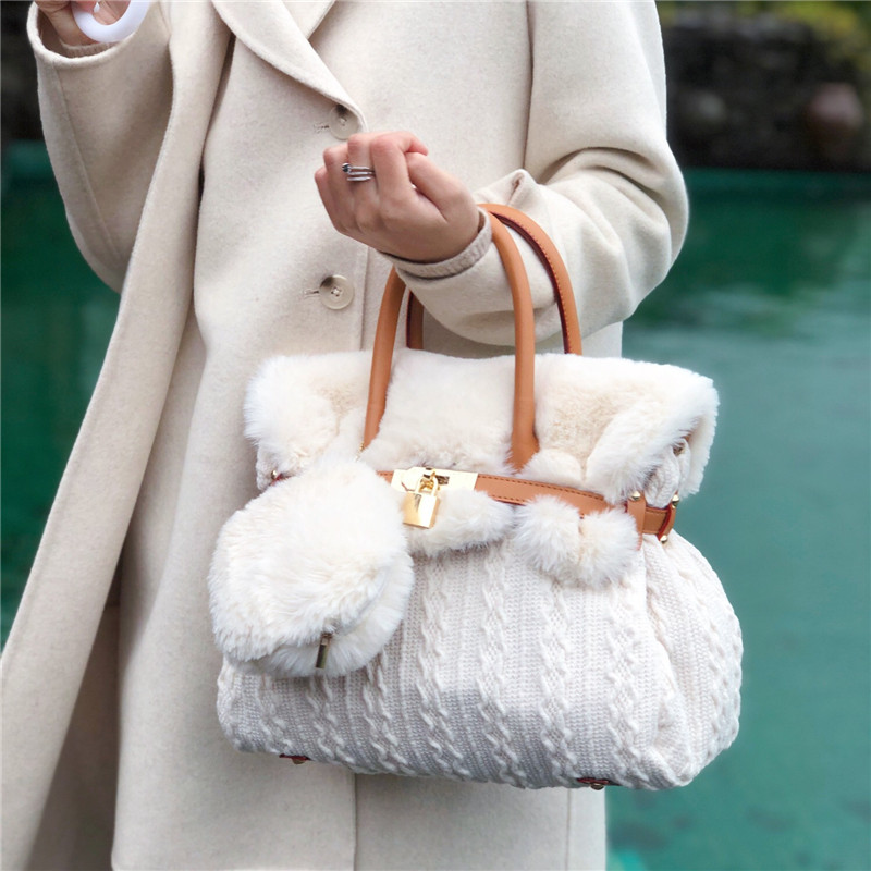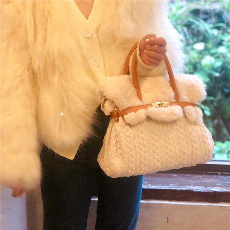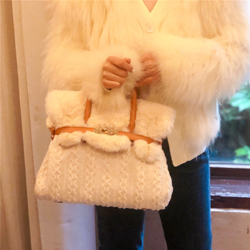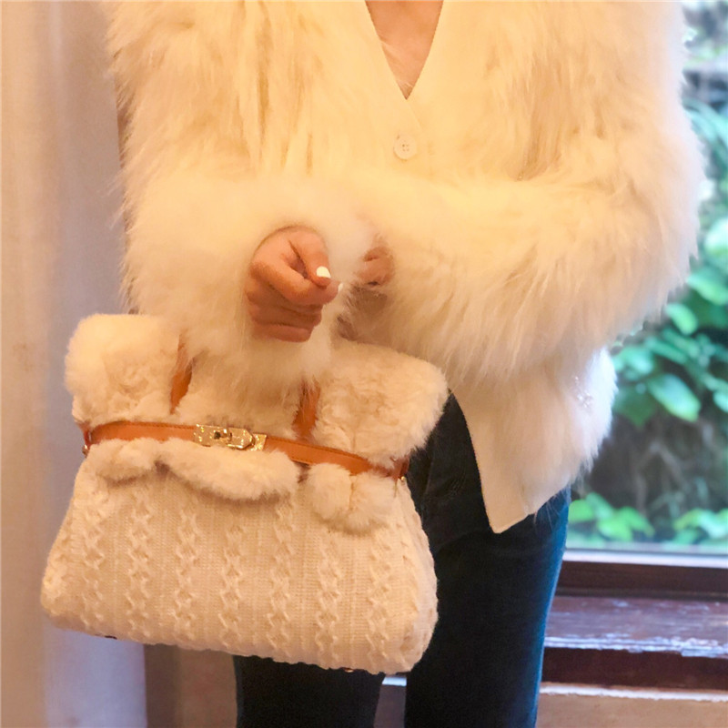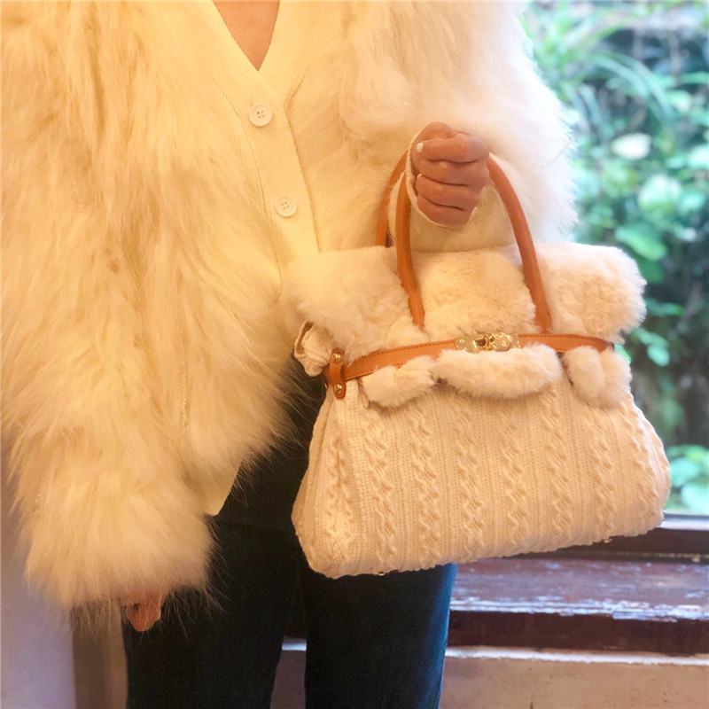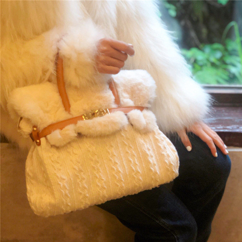 毛茸茸鉑金包2025秋冬新款女包針織毛線手提斜後後背包可愛兔毛托特包