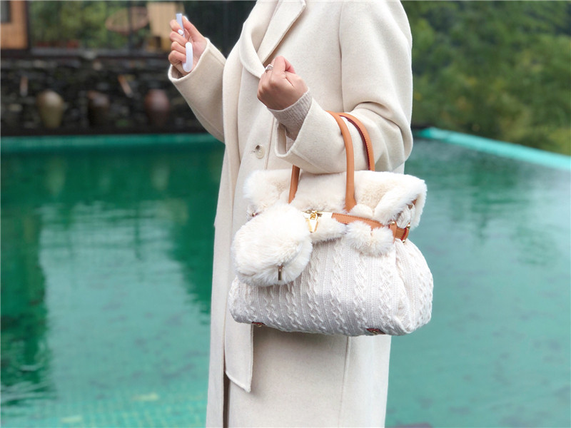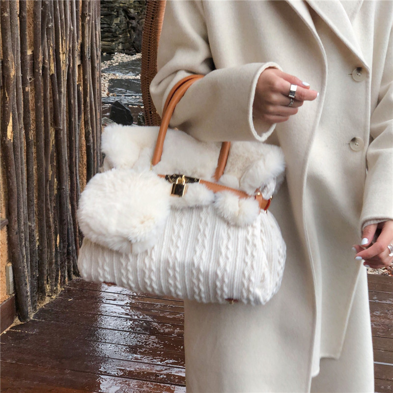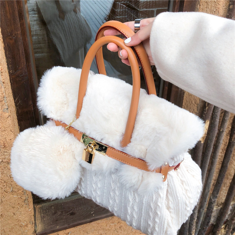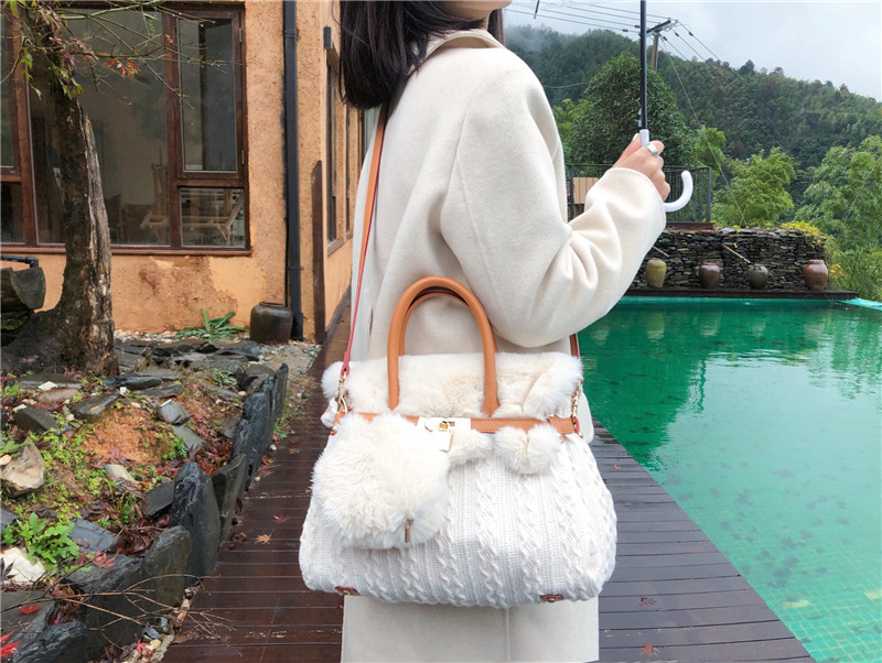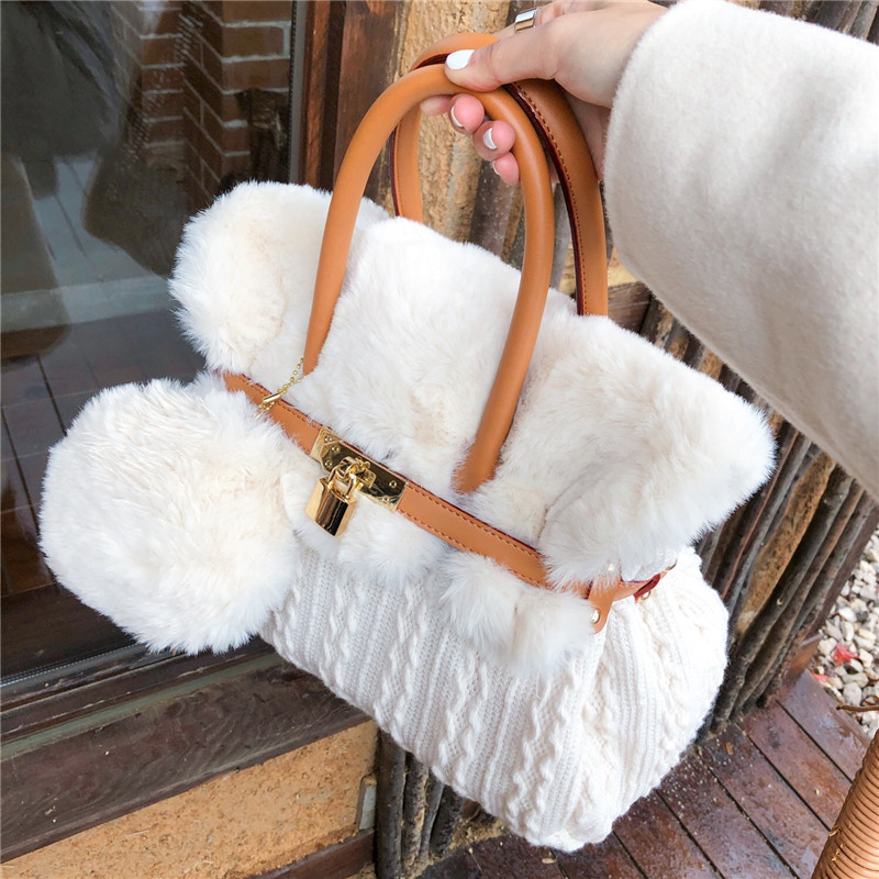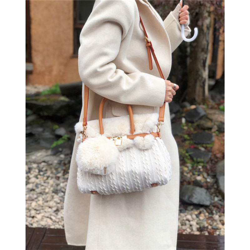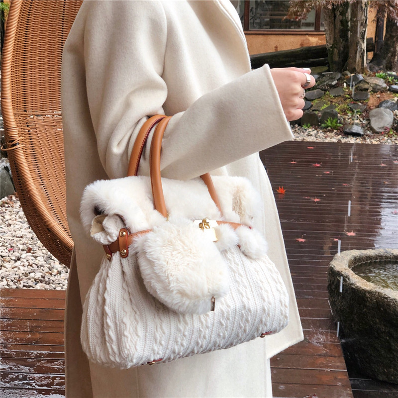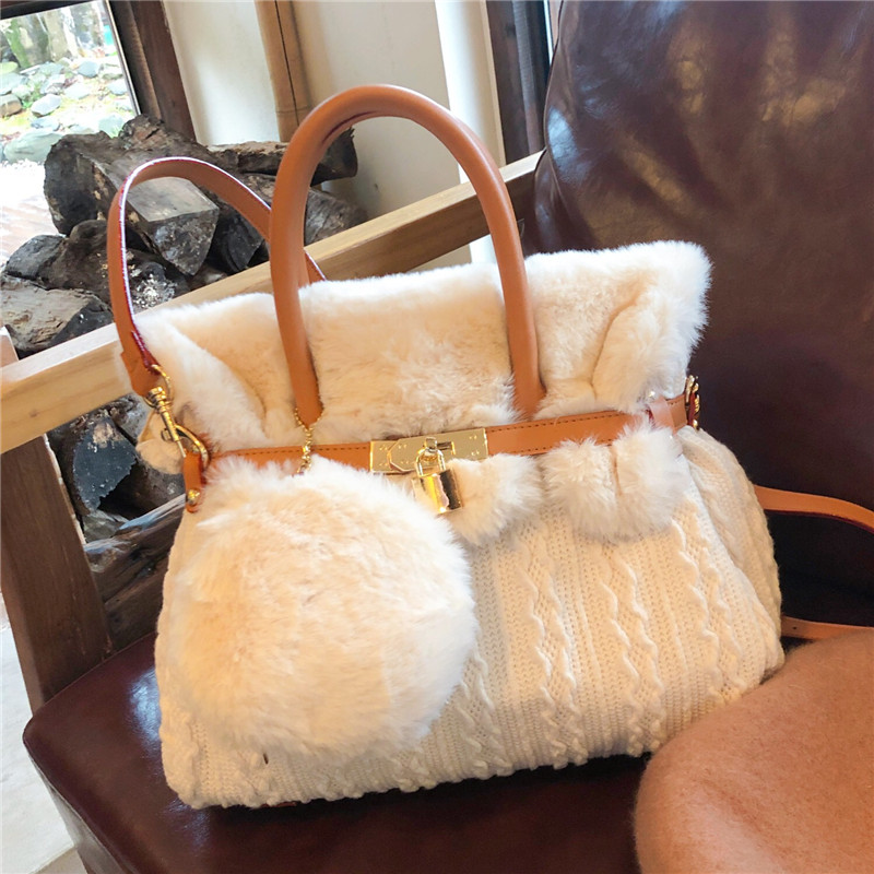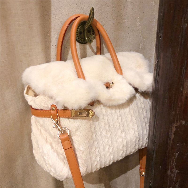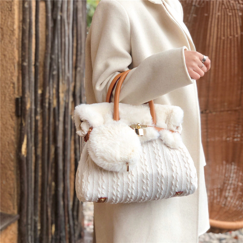毛茸茸鉑金包2025秋冬新款女包針織毛線手提斜後後背包可愛兔毛托特包