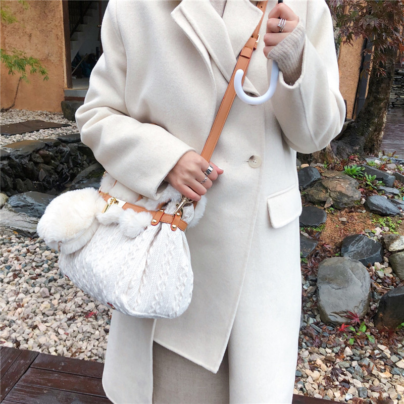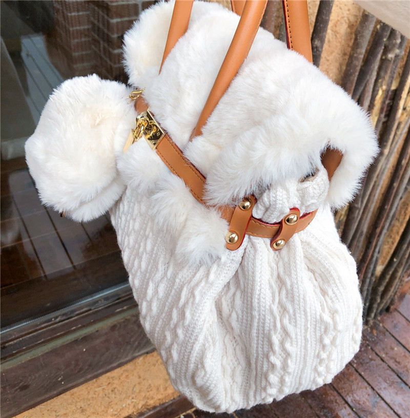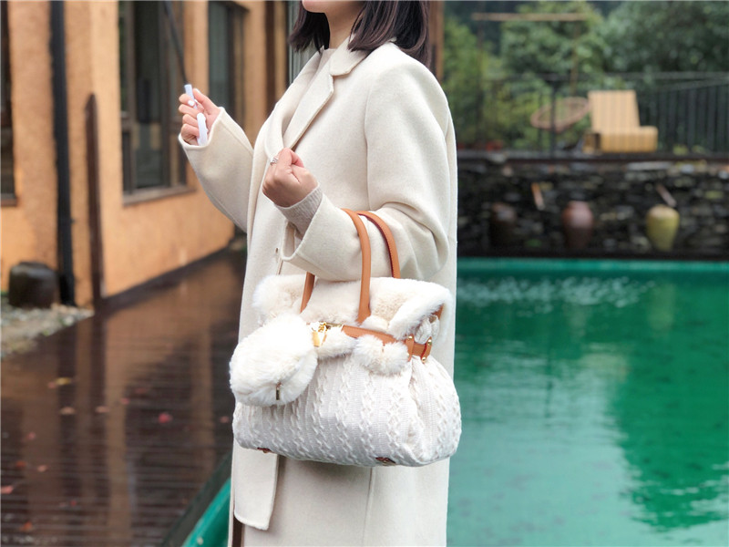 材料:針織毛線+人造兔毛毛+PU軟皮