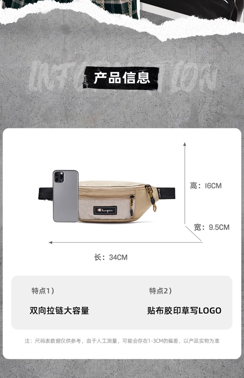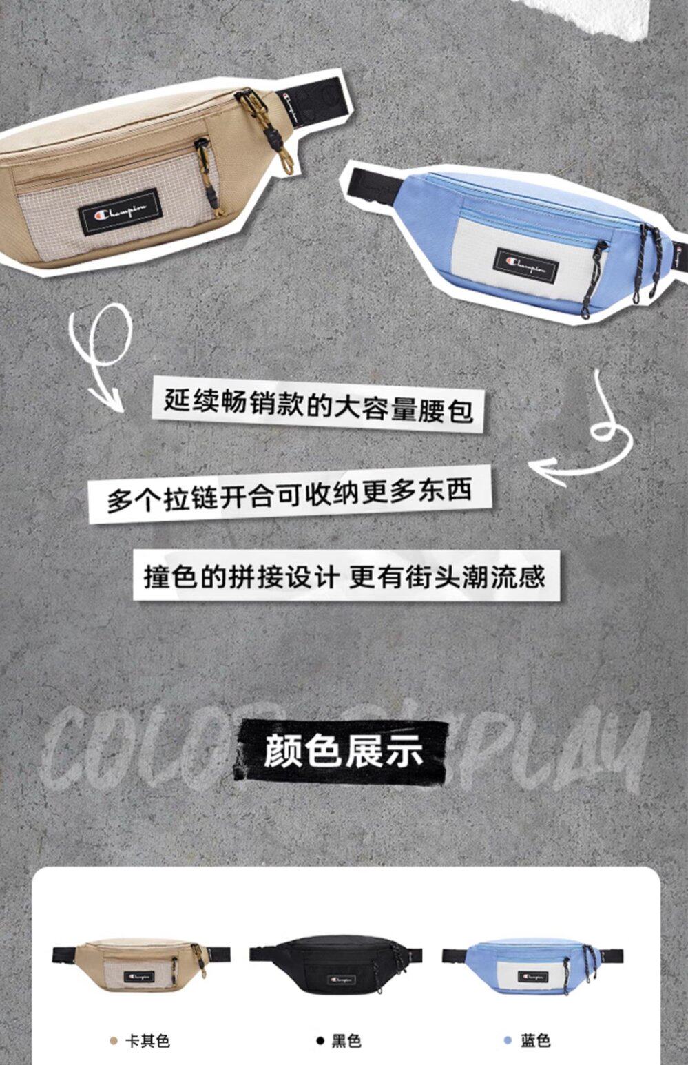 Champion冠軍單肩胸包女貼布時尚休閒斜後後背包男潮牌運動腰包手機包